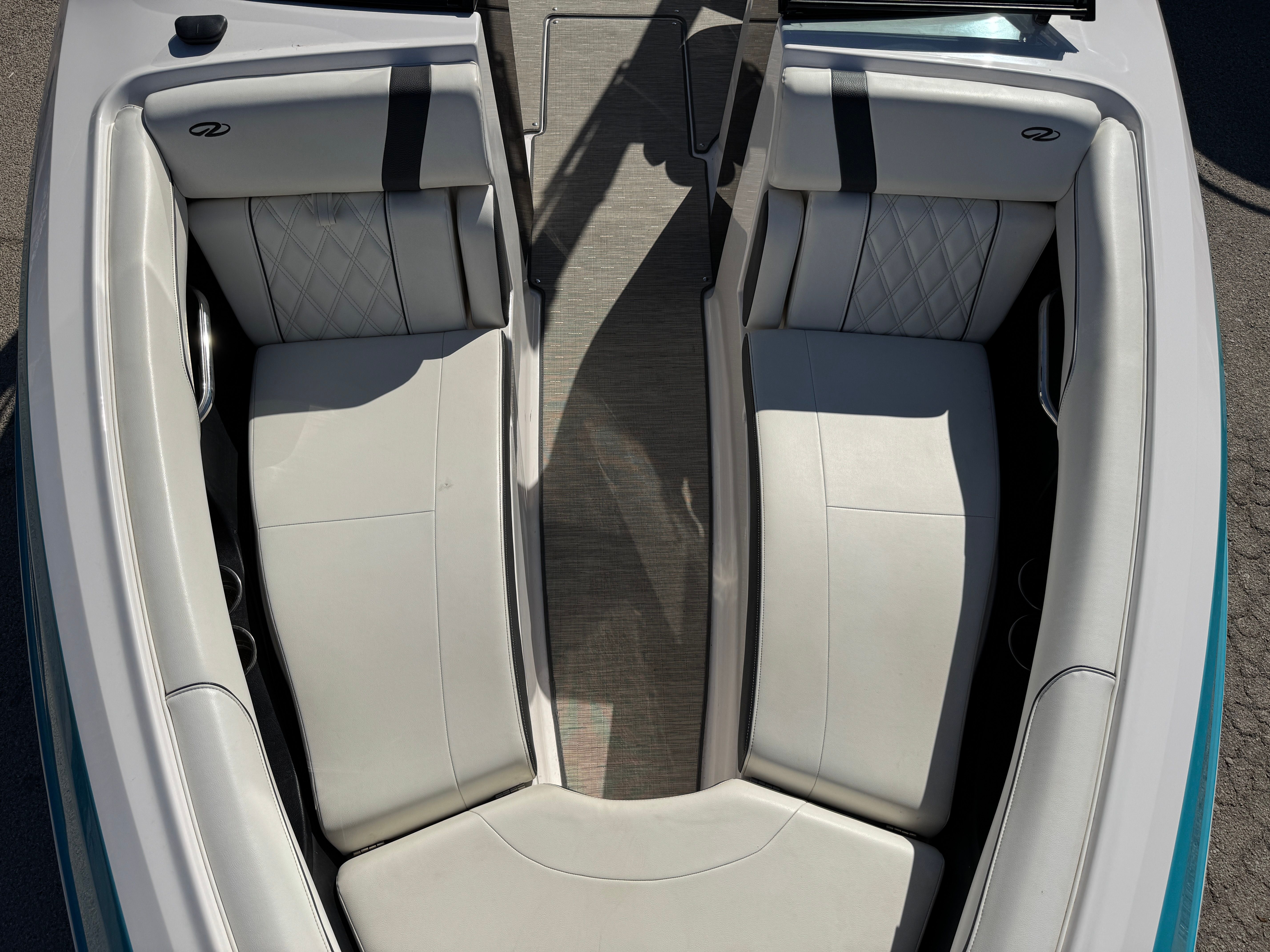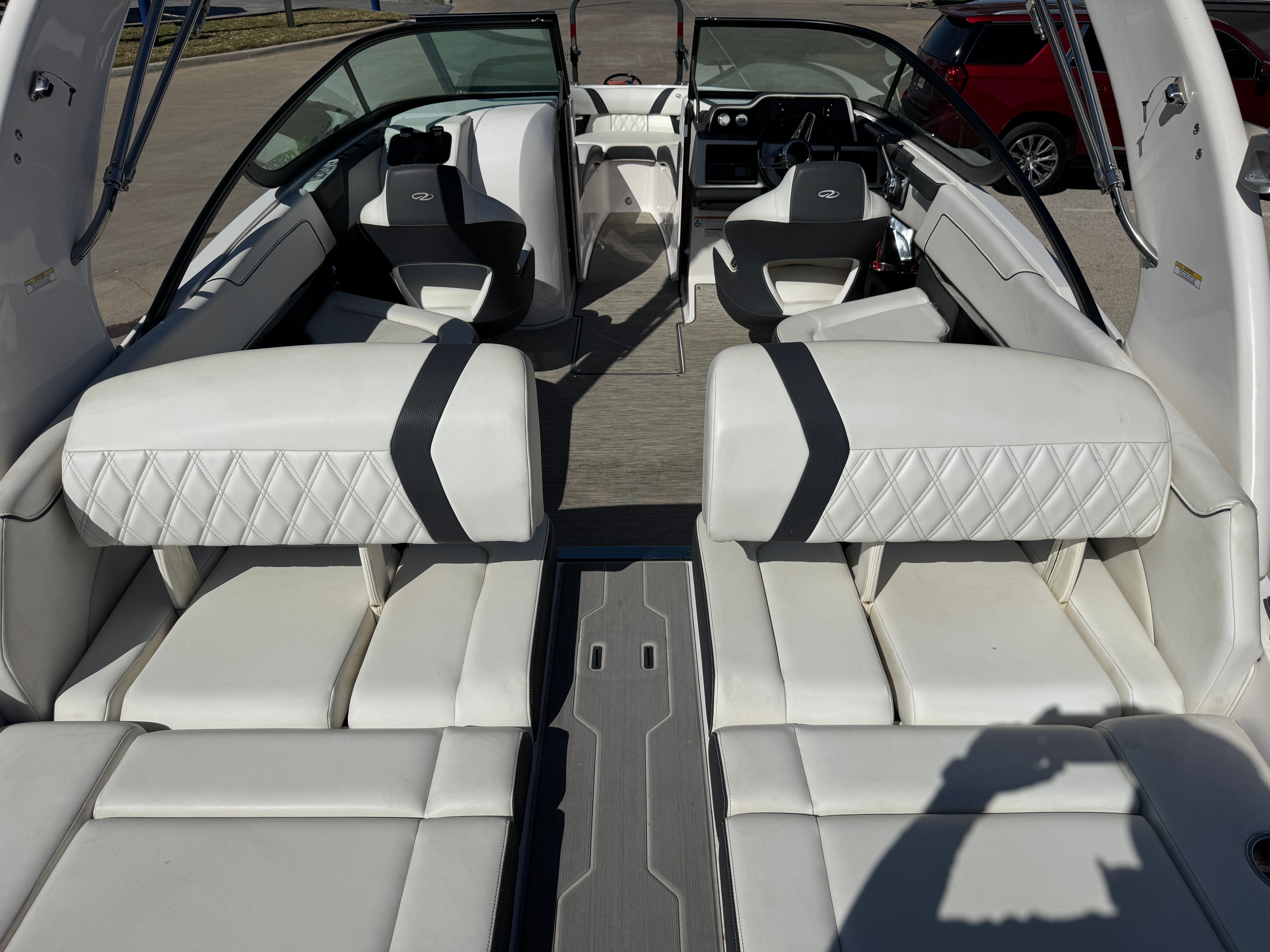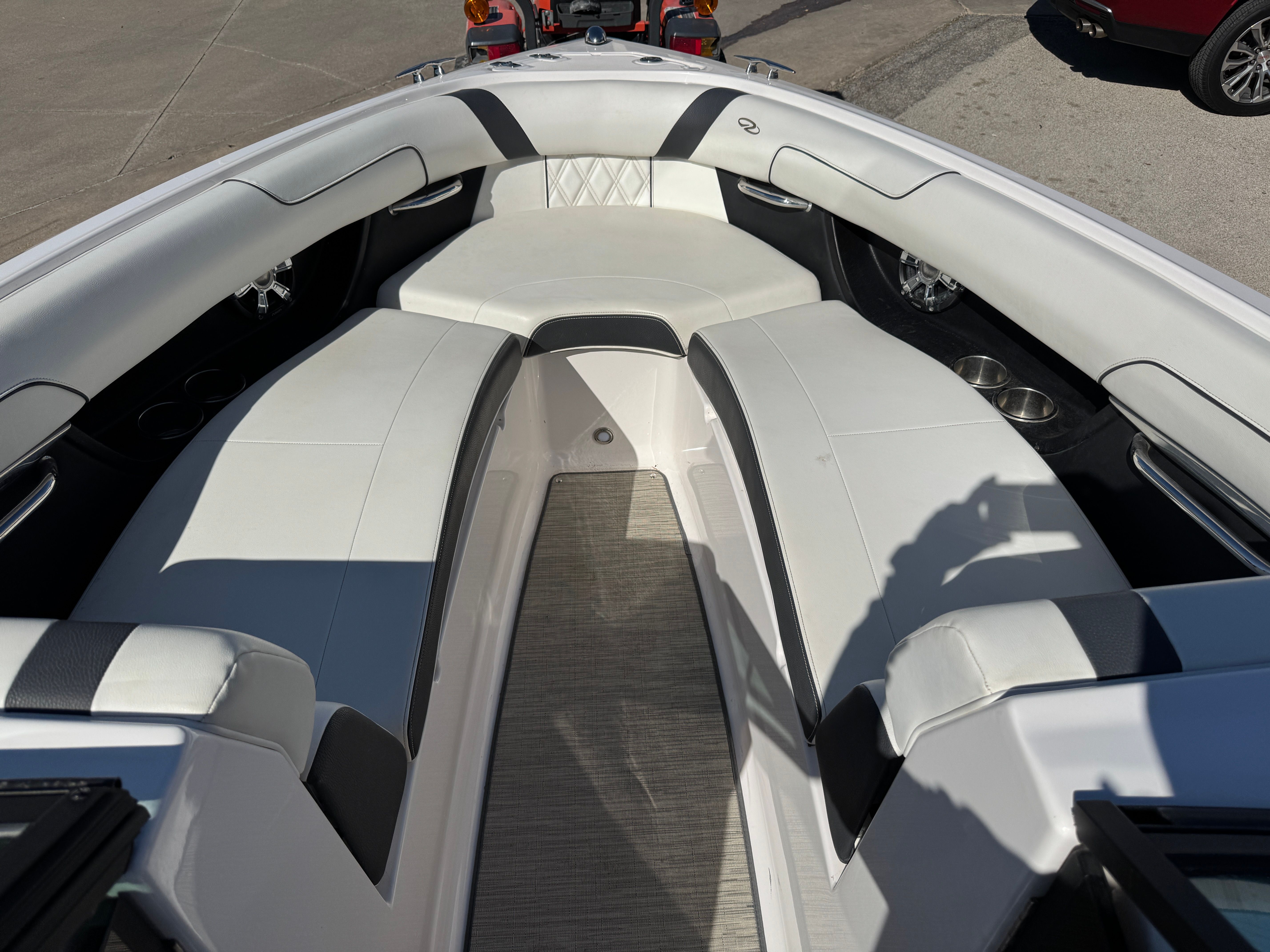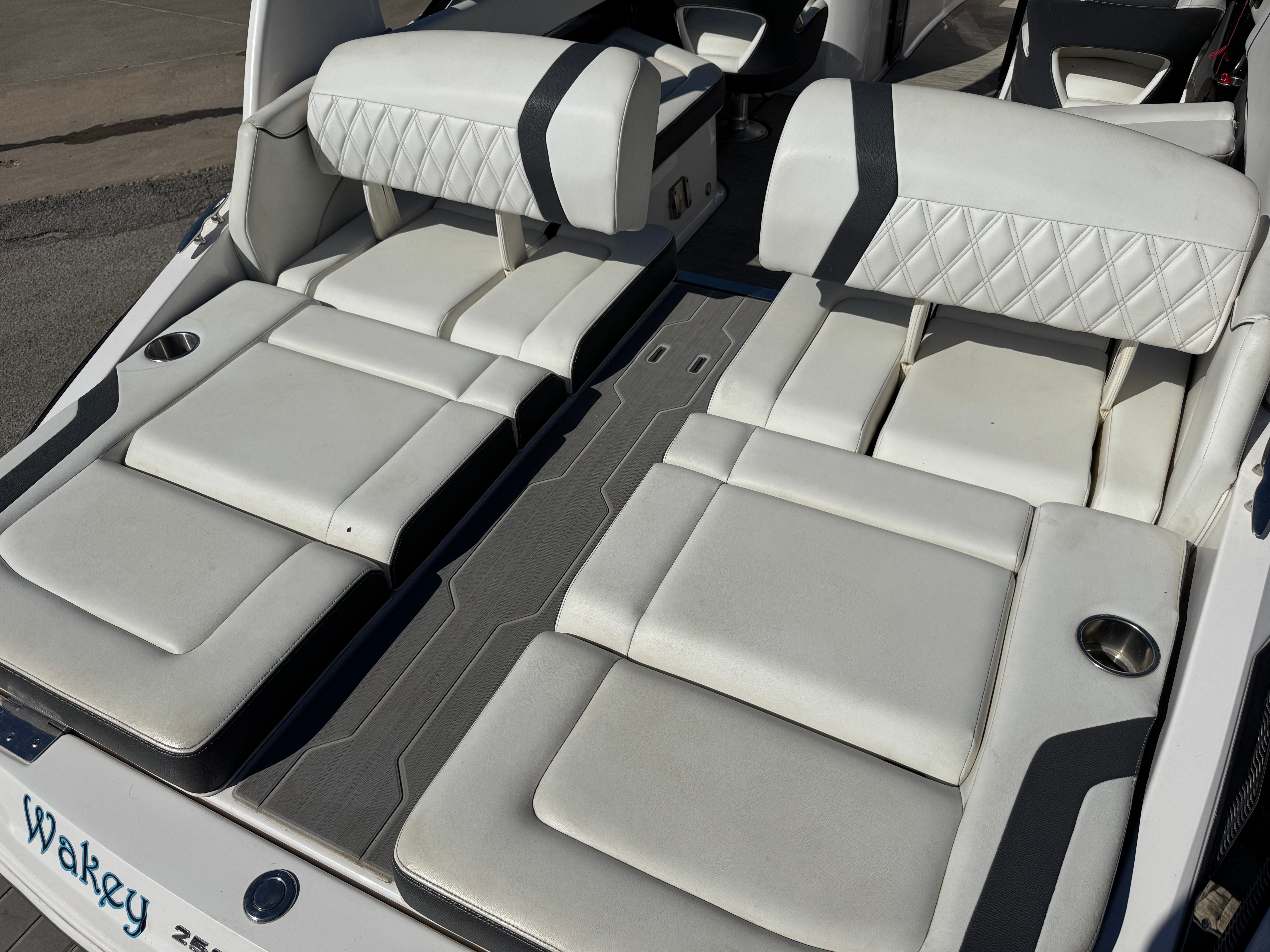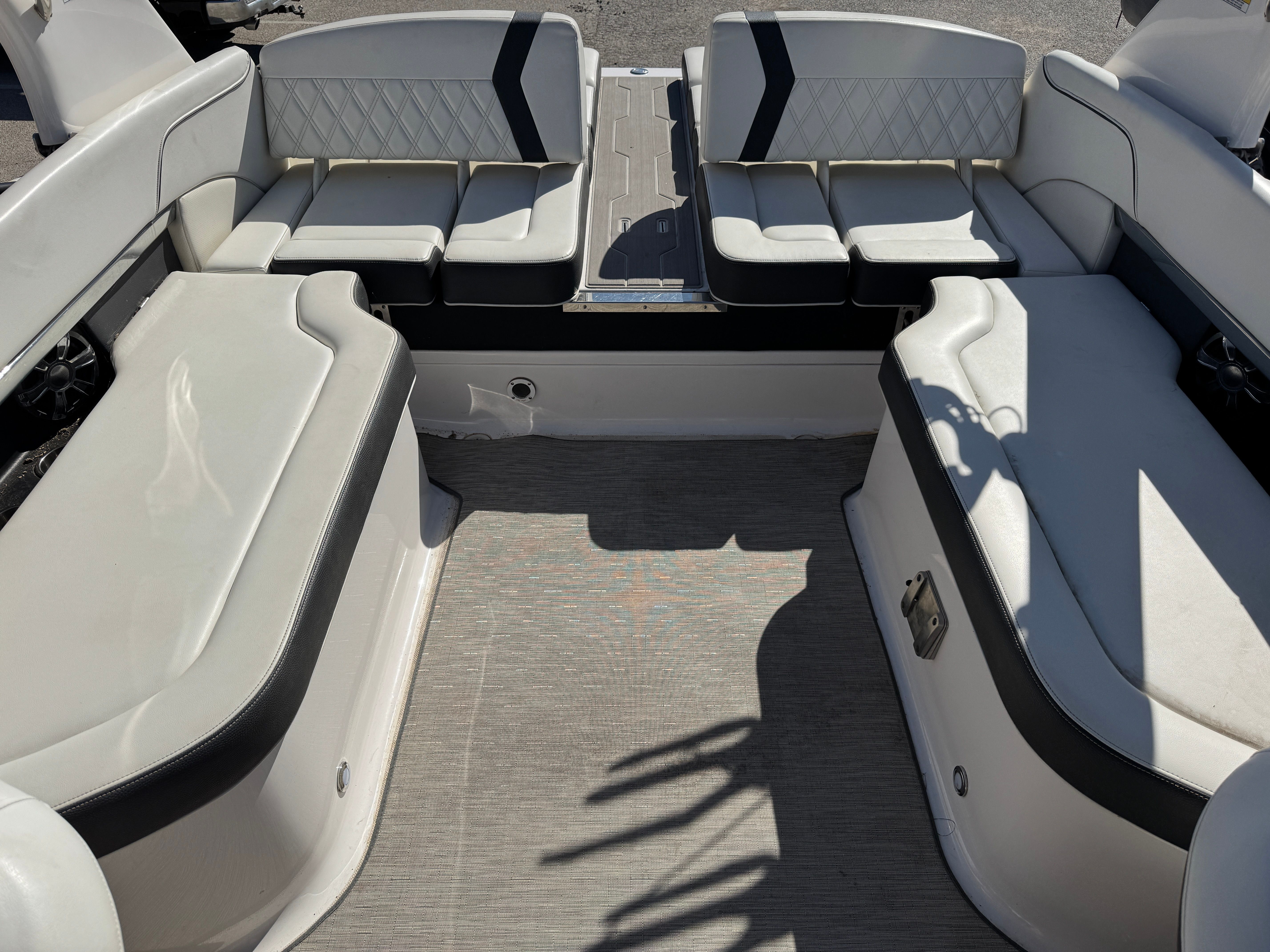 This used Regal 25 Surf bowrider boat for sale is packed with features that enhance both functionality and fun. The spacious bow seating area invites guests to stretch out and soak up the sun, while the open cockpit layout ensures everyone has room to move and mingle. The ergonomic helm station puts you in complete control, with intuitive controls and clear sightlines for safe and enjoyable navigation.The 26.5-foot length provides generous onboard space, making it easy to accommodate family and friends for a full day of adventure. The thoughtful design includes plenty of storage options for gear, water toys, and personal items, so you can keep the deck clutter-free and organized. The high-quality materials and finishes throughout the boat reflect Regal’s commitment to luxury and durability, ensuring your investment stands the test of time.