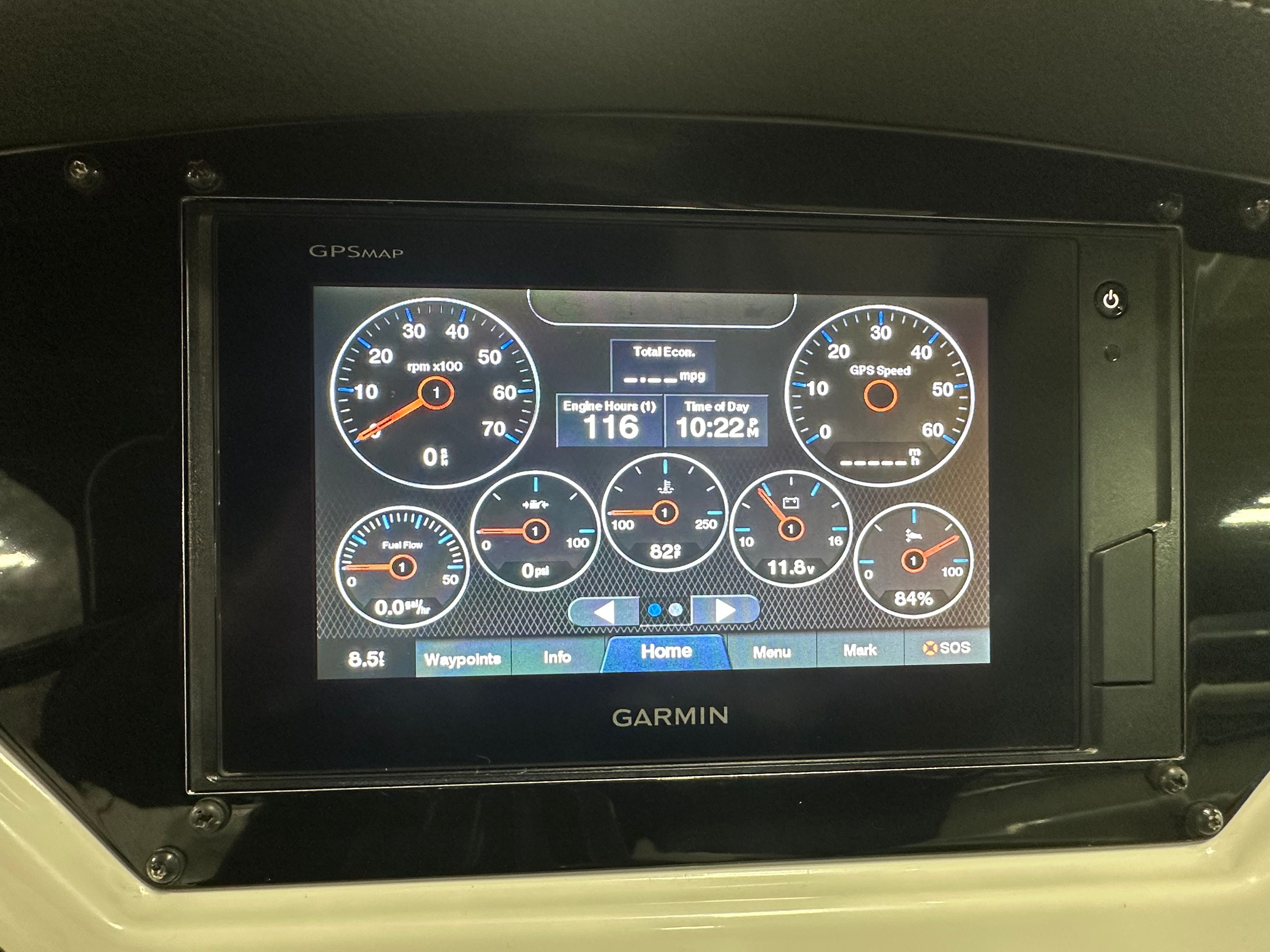 Powering the Regal 28 Express is a robust single engine with 300 horsepower and just 116 engine hours, offering reliable performance and efficiency. This configuration ensures smooth acceleration, responsive handling, and the ability to cruise comfortably at various speeds. Whether you’re navigating open waters or docking at your favorite waterfront restaurant, the Regal 28 Express delivers a confident and enjoyable ride. The bow thruster adds an extra layer of control, making docking and close-quarters maneuvering effortless, even for those new to boating.
