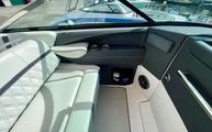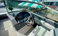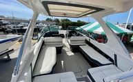 The power helm seat ensures your comfort during every adventure, while the Sea Deck on the expansive swim platform adds both style and safety for those water activities. With comprehensive bow and cockpit covers, your boat stays protected from the elements, ready for your next outing.
