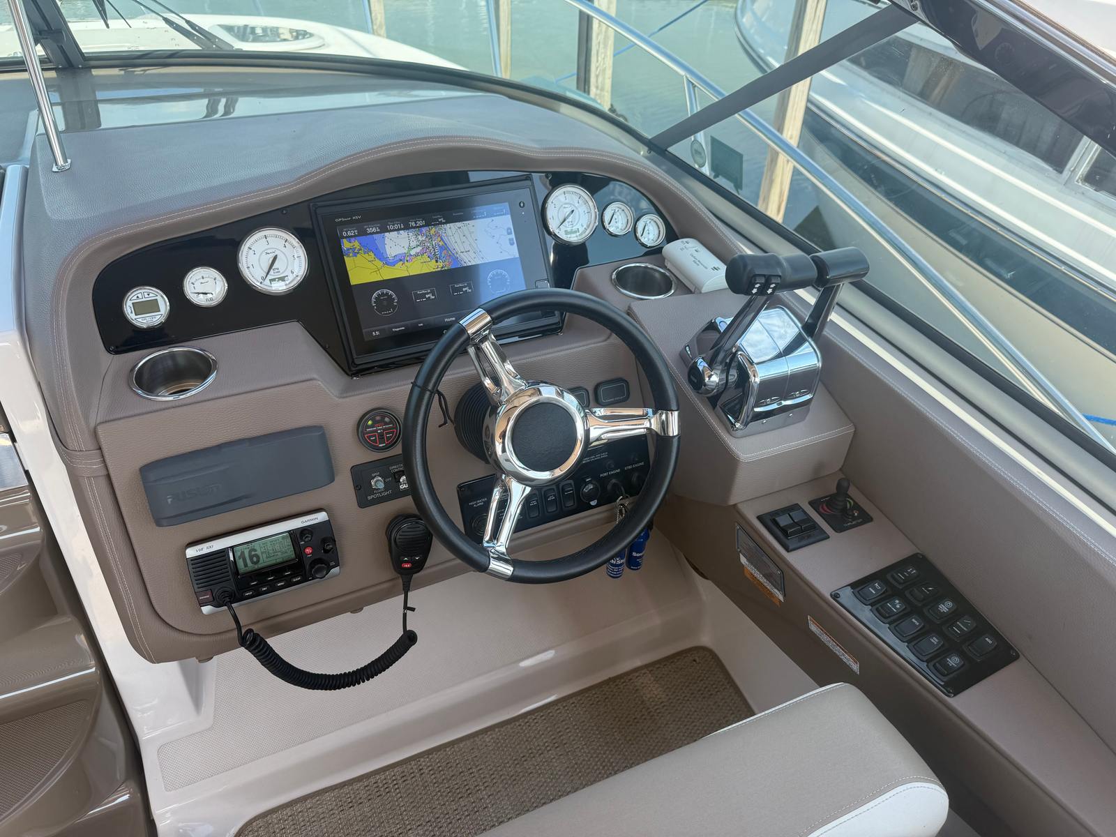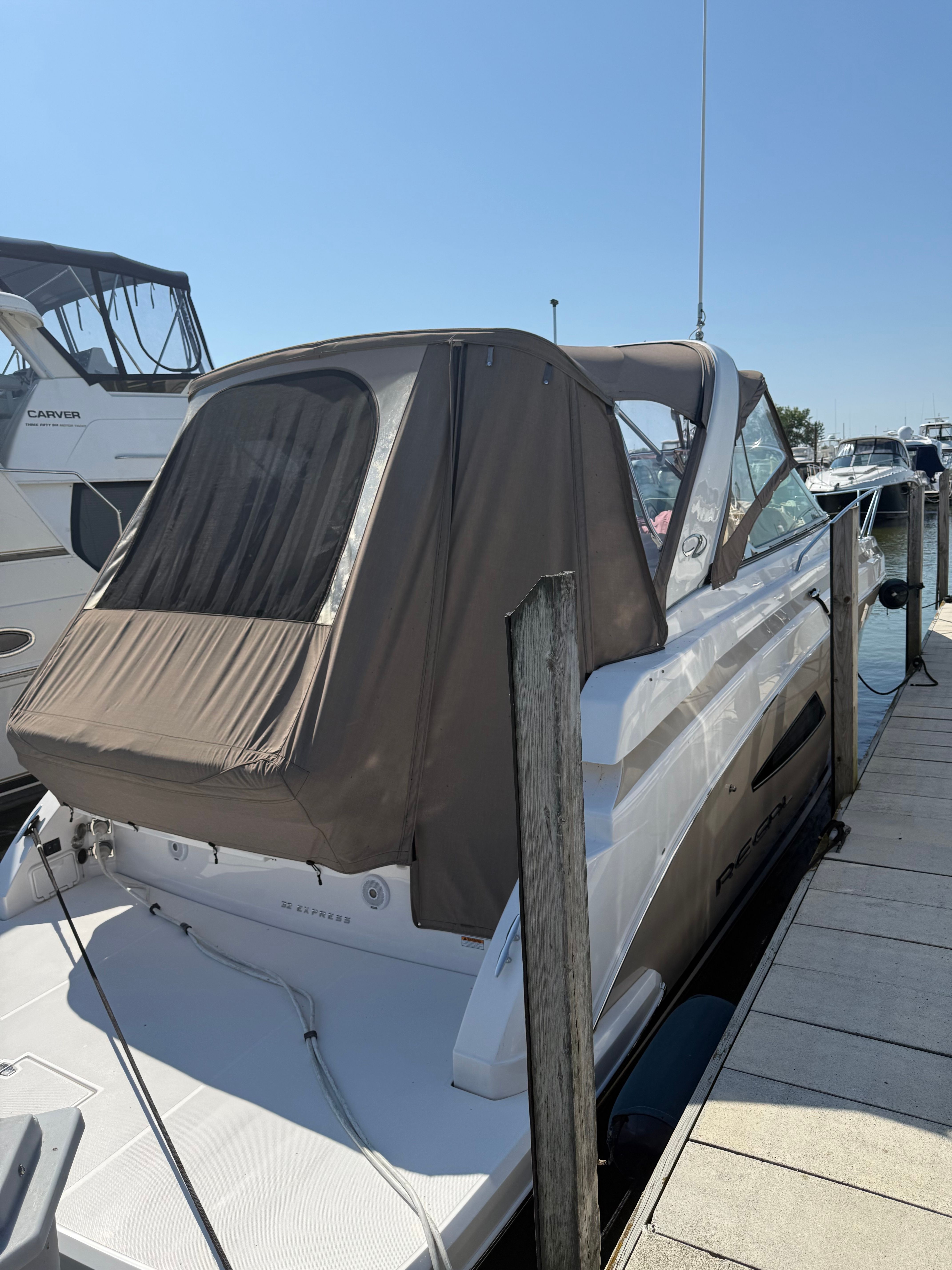 The Regal 32 Express is designed with practicality in mind, making ownership as enjoyable as it is rewarding. The bow thruster simplifies docking and close-quarters maneuvering, reducing stress and increasing confidence for captains of all experience levels. The battery charger ensures your onboard electronics and systems are always ready for action, while the protective bottom paint extends the life of your hull and reduces maintenance needs.Storage solutions throughout the boat allow you to bring along all the gear and supplies you need for a day on the water or a weekend getaway. The efficient design of the cockpit and cabin maximizes usable space, providing plenty of room for relaxation, dining, and entertainment. Whether you are planning a quick afternoon cruise or an extended voyage, the Regal 32 Express is equipped to handle it all with ease.