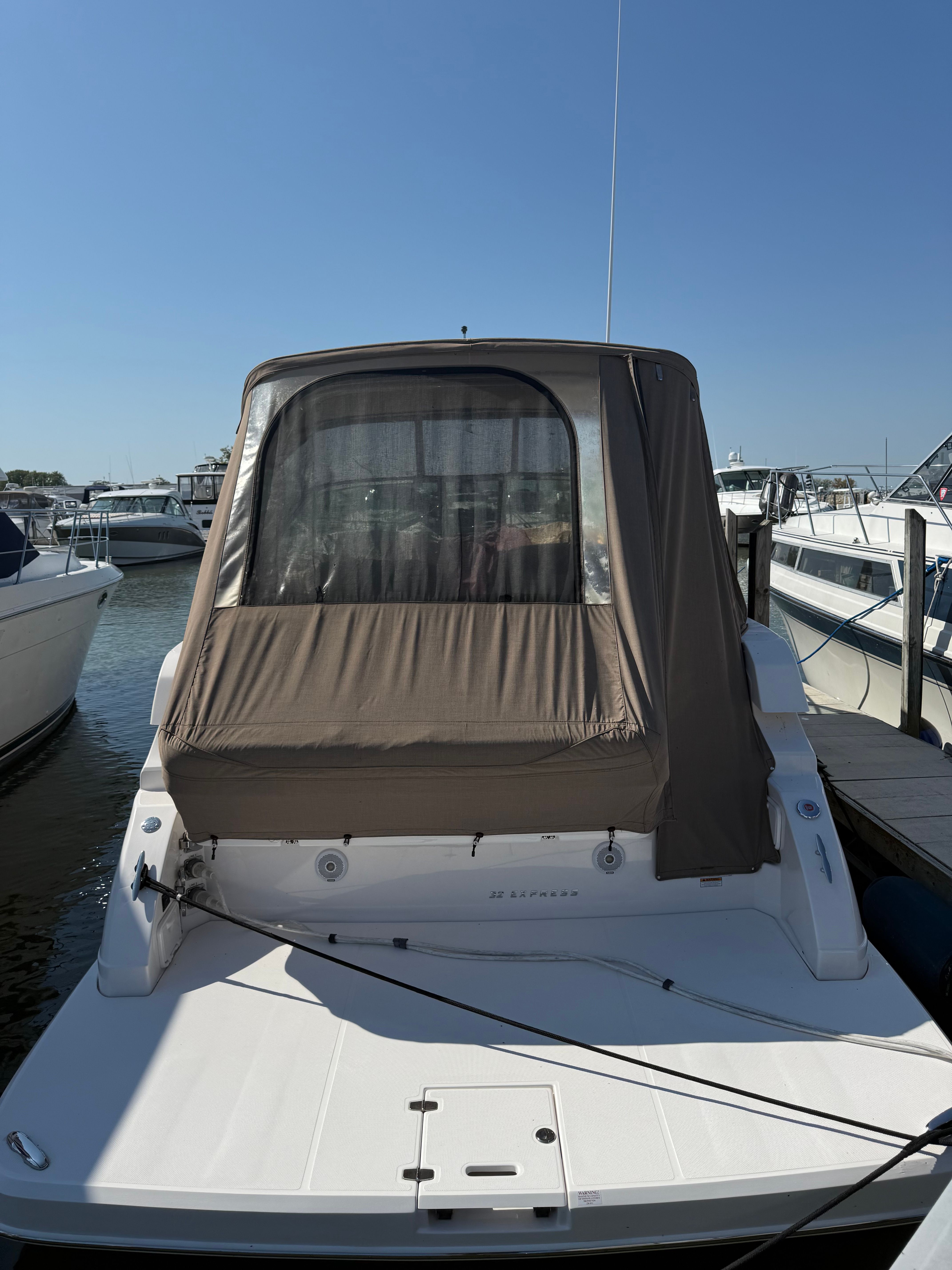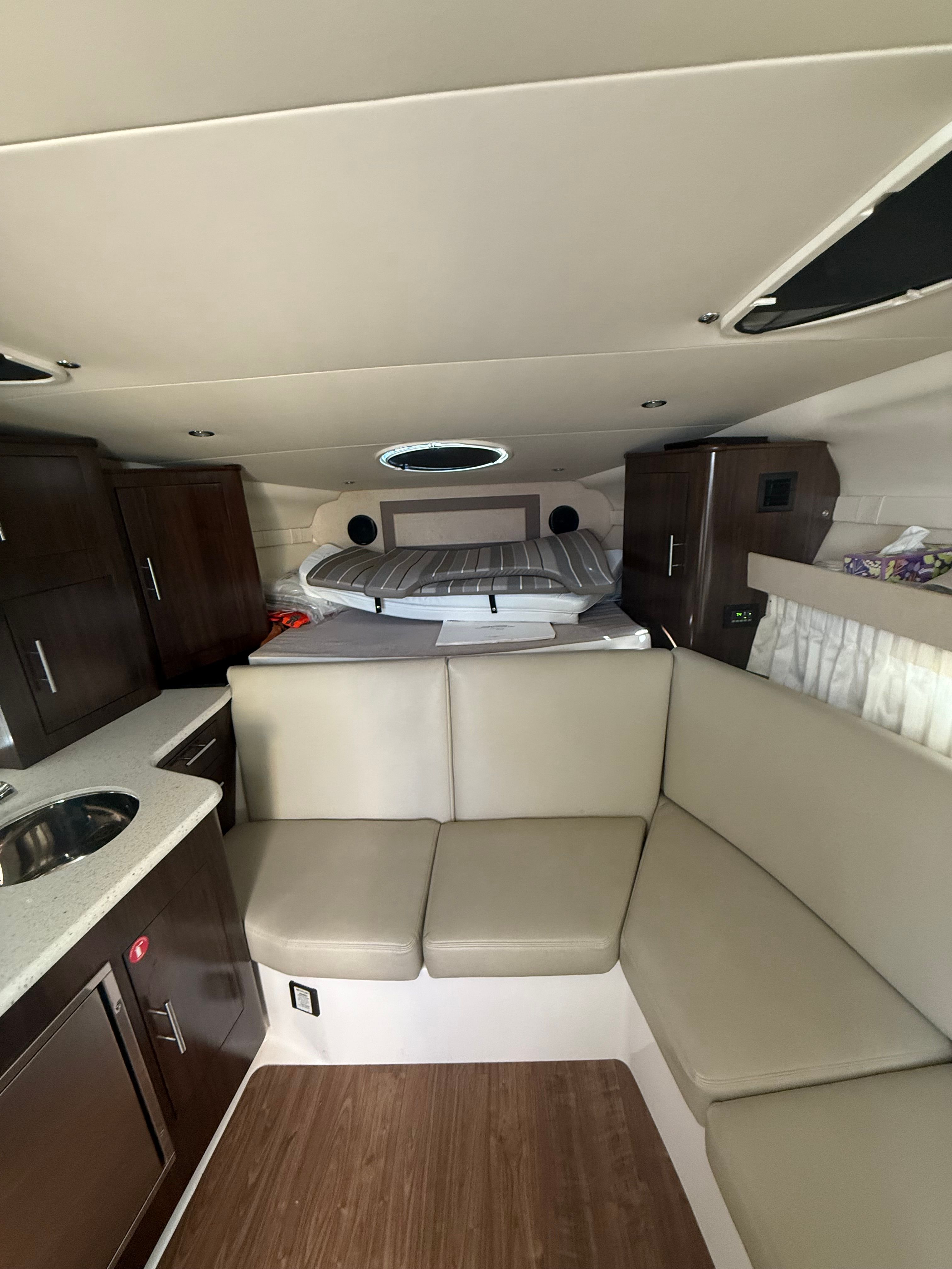 Owning the Regal 32 Express opens up a world of fun and relaxation on the water. The spacious cockpit and inviting cabin make it easy to host family and friends for unforgettable outings. The Sea Grass flooring not only adds a touch of luxury but also ensures easy maintenance, so you can spend more time enjoying the water and less time cleaning up. The wet bar in the cockpit is ideal for mixing drinks and serving snacks, turning every cruise into a celebration.The cabin’s AC/heat system keeps you comfortable in any weather, while the dinette provides a cozy spot for meals, games, or simply unwinding after a day of adventure. The Vaccuflush head offers the convenience and cleanliness you expect from a premium cruiser, making overnight stays and extended trips more enjoyable. With only two previous owners and a recent detailing, this boat is ready to deliver years of memorable experiences.