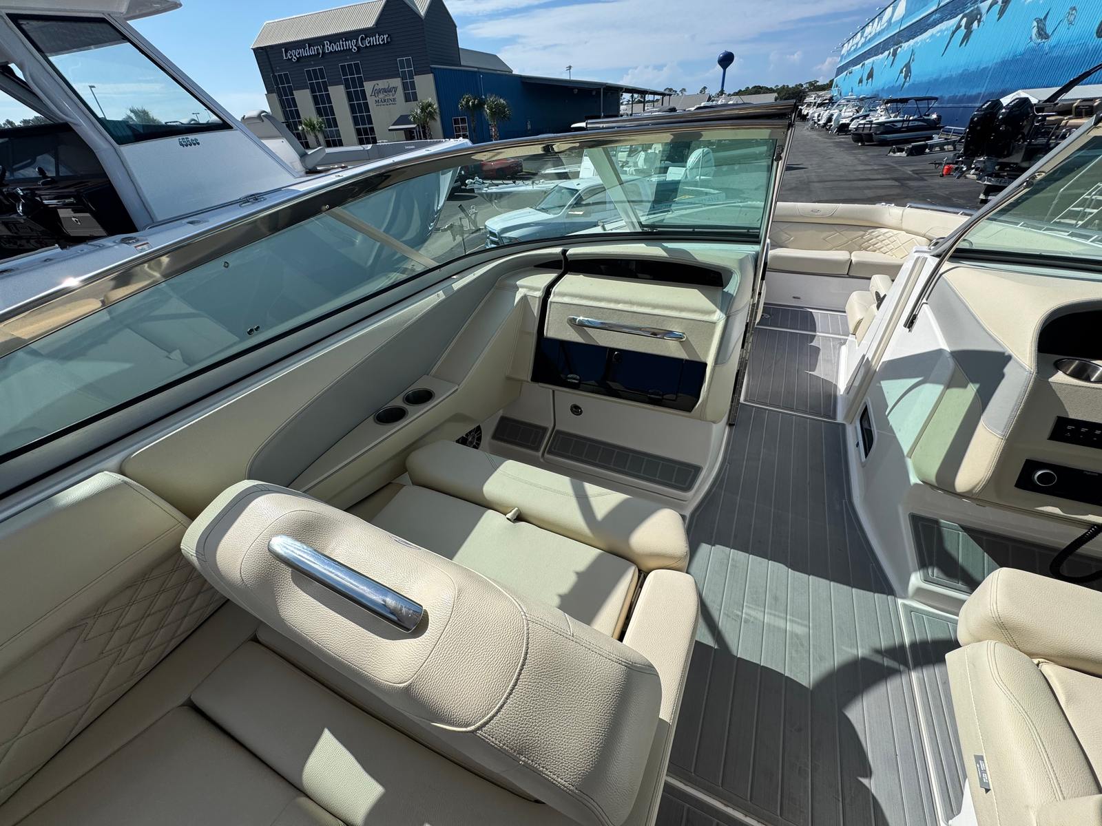 The 2023 Regal 33 OBX is a Bowrider that commands attention with its sleek lines and spacious layout. Measuring an impressive 34.01 feet in length, this boat offers ample room for guests, gear, and all your favorite water activities. As a used Regal boat for sale, it presents a fantastic opportunity to own a high-quality vessel at a competitive price, without compromising on style or performance. The 33 OBX’s contemporary design and attention to detail ensure you’ll enjoy every minute spent onboard, whether you’re cruising along the coast or anchored at your favorite spot.