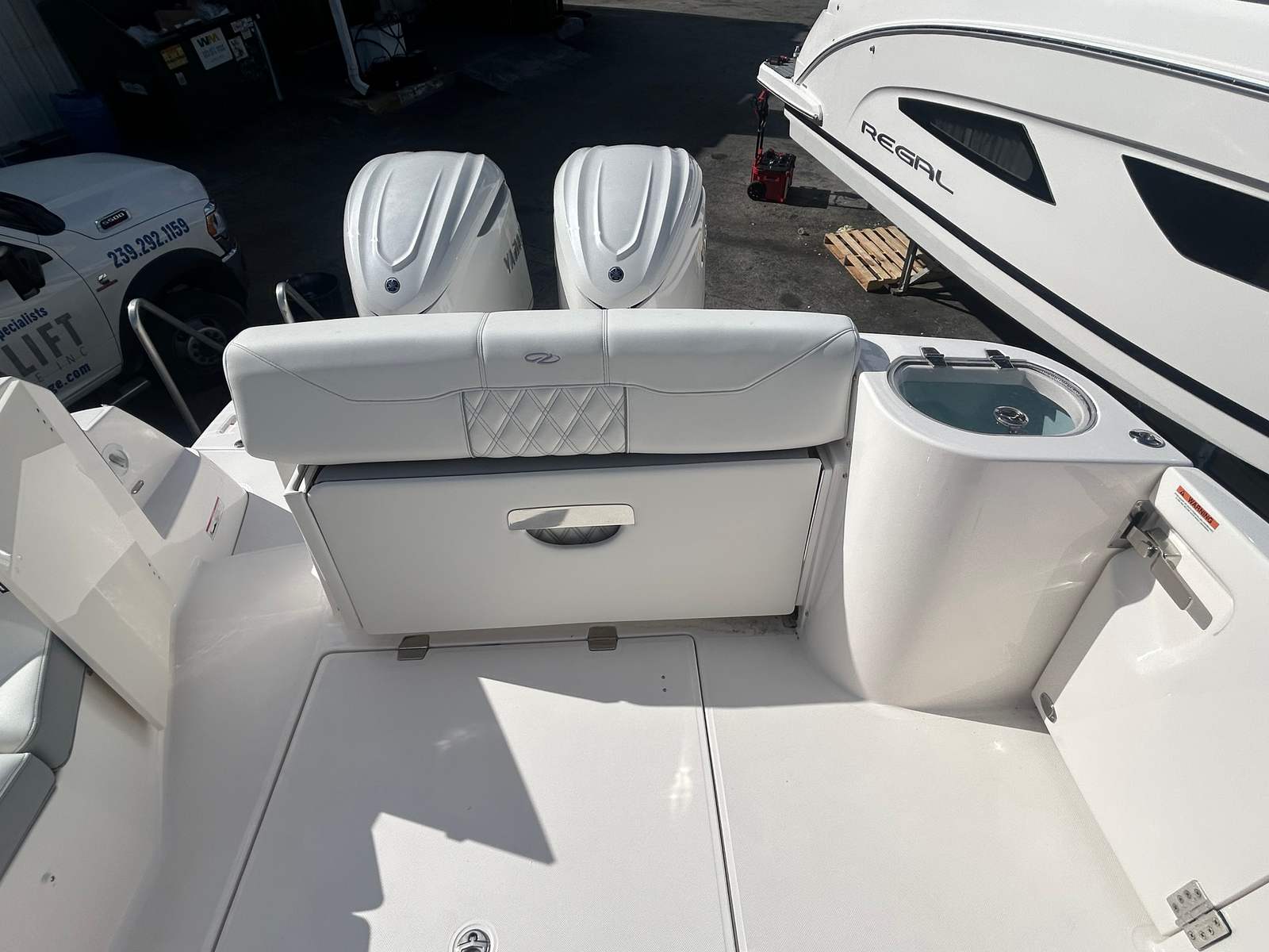 The Regal 33 SAV is designed with practicality in mind, making ownership easy and enjoyable. The integrated steering system simplifies docking and maneuvering, even in crowded marinas or tight spaces. Ample storage throughout the boat allows you to stow gear, supplies, and personal items securely, keeping the deck clutter-free. The efficient twin Yamaha engines offer impressive fuel economy for longer trips, so you can spend more time on the water and less time refueling.Maintenance is straightforward thanks to Regal’s commitment to quality and durability. The protective covers and sunshade system help preserve the boat’s condition, while the generator ensures you have power for appliances and electronics wherever you go. Air conditioning adds another layer of comfort, making overnight stays and extended trips more enjoyable.