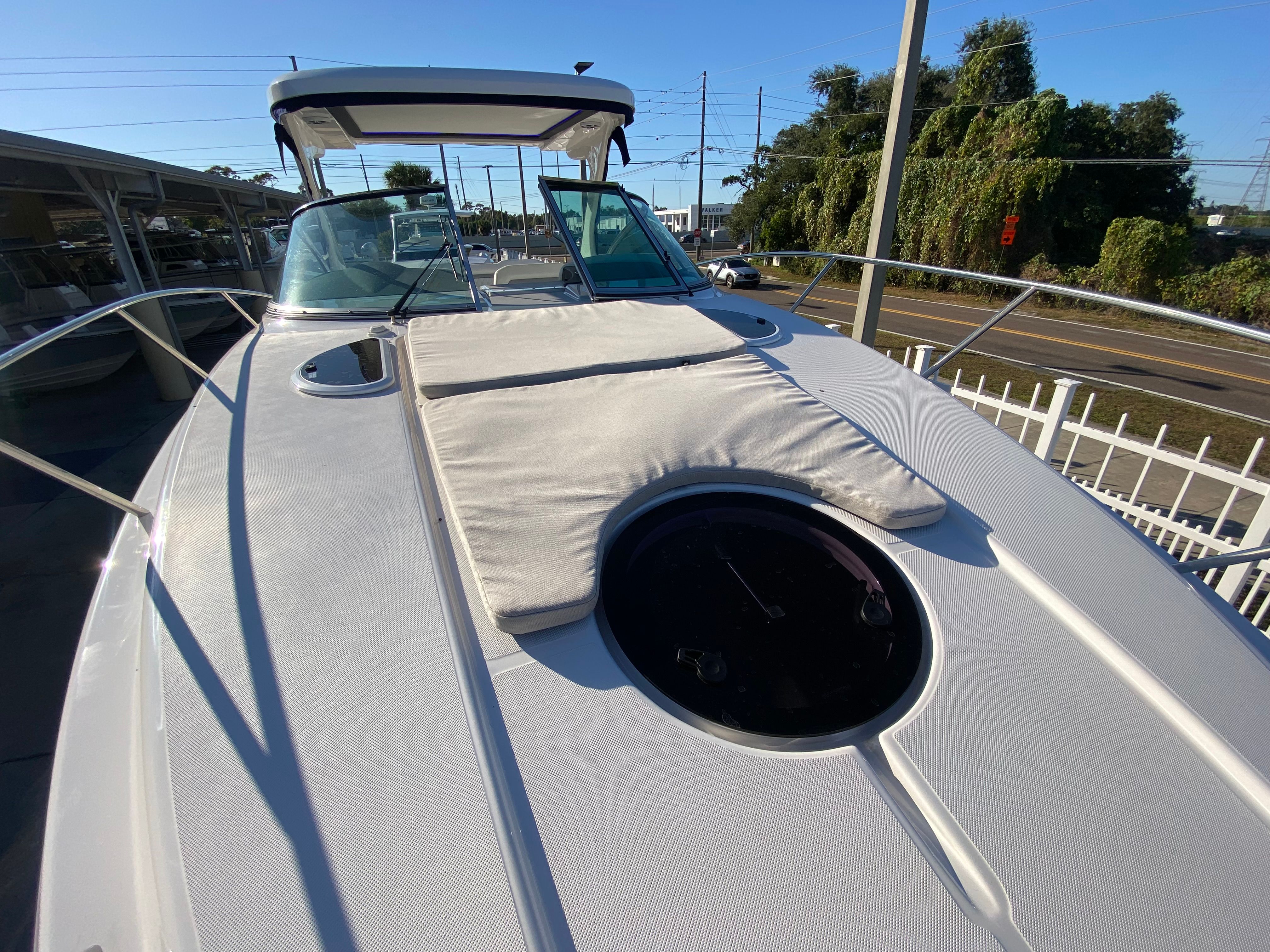 Practicality is at the heart of the Regal 33 XO’s design. The bow thruster simplifies docking, allowing you to maneuver with precision in crowded marinas or tight spaces. Fender clips offer quick and secure attachment points, streamlining the process of protecting your boat during docking. The absence of bottom paint means less maintenance and a cleaner hull, contributing to long-term performance and value.The aft cockpit electric Sureshade for the hard top provides adjustable shade, ensuring comfort during hot summer days or unexpected rain showers. The spacious layout offers plenty of storage for gear, supplies, and personal items, making it easy to keep the deck organized and clutter-free. Whether you are planning a day trip or an extended voyage, the Regal 33 XO is equipped to handle your needs with ease.