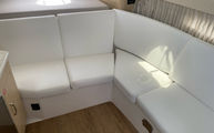 Forward seating area transforms into a sunpad lounge, offering a perfect spot for relaxing in the sun.
