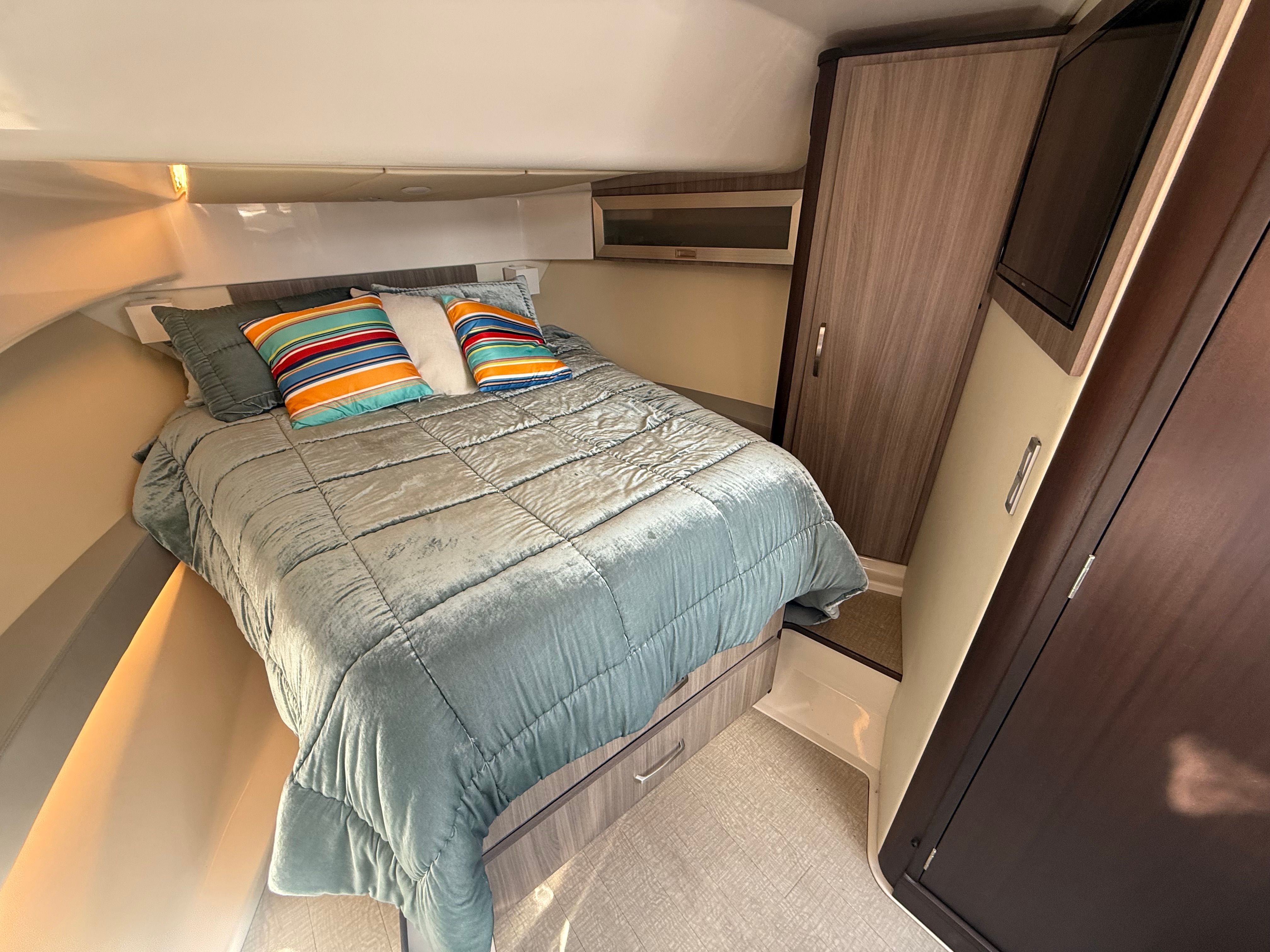 This Regal 36 XO is equipped with twin Yamaha F425UCA engines (108 hours). Custom-built from the Regal factory, and all maintenance was done through Regal-certified technicians. Loaded with many additional options including full Sea Dek from Bow to Stern, Dual Garmin GPS8616XSV, B60 Transducer, Helm Master EX Full Maneuverability with Joystick, Fisher Panda Diesel generator, Bow Shade, and much more.
