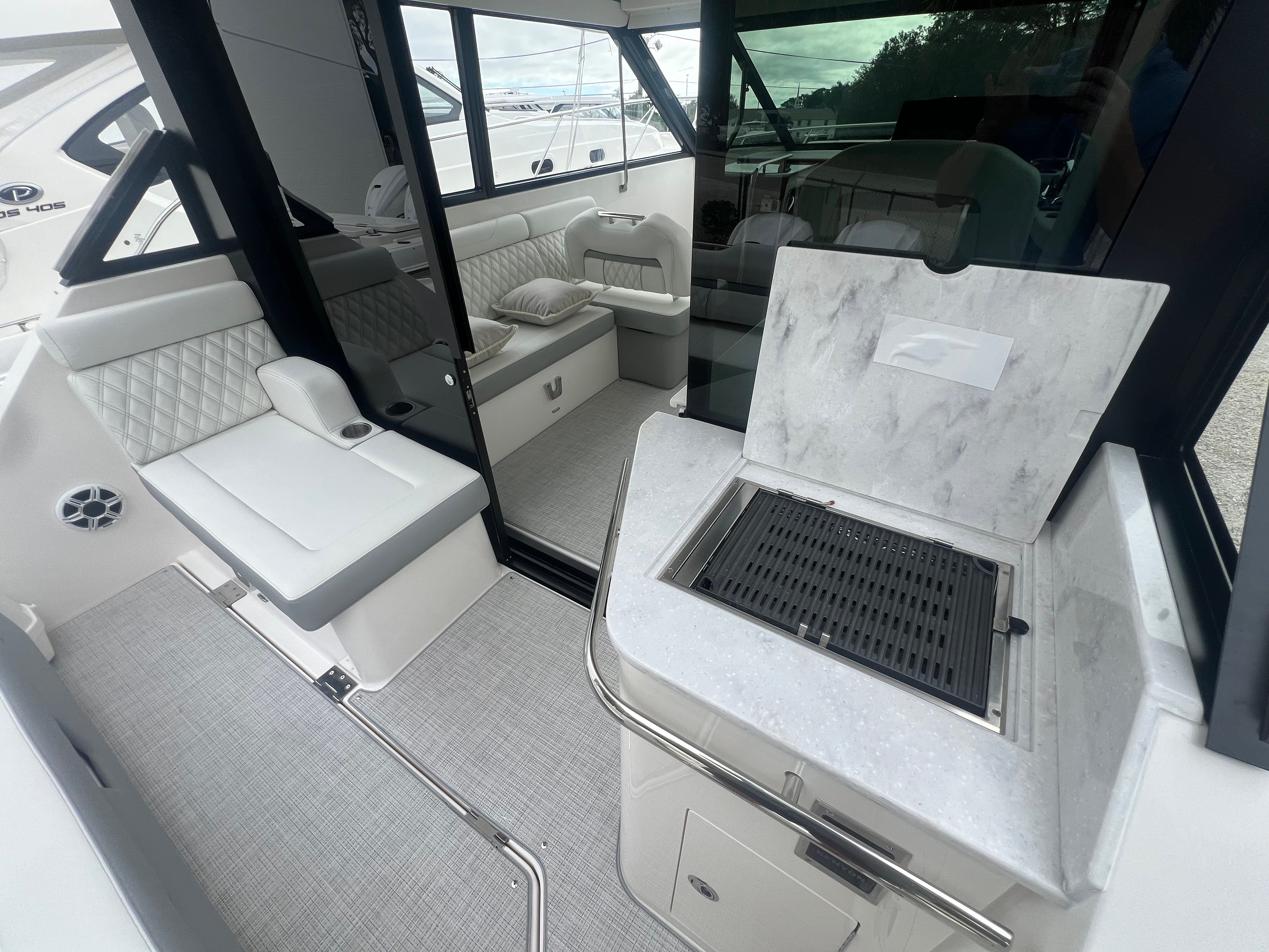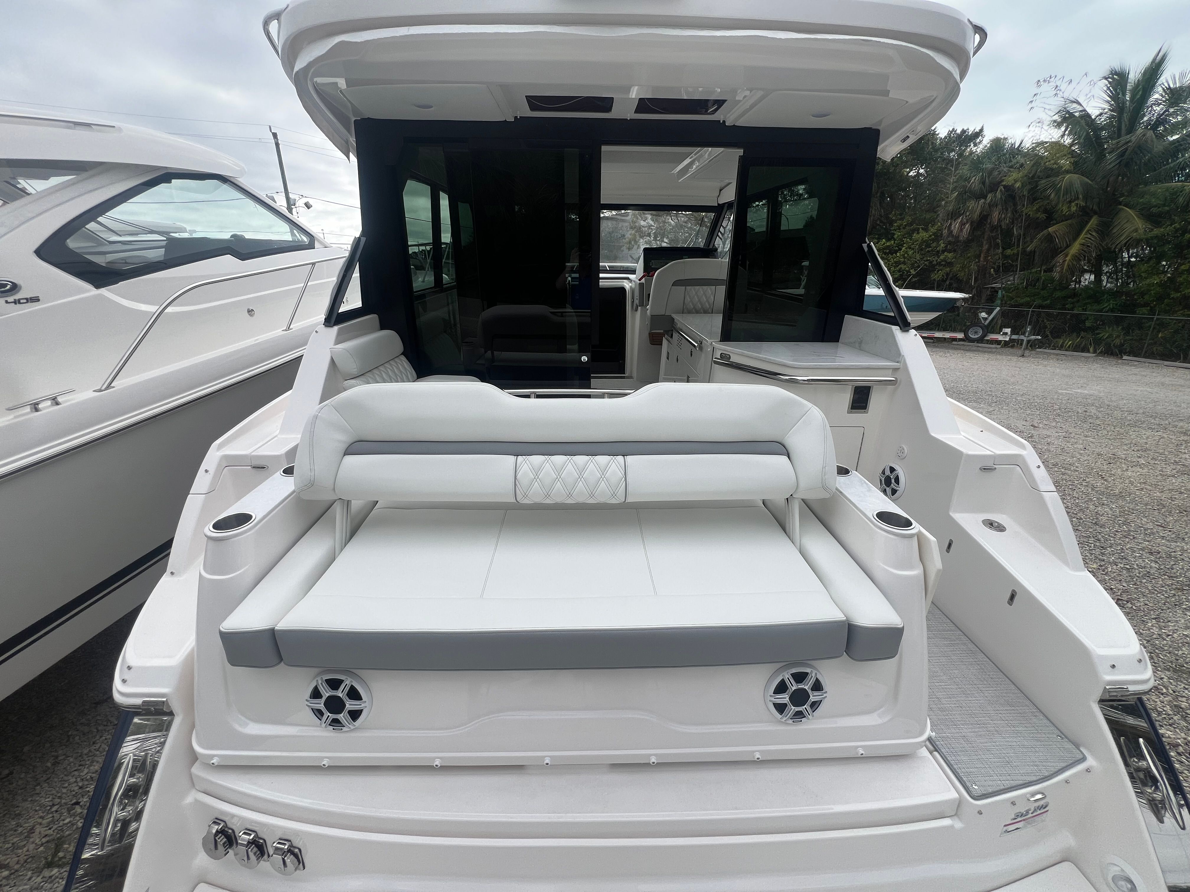 The 2026 Regal 36 XO is packed with special features that enhance comfort, convenience, and enjoyment on every voyage. The TV in the mid cabin provides entertainment for guests, creating a cozy retreat for movie nights or catching up on your favorite shows. The aft cockpit canvas with a Palm Beach enclosure offers protection from the elements while maintaining an open, airy feel, allowing you to enjoy the outdoors in any weather. The manual bow sunshade system extends your comfort zone, providing shade and relaxation on sunny days.For those who love to entertain, the electric grill is perfect for preparing delicious meals on board, while the cruise package ensures a smooth and enjoyable journey. The Garmin HD closed array radar adds a layer of safety and navigation precision, making it easy to chart your course and avoid obstacles. The windshield privacy cover offers added comfort and discretion, allowing you to enjoy your time on the water in complete privacy. Every detail of the Regal 36 XO is designed to maximize your enjoyment and create unforgettable memories.