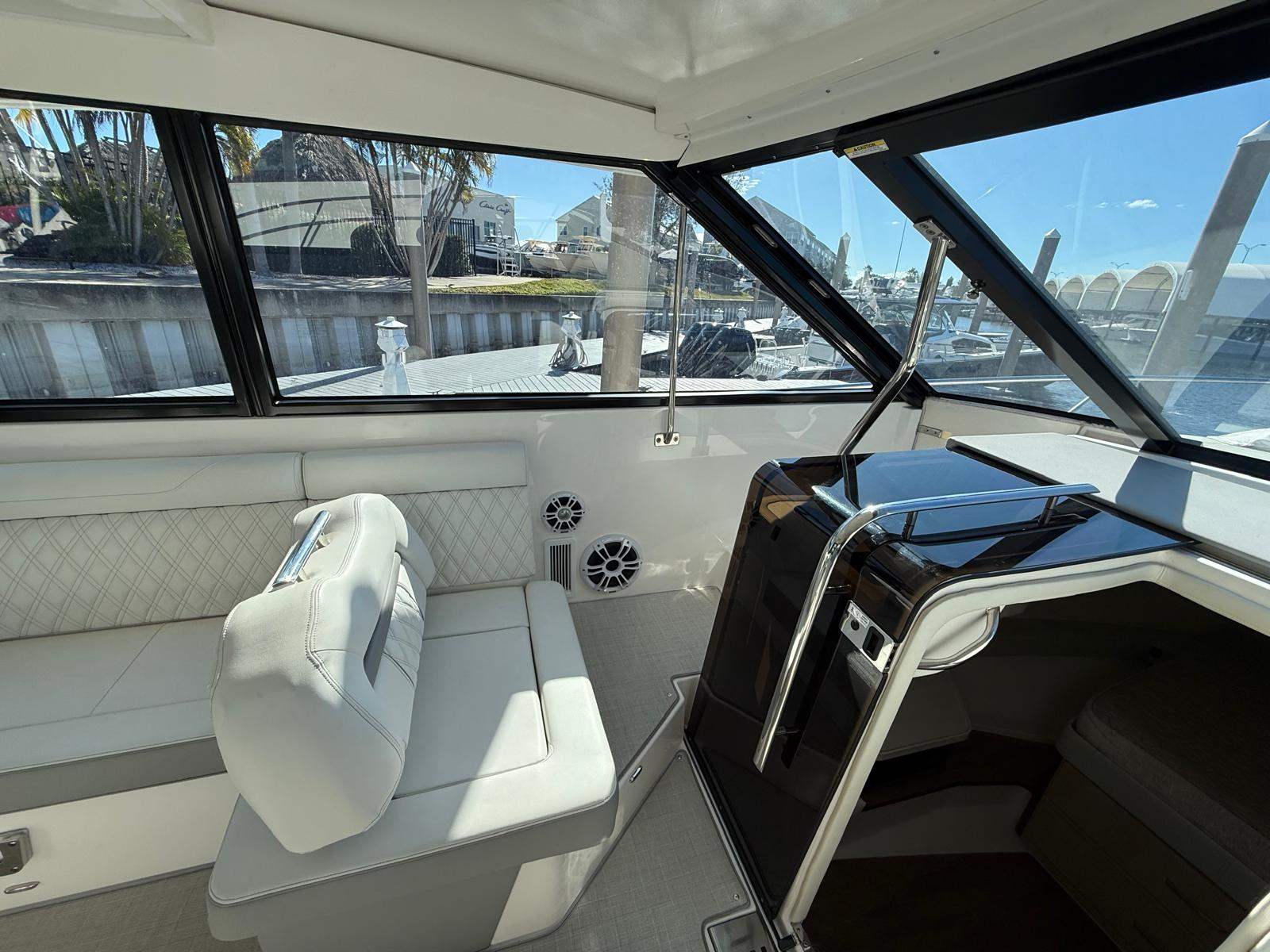 Power and precision are at the heart of the Regal 36 XO. Equipped with twin engines delivering a combined 850 horsepower, this yacht offers a thrilling ride that’s both smooth and responsive. The dual-engine setup ensures optimal maneuverability and reliability, making it easy to navigate through open waters or tight docking situations. With only 140 engine hours, you can trust that the performance of this yacht remains at its peak, ready to deliver countless hours of excitement and adventure. Whether you’re cruising at high speeds or enjoying a leisurely journey, the Regal 36 XO provides a dynamic boating experience that’s second to none.