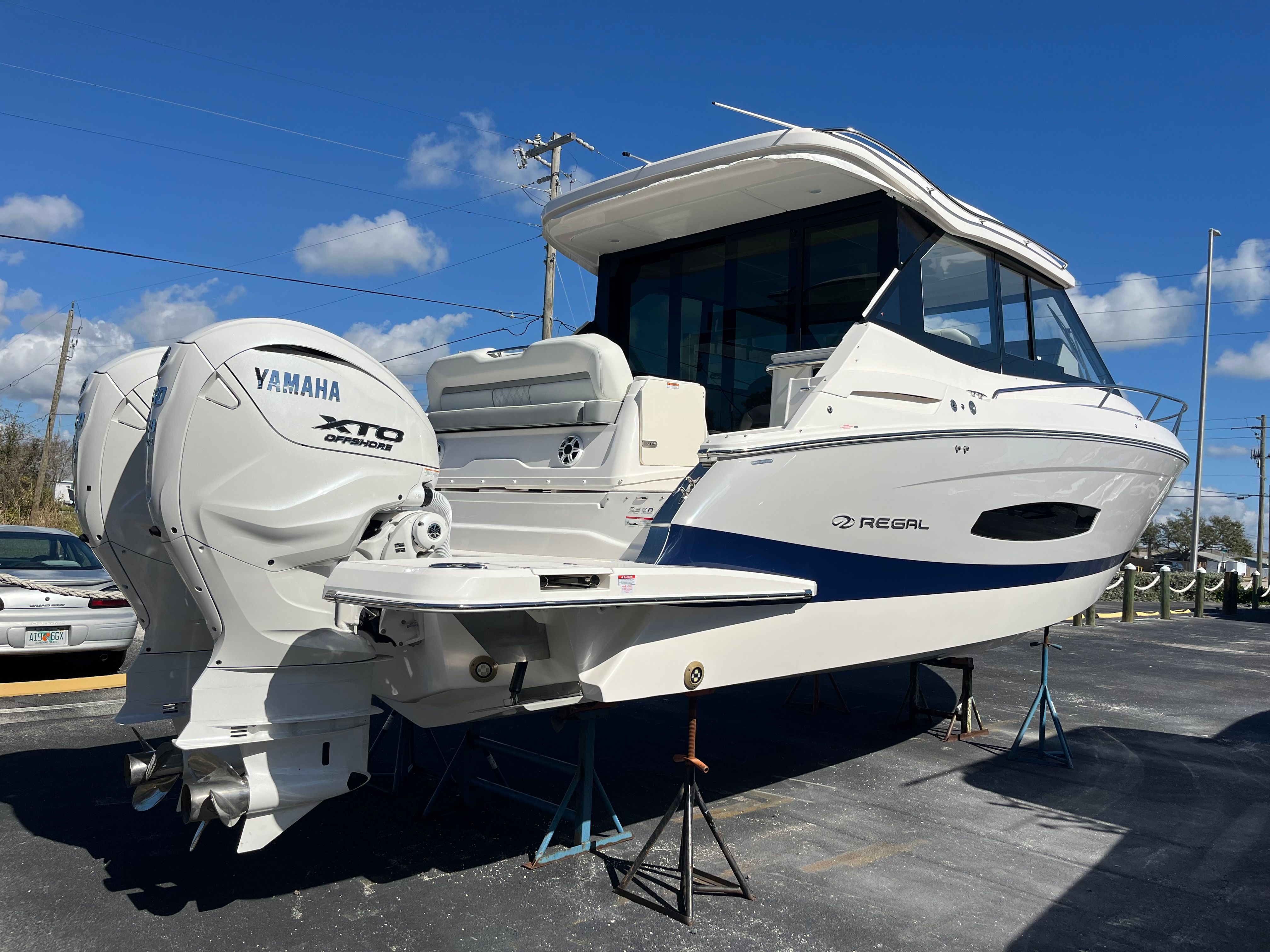In summary, the 2026 Regal 36 XO is a yacht boat for sale that combines cutting-edge performance, elegant design, and a host of special features to deliver an unparalleled boating experience. With twin Yamaha F450 engines, a striking Steel Gray hull, Mediterranean Blue bootstripe, Tahiti Beach White bottom, and a Titanium interior, this Regal boat for sale is both visually stunning and exceptionally functional. The Palm Beach Enclosure, manual bow sunshade system, transom seat covers, and windshield privacy cover add comfort and convenience, making every outing enjoyable. If you’re ready to elevate your time on the water and enjoy the luxury, versatility, and excitement that only a Regal yacht can provide, the 36 XO is the perfect choice. Contact your local dealer today to learn more about this remarkable yacht and start your next adventure in style.