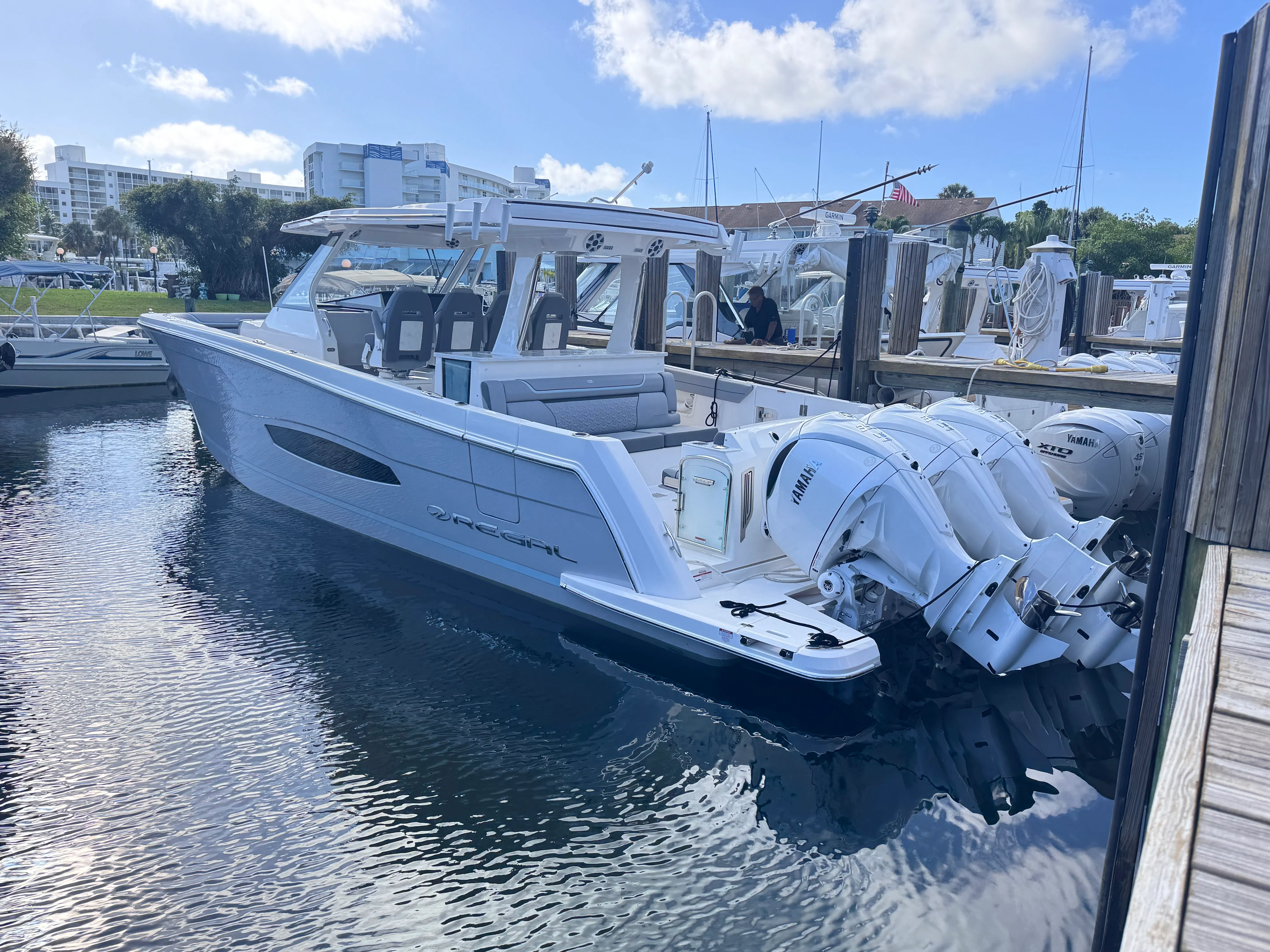 Owning the Regal 38 SAV opens the door to a world of fun, relaxation, and adventure. The spacious deck layout is perfect for hosting gatherings, whether you are enjoying a sunset cruise with friends or a lively family outing. The comfortable seating areas invite you to lounge in style, while the advanced sunshade systems ensure everyone stays cool and protected. The yacht’s premium finishes and thoughtful amenities create an environment where every moment on board feels special.The powerful triple Yamaha engines not only deliver thrilling performance but also provide the confidence to explore new destinations with ease. The integrated steering system enhances safety and maneuverability, making the 38 SAV accessible to both seasoned captains and those new to yachting. With its combination of speed, comfort, and versatility, this yacht is designed to make every journey memorable.