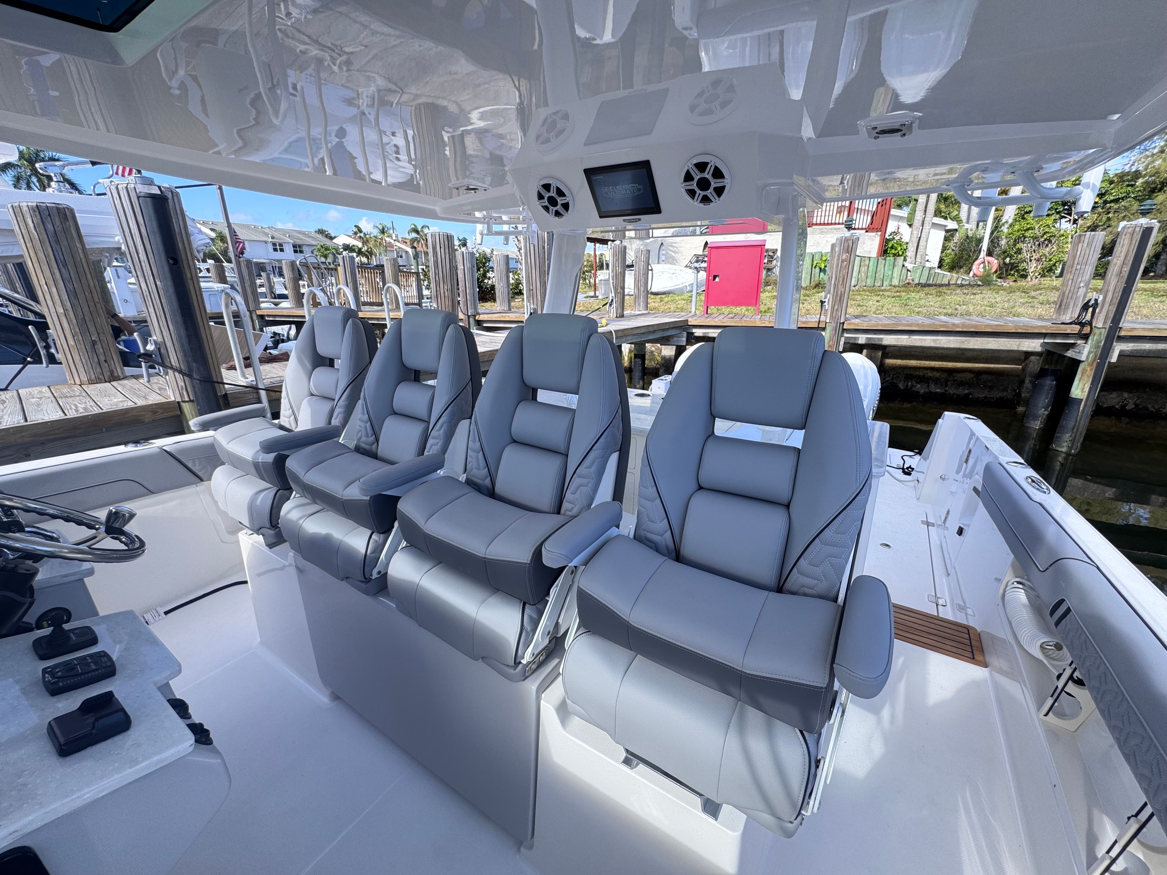 At the heart of the Regal 38 SAV lies an extraordinary propulsion system featuring triple Yamaha 350HP engines with integrated steering, finished in a striking white. This powerful trio delivers a combined 1,050 horsepower, ensuring exhilarating speed, responsive handling, and smooth cruising across open waters. The integrated steering system provides precise control, making docking and maneuvering effortless, even in tight spaces. Whether you are navigating coastal waters or embarking on longer voyages, the 38 SAV’s performance capabilities promise an exciting and confident ride every time you set sail.