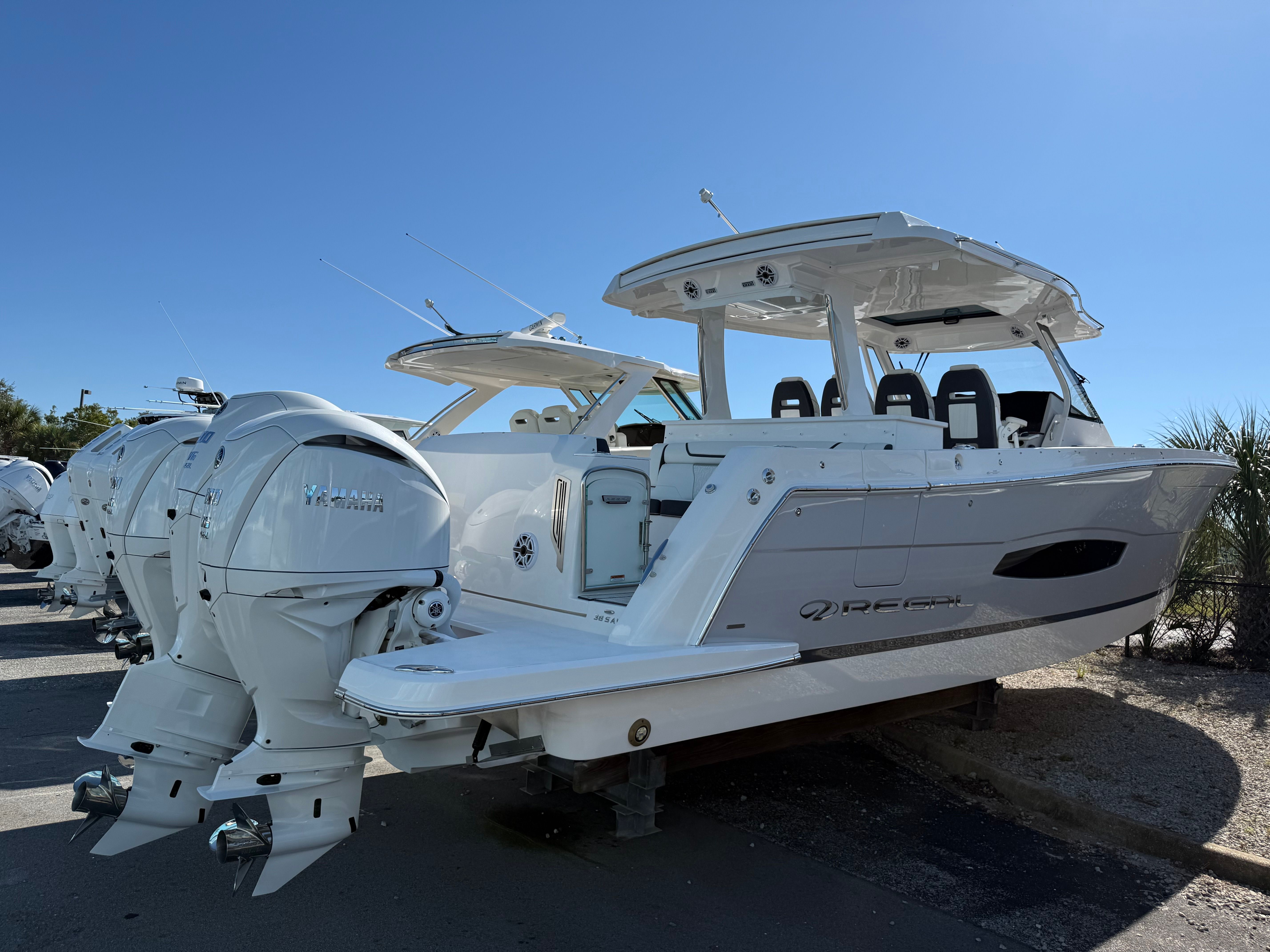The 2026 Regal 38 SAV is a new yacht boat for sale that combines exceptional performance, striking design, and versatile features. With triple Yamaha F300NSB2 engines, a sophisticated multi-zone color scheme, and a spacious 39.25-foot layout, this Regal boat for sale is the ultimate choice for those seeking luxury, excitement, and practicality on the water. Whether you are looking to entertain, explore, or relax, the Regal 38 SAV delivers an unforgettable boating experience. Discover the thrill of owning a world-class yacht and elevate your adventures with the Regal 38 SAV. Contact your local dealer today to learn more about this extraordinary vessel and take the first step toward your next great journey.