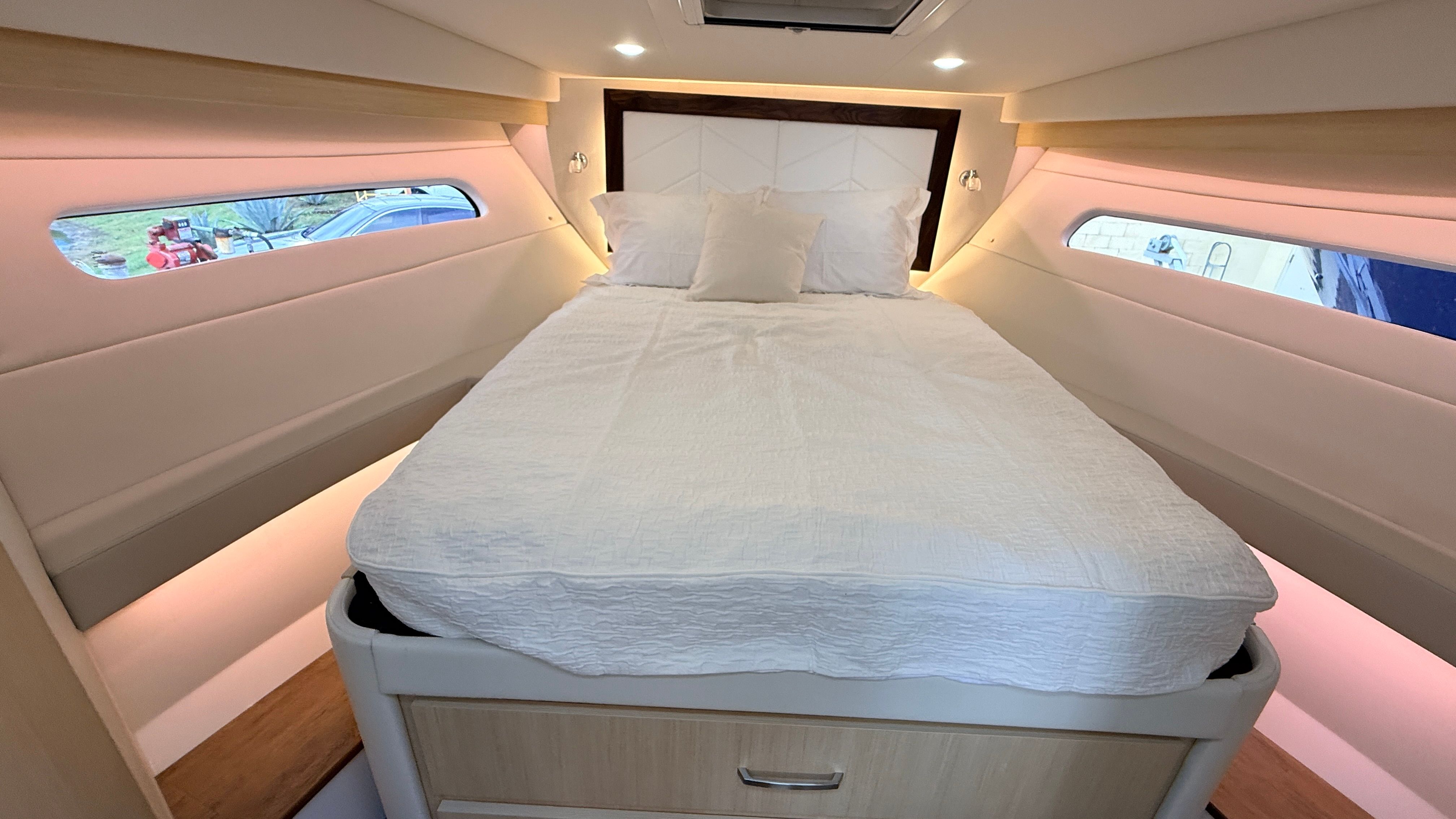 The Regal 38 XO is designed with practical ownership in mind. Its triple engine setup offers reliable performance and easy docking, making it a breeze to maneuver in tight spaces or busy marinas. The yacht’s efficient engines contribute to better fuel economy, allowing you to spend more time exploring and less time refueling. The versatile canvas options provide protection from the elements, ensuring your comfort in various weather conditions. Ample storage throughout the yacht makes it simple to stow gear, supplies, and personal items, keeping the living spaces organized and clutter-free. The combination of style, functionality, and ease of use makes this Regal boat for sale a smart investment for both seasoned boaters and newcomers alike.