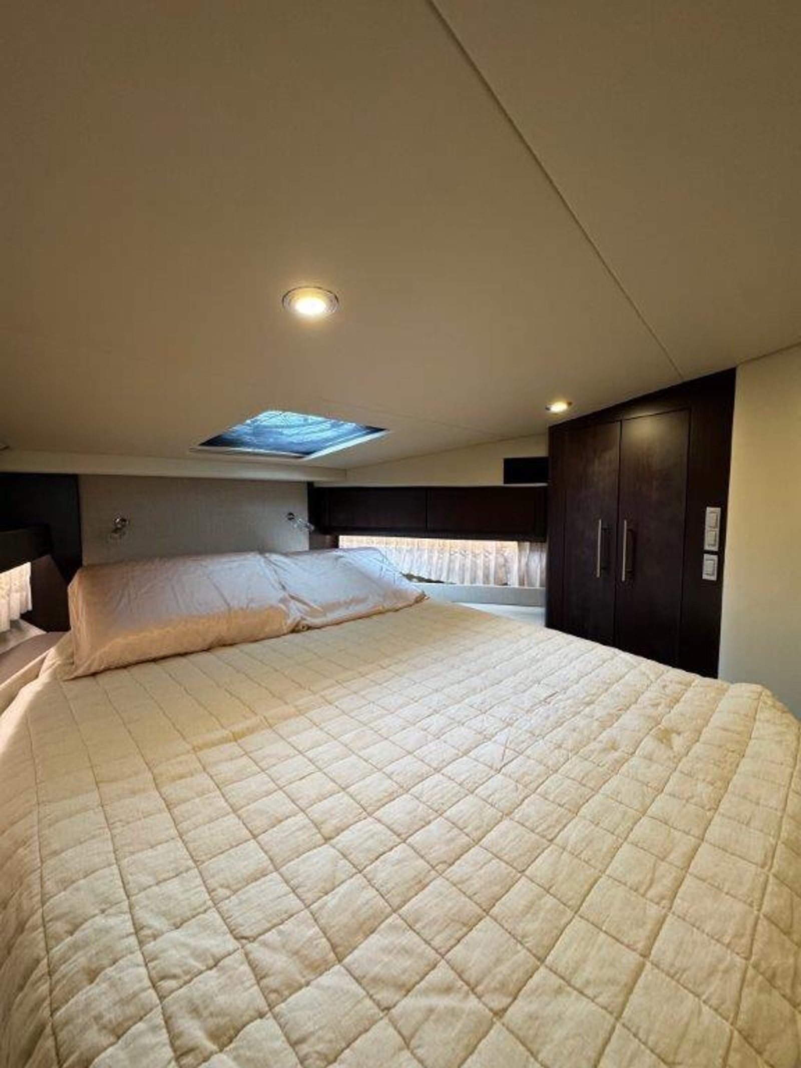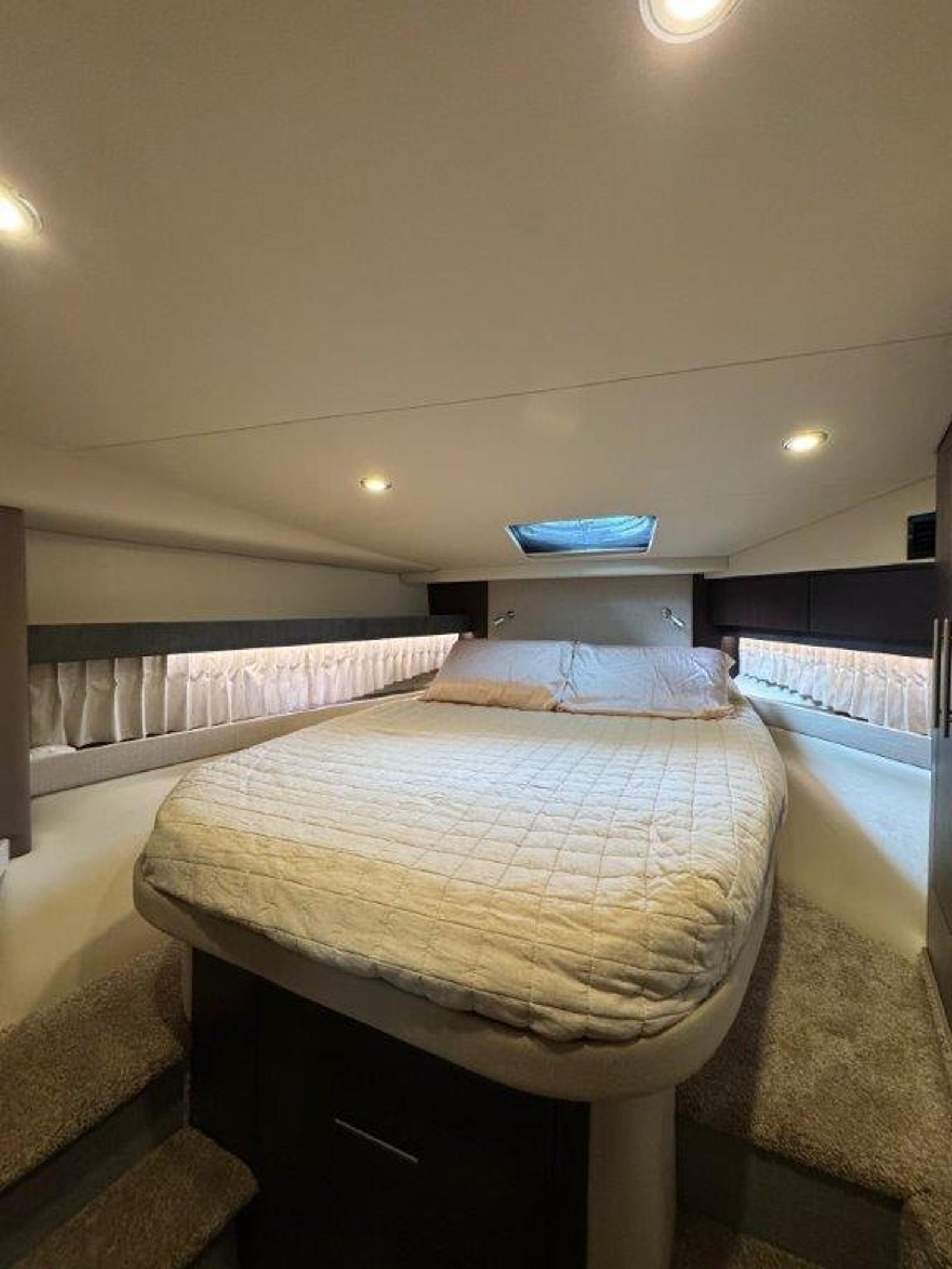 Forward stateroom: innerspring queen bed, cedar-lined lockers