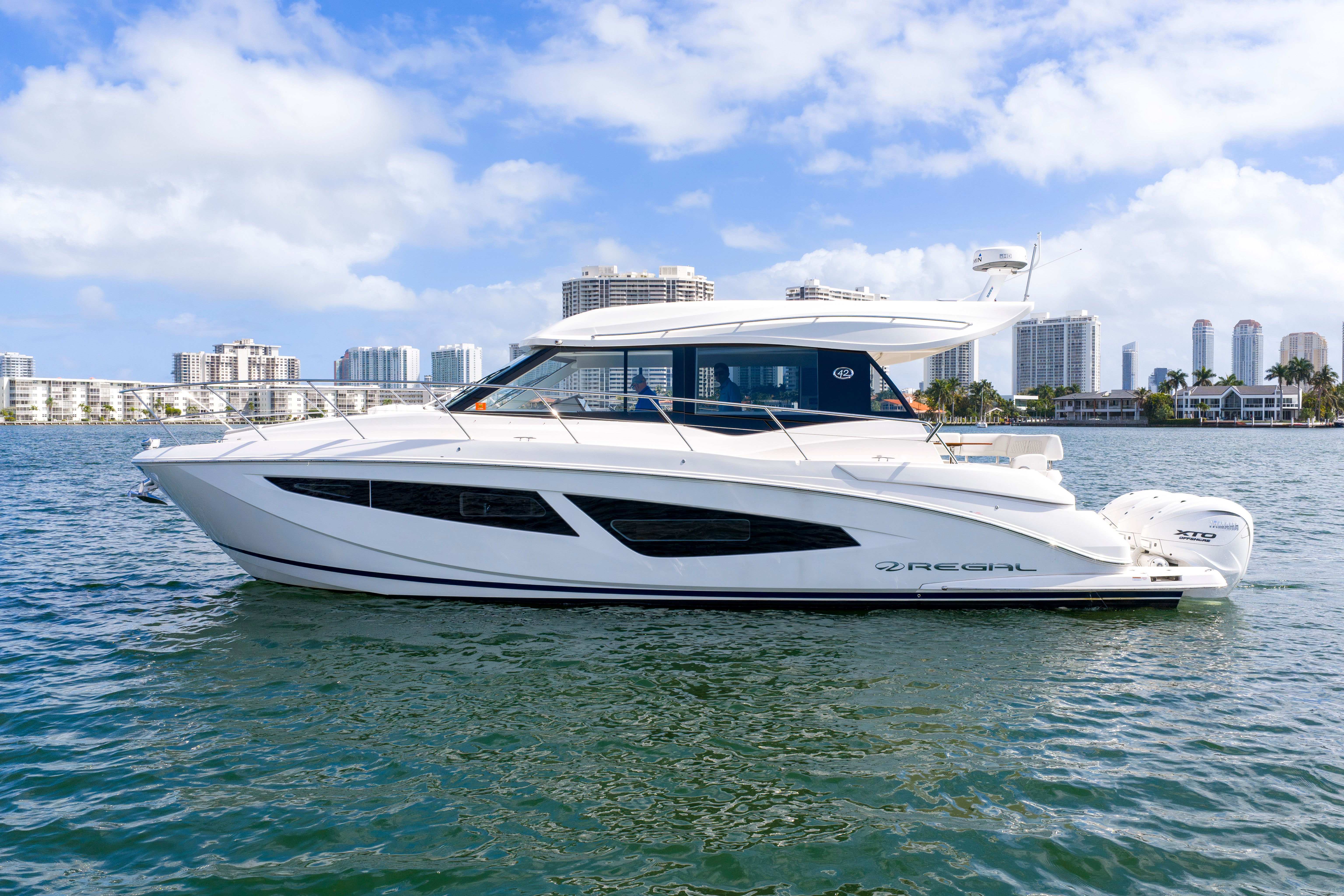 2024 Regal 42 XO – Low Hour | Seakeeper | Triple Yamaha 450s | DockMate | Humphrey Auto Trim Tabs