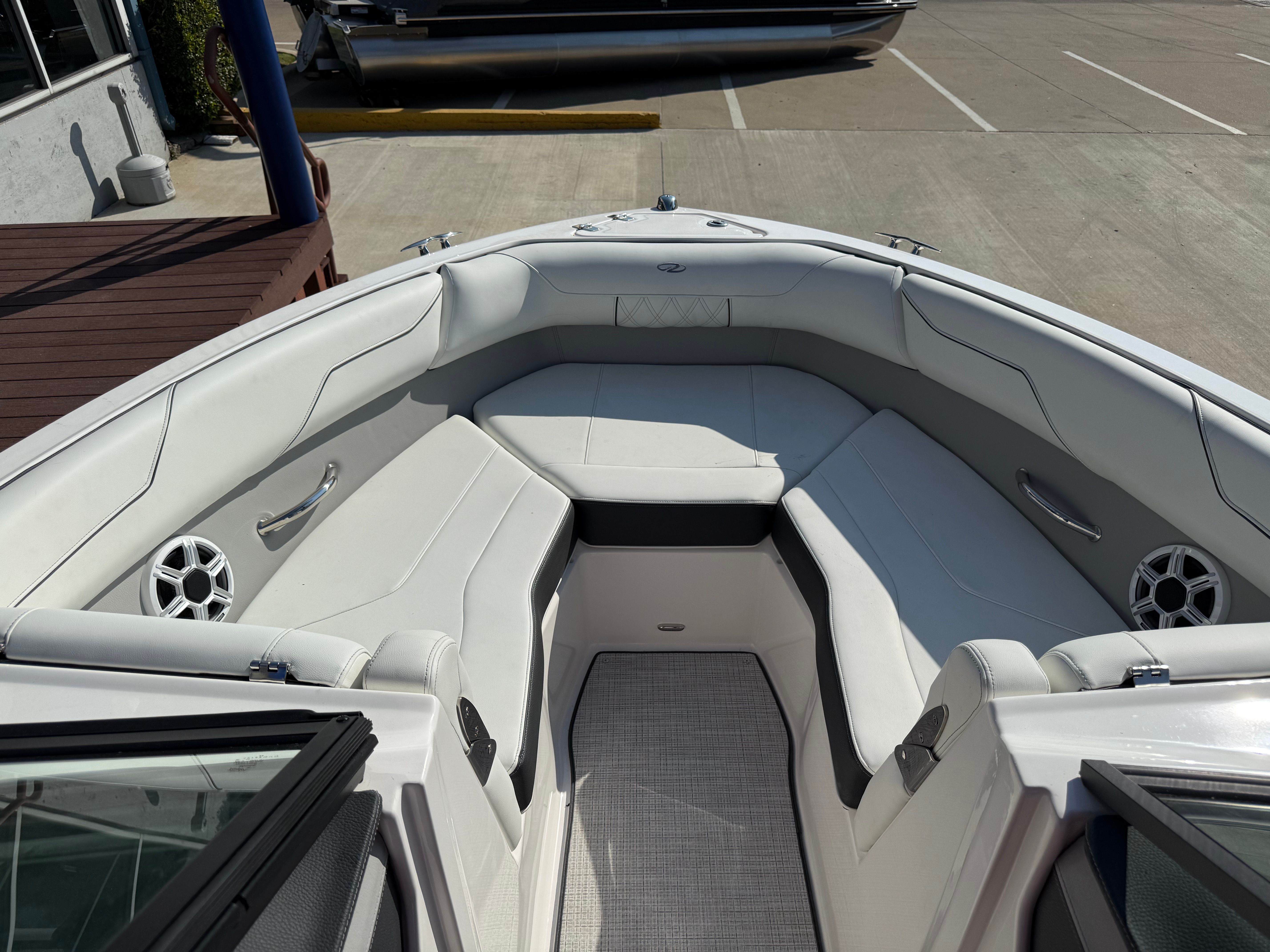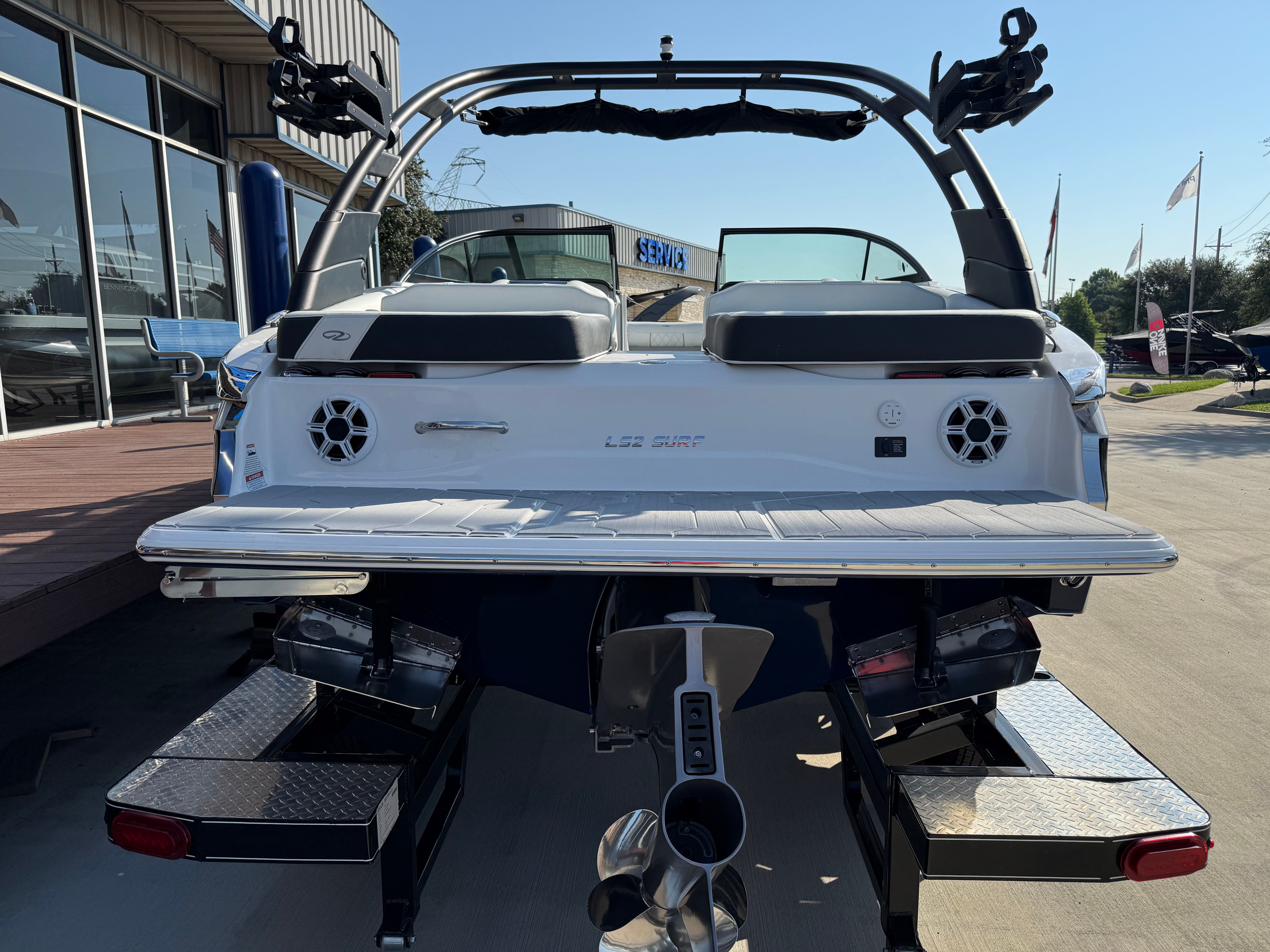 The Regal LS2 Surf is designed with practicality in mind, making ownership as enjoyable as the boating experience itself. The ample storage options throughout the boat provide plenty of space for gear, water toys, and personal belongings, keeping the deck clutter-free and organized. The forward drive system not only enhances performance but also simplifies docking and maneuvering in tight spaces. The dual battery system ensures you have reliable power for extended outings, while the durable travel cover and canvas protect your investment from the elements. The SeaDek Swim Platform and Seagrass Mat add both comfort and safety, making it easy to transition from water to deck and vice versa.