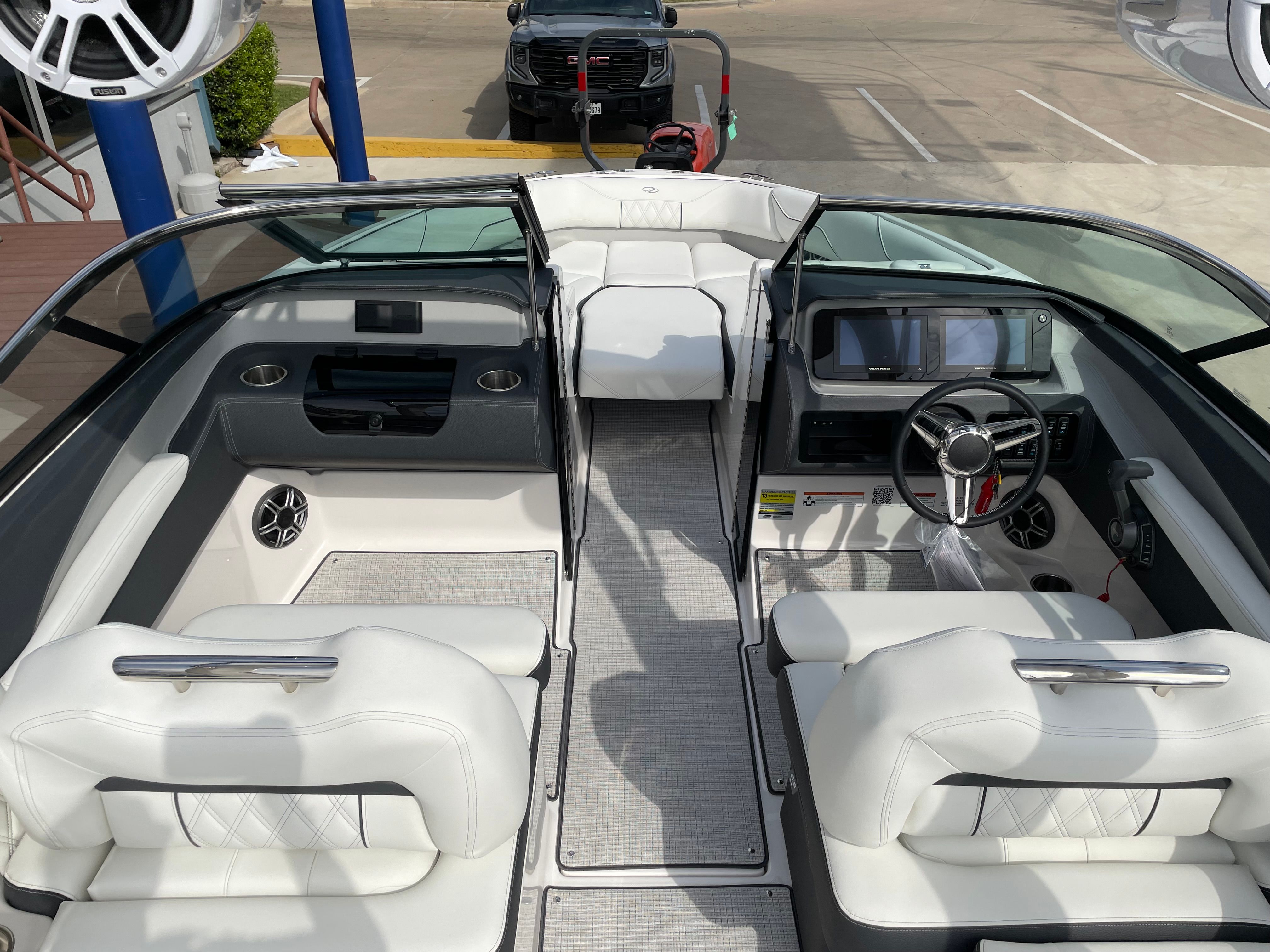At the heart of the Regal LS4 Surf is a powerful Volvo V8 350 FWD EVC2 DP CAT engine, delivering an impressive 350 horsepower. This single-engine setup provides robust acceleration, smooth handling, and reliable performance, whether you’re cruising, towing water sports enthusiasts, or exploring new waterways. The advanced engine technology ensures optimal fuel efficiency and reduced emissions, making it an environmentally conscious choice for modern boaters. With the LS4 Surf, you can expect exhilarating speed, precise control, and a quiet ride, all backed by Regal’s reputation for quality and innovation.