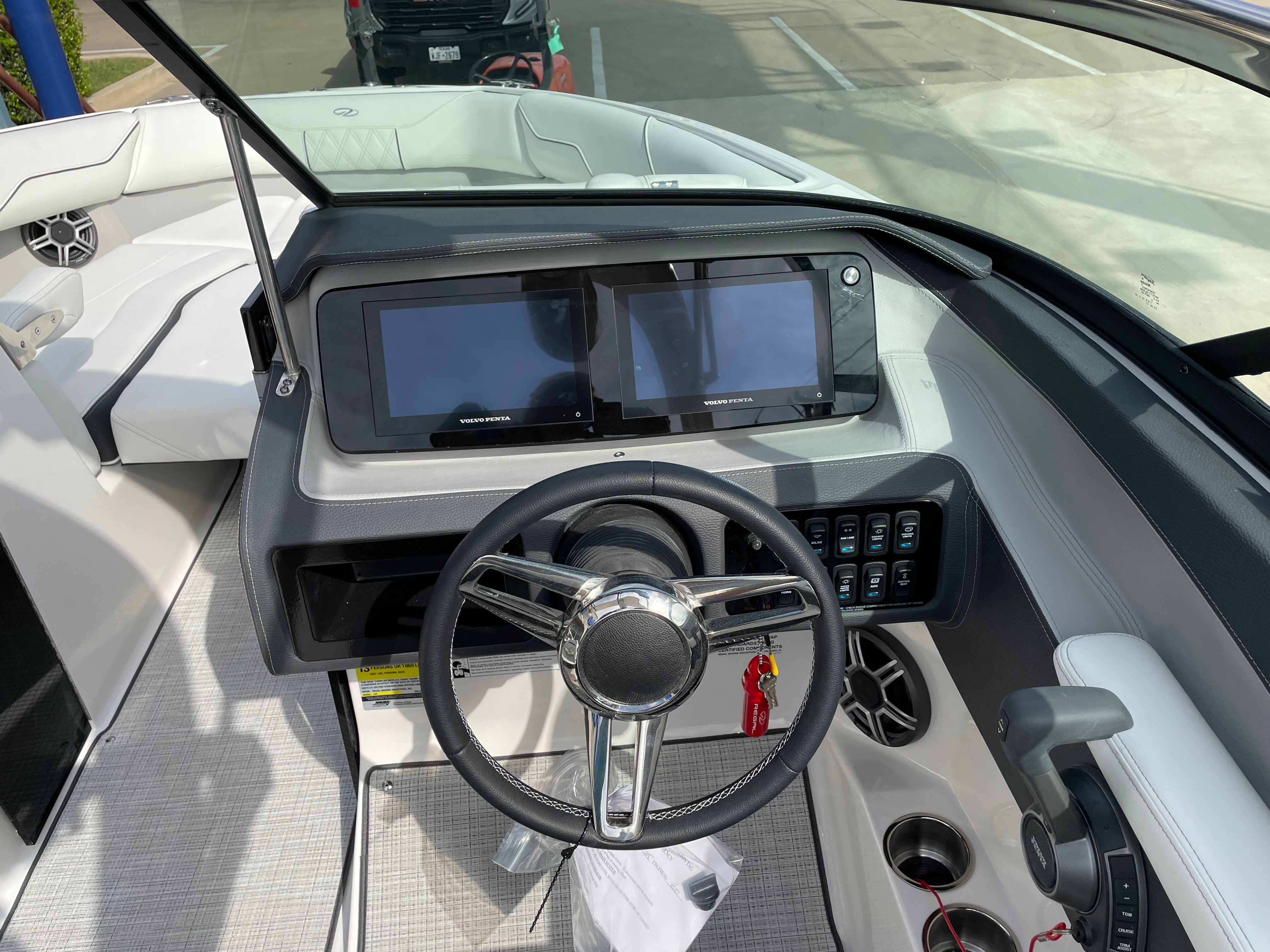 The 2026 Regal LS4 Surf is packed with special features that enhance comfort, convenience, and safety on the water. The Volvo V8 350 FWD EVC2 DP CAT engine is a standout, offering advanced forward drive capabilities for superior maneuverability and surf performance. The hull’s Steel Grey color, paired with the Seafoam boot stripe and Steel Grey bottom, creates a striking visual appeal that reflects Regal’s commitment to style and durability.Inside, the Titanium interior provides plush seating and a refined atmosphere, perfect for relaxing or entertaining guests. The travel storage cover protects your investment during transport and storage, while the cockpit Seagrass mat adds a touch of luxury underfoot. The SeaDek swim platform offers a comfortable, non-slip surface for swimmers and water sports enthusiasts, making it easy to get in and out of the water.Practical features like the dual battery switch with tray and cables, along with a battery charger, ensure reliable power management and peace of mind during extended outings. These thoughtful additions make the LS4 Surf a standout choice for those seeking a Regal boat for sale that combines style, performance, and practicality.
