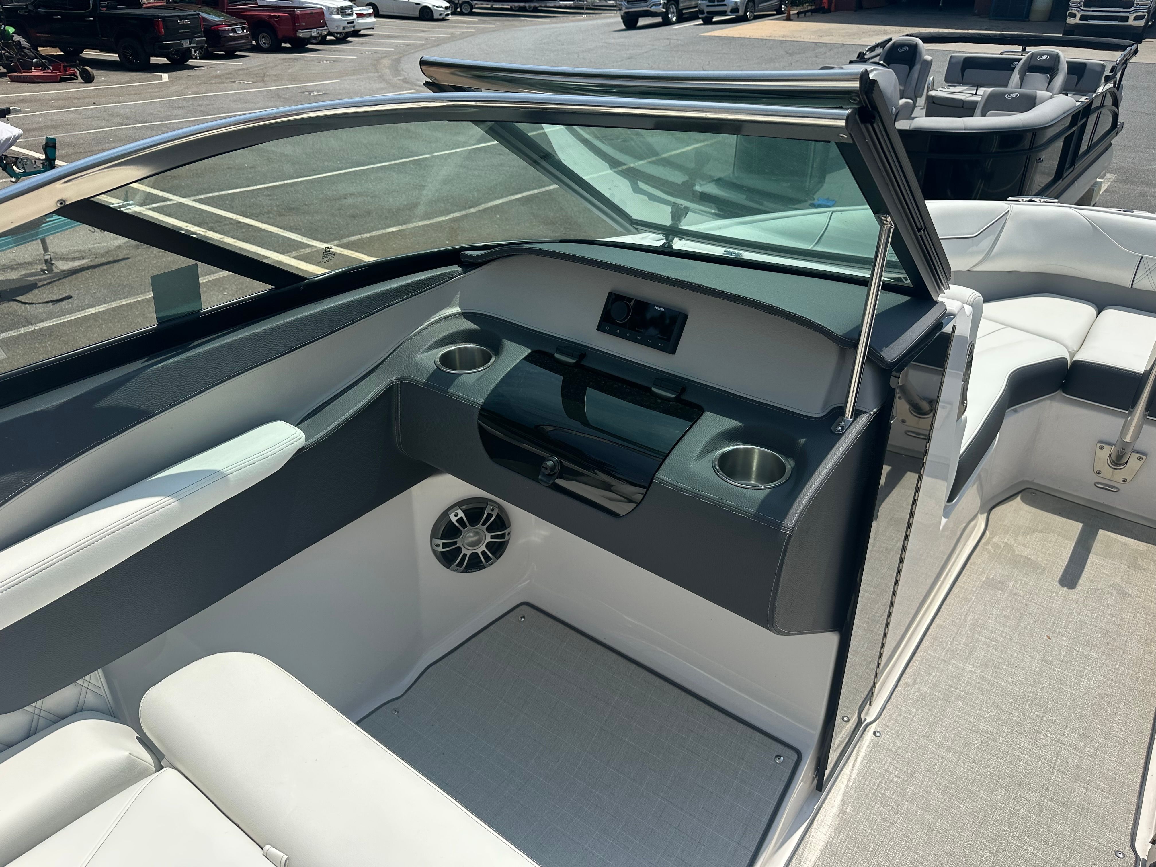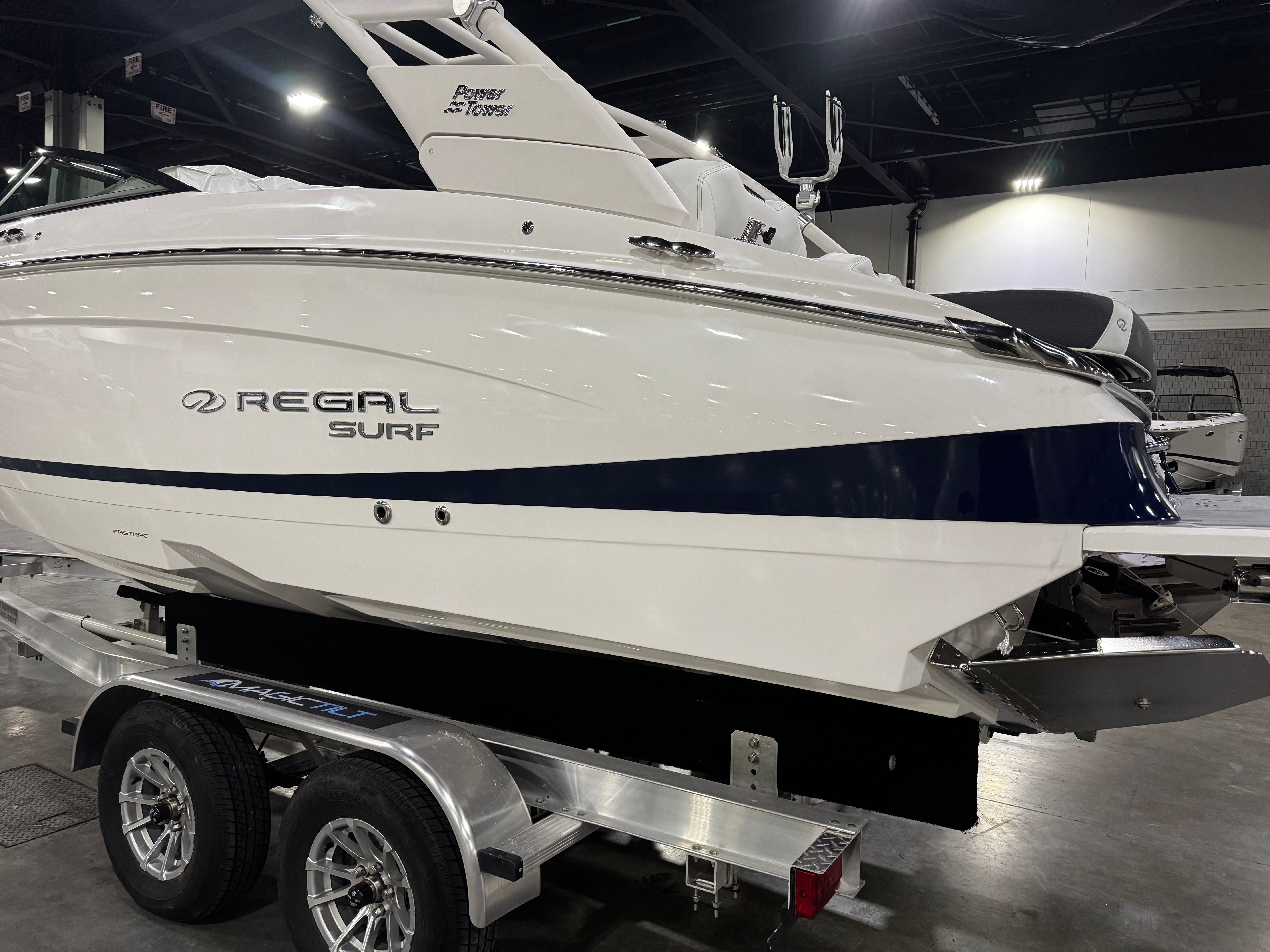 The 2025 Regal LS4 Surf is loaded with premium features designed to elevate your boating experience. Step aboard and feel the comfort of the Cockpit Seagrass Mat, offering a soft, stylish, and slip-resistant surface underfoot. The Travel Storage Cover in sleek black keeps your boat protected from the elements when not in use, ensuring it stays in showroom condition.Watersports enthusiasts will appreciate the Watersport Mirror, providing a clear view of the action behind the boat. The innovative PowerTower S2 in white adds both style and functionality, making it easy to store and transport your boat while also supporting watersports accessories. The Dual Battery Switch with Tray and Cables ensures reliable power management, so you can enjoy extended days on the water without worry.Entertain guests with ease using the elegant Cockpit Table crafted from teak, perfect for snacks, drinks, or a relaxing meal on the water. The Dual 9" Glass Cockpit Watersports displays put all your navigation and performance data at your fingertips, making it simple to monitor your ride and stay in control. The Mediterranean Blue bootstripe adds a touch of sophistication, while the docking lights make evening arrivals and departures safer and more convenient.
