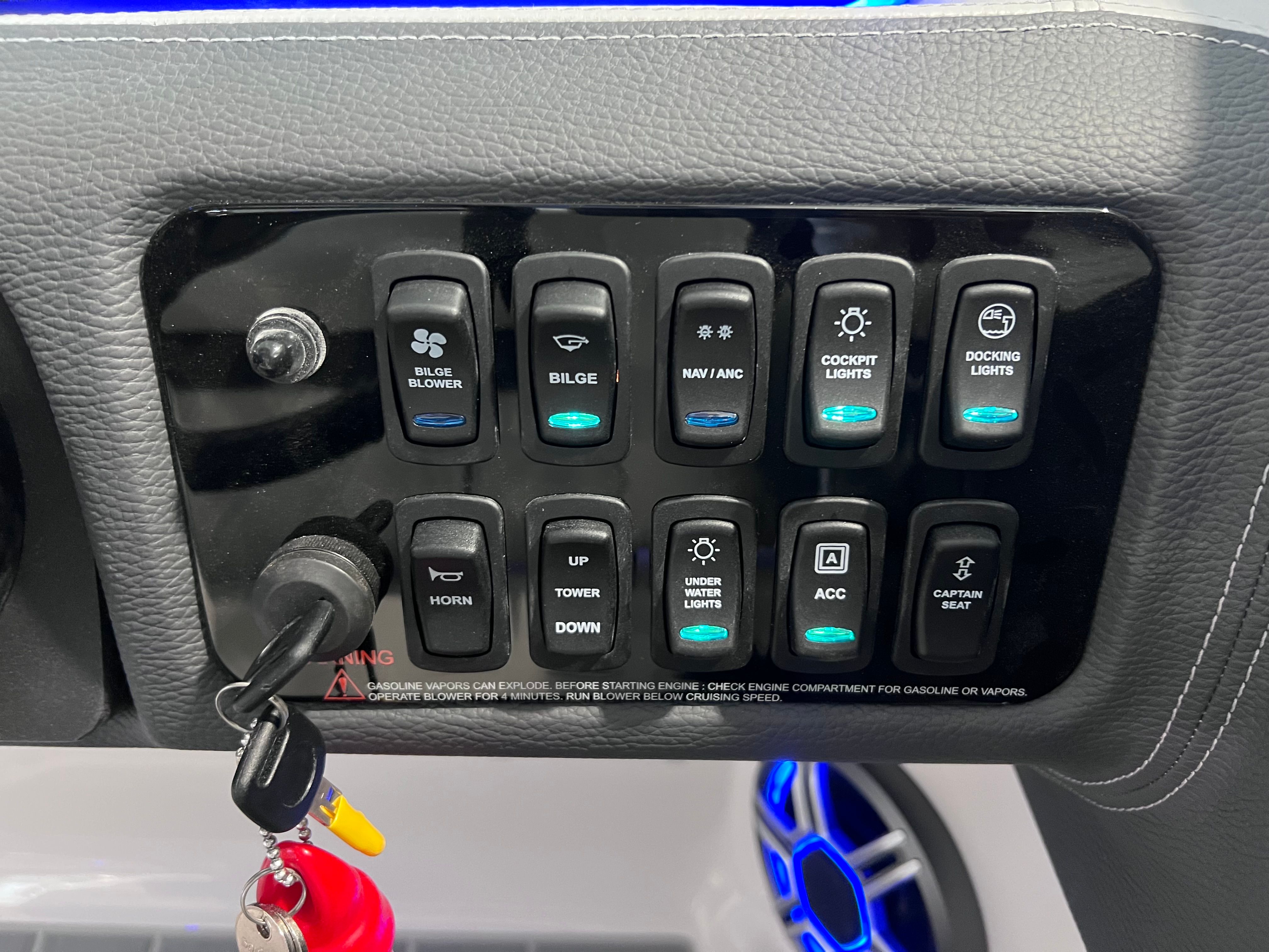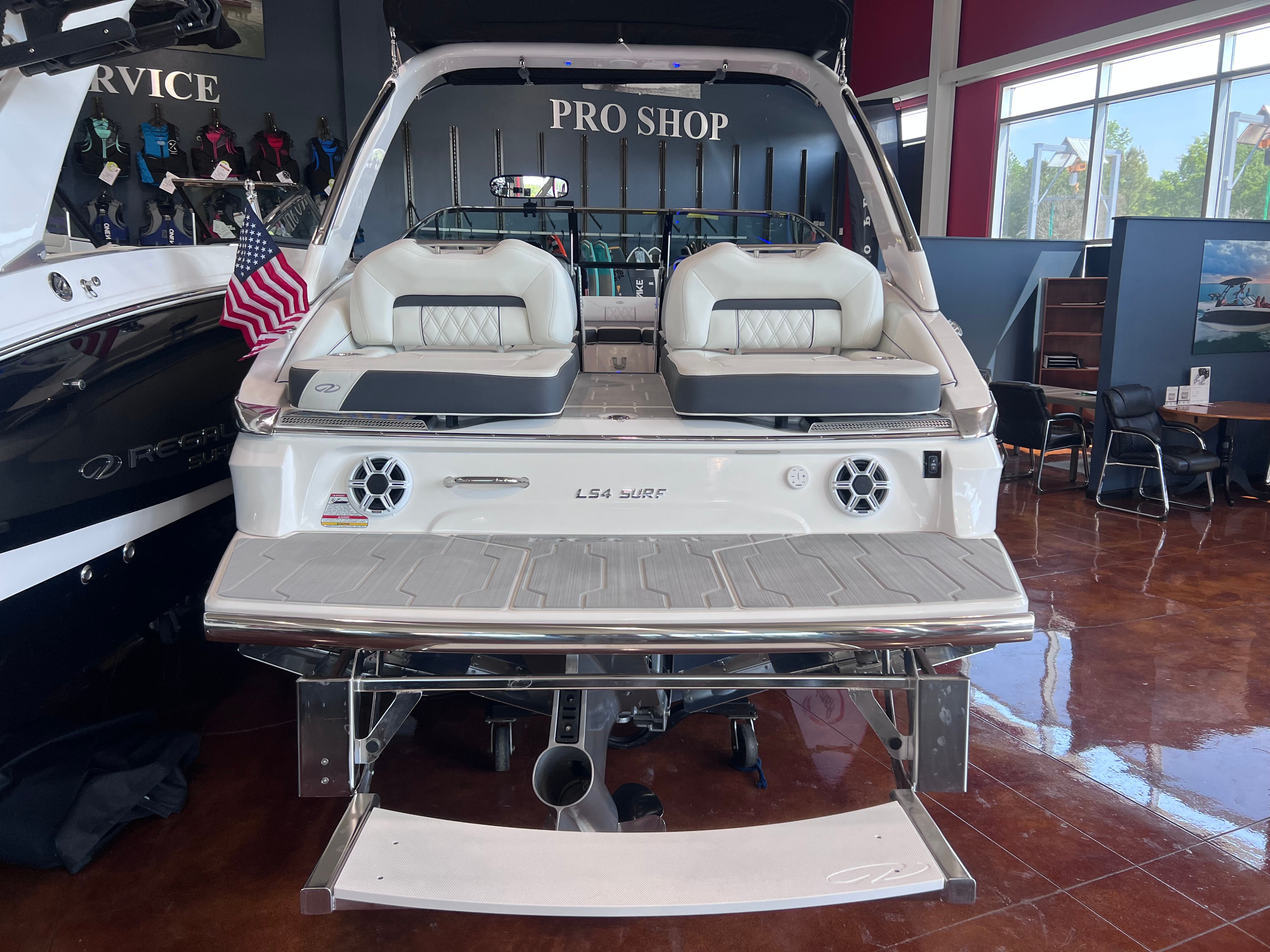 The 2026 Regal LS4 Surf is packed with premium features designed to maximize your enjoyment and convenience. The hull, bootstripe, and bottom colors in Tahiti Beach White and Graphite create a striking visual statement, while the Titanium accents add a touch of modern elegance. The included travel storage cover in black and black canvas provide protection and style, keeping your boat in pristine condition when not in use.Step aboard and you will immediately notice the SeaDek cockpit sole and SeaDek swim platform, offering a comfortable, non-slip surface that is perfect for barefoot relaxation or gearing up for water sports. The dual battery switch with tray and cables ensures reliable power management, giving you peace of mind during long days on the water.