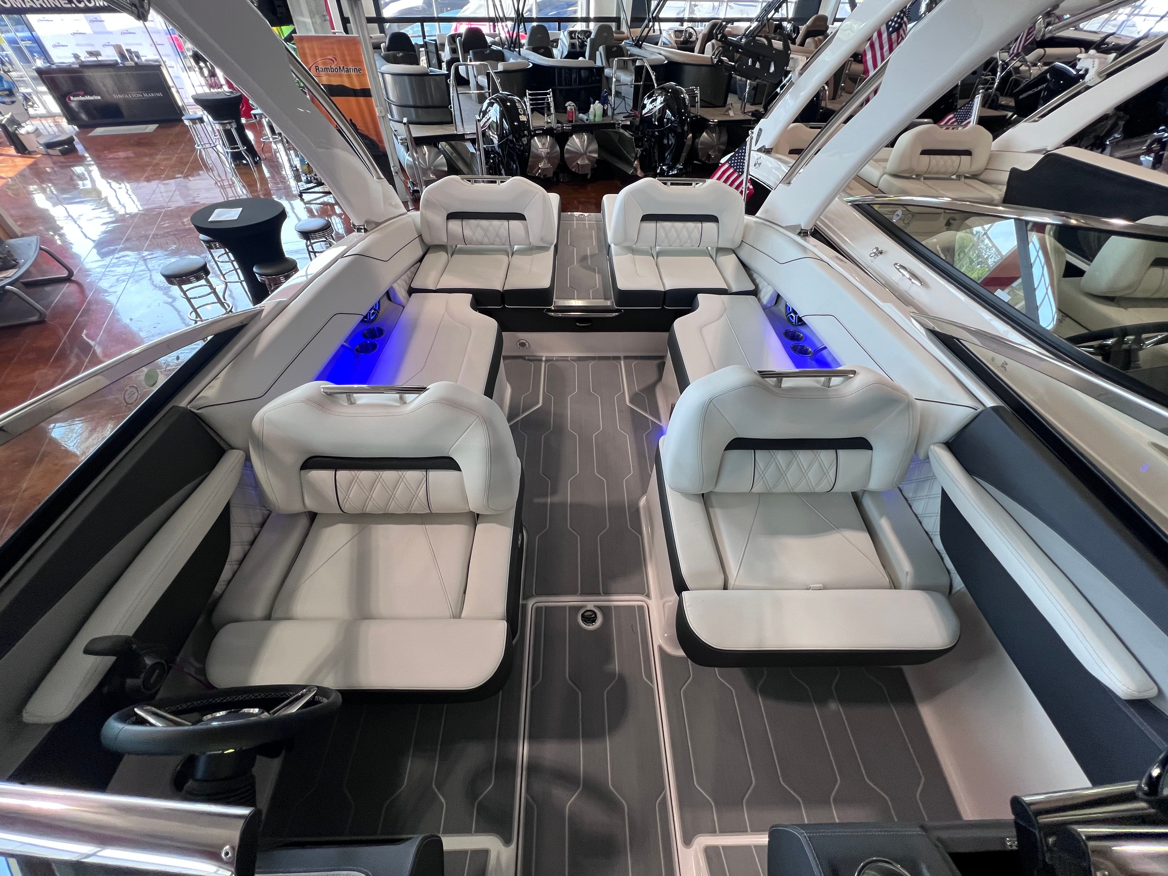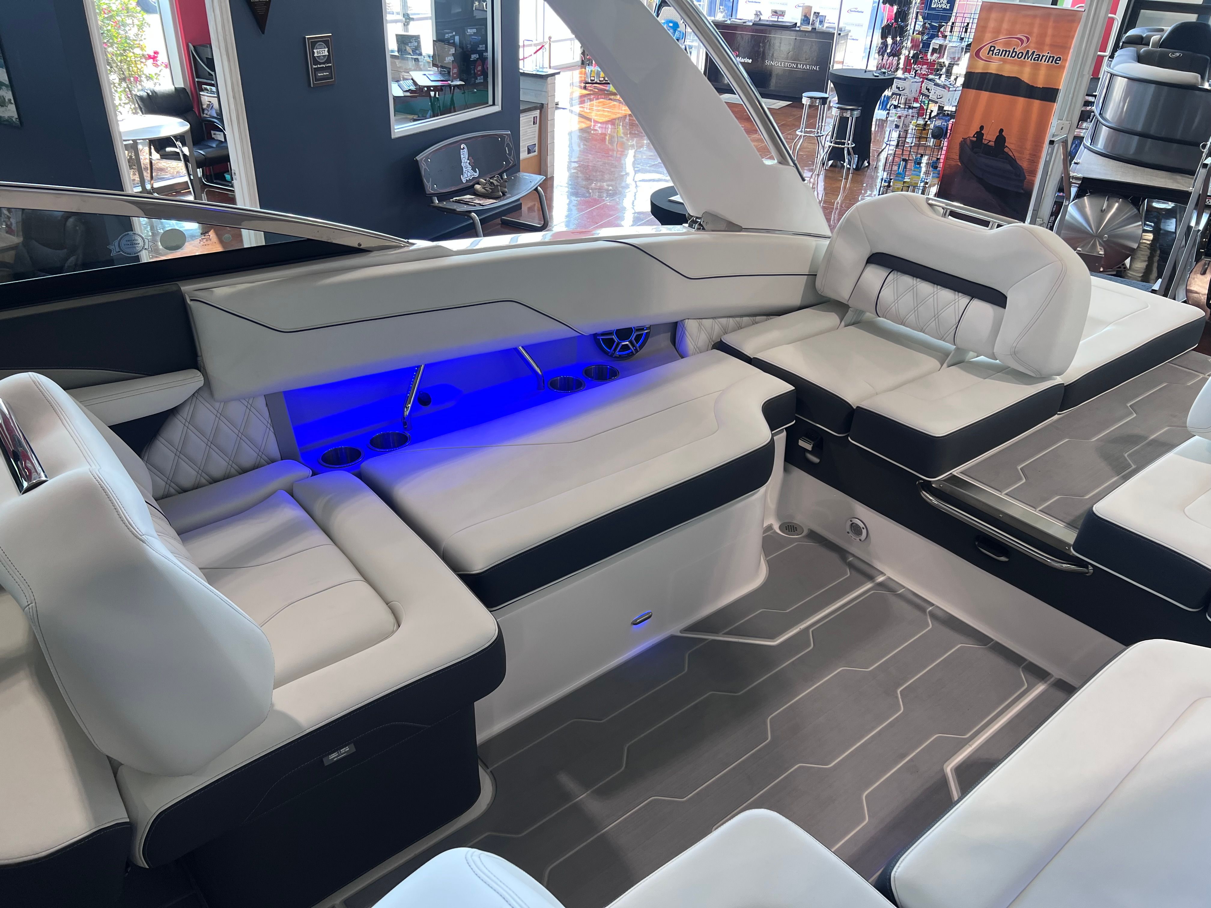 Owning the Regal LS4 Surf means embracing a lifestyle of fun, relaxation, and unforgettable memories. The spacious bowrider layout invites friends and family to spread out and enjoy the ride, while the plush seating and open design create a welcoming atmosphere for socializing. The SeaDek surfaces enhance comfort and safety, making it easy to transition from lounging to swimming or wakeboarding.This bowrider boat for sale is designed for versatility, allowing you to switch seamlessly between cruising, water sports, and entertaining. The powerful Volvo V8 engine provides the muscle you need for towing, while the advanced hull design ensures a smooth, dry ride even in choppy conditions. Every detail of the LS4 Surf is crafted to enhance your time on the water, from the stylish exterior to the thoughtfully designed cockpit.