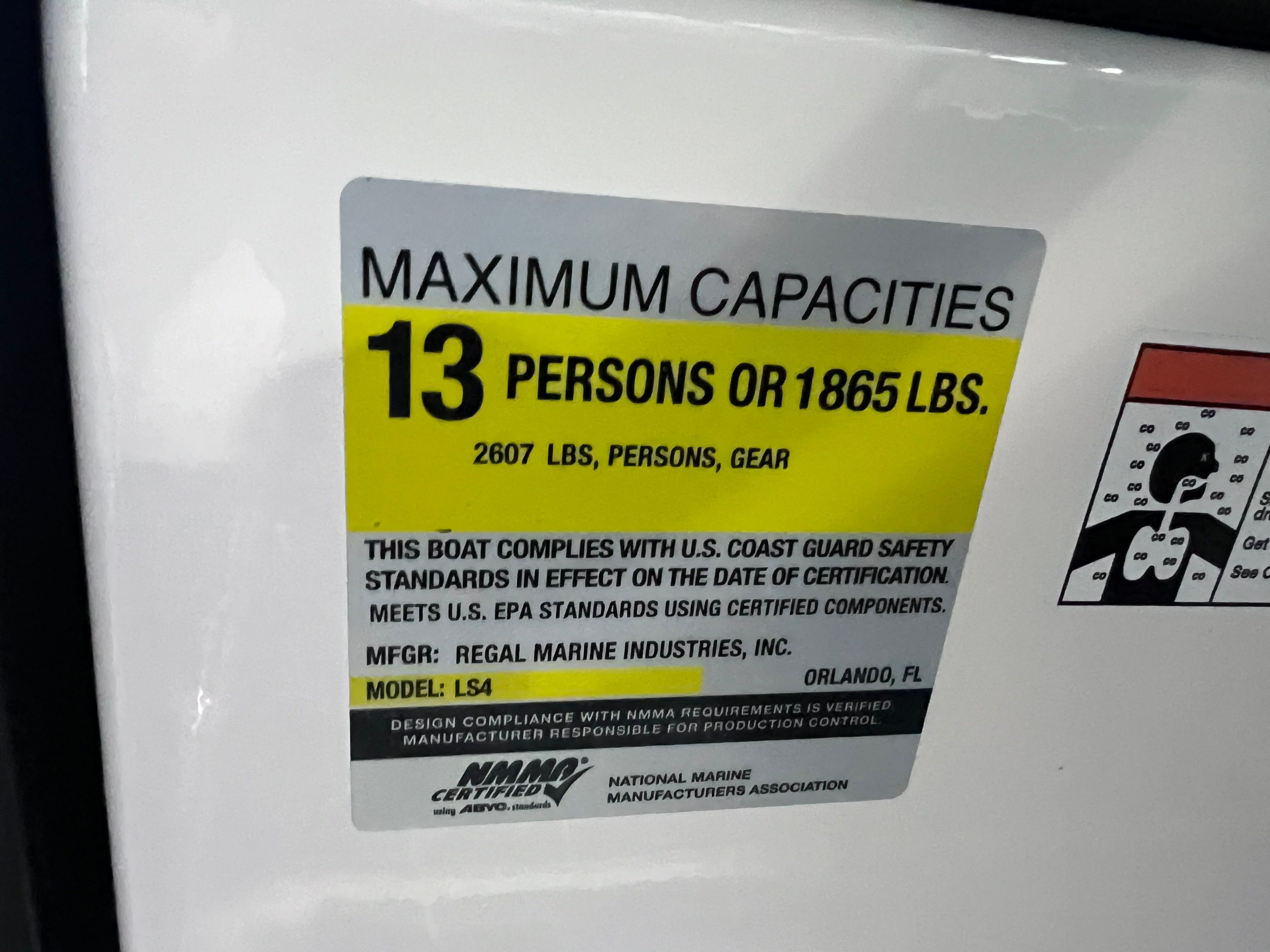The Regal LS4 Surf is as practical as it is fun. The travel storage cover and durable canvas protect your investment from the elements, while the dual battery switch system helps manage onboard electronics and accessories efficiently. The SeaDek surfaces are easy to clean and maintain, ensuring your boat stays looking great season after season.Docking and maneuvering are a breeze thanks to the responsive handling and forward-drive propulsion, making this bowrider ideal for both novice and experienced boaters. The ample deck space and smart storage solutions allow you to bring along all your gear, whether you are planning a day of water sports, a sunset cruise, or a relaxing afternoon anchored in your favorite cove.