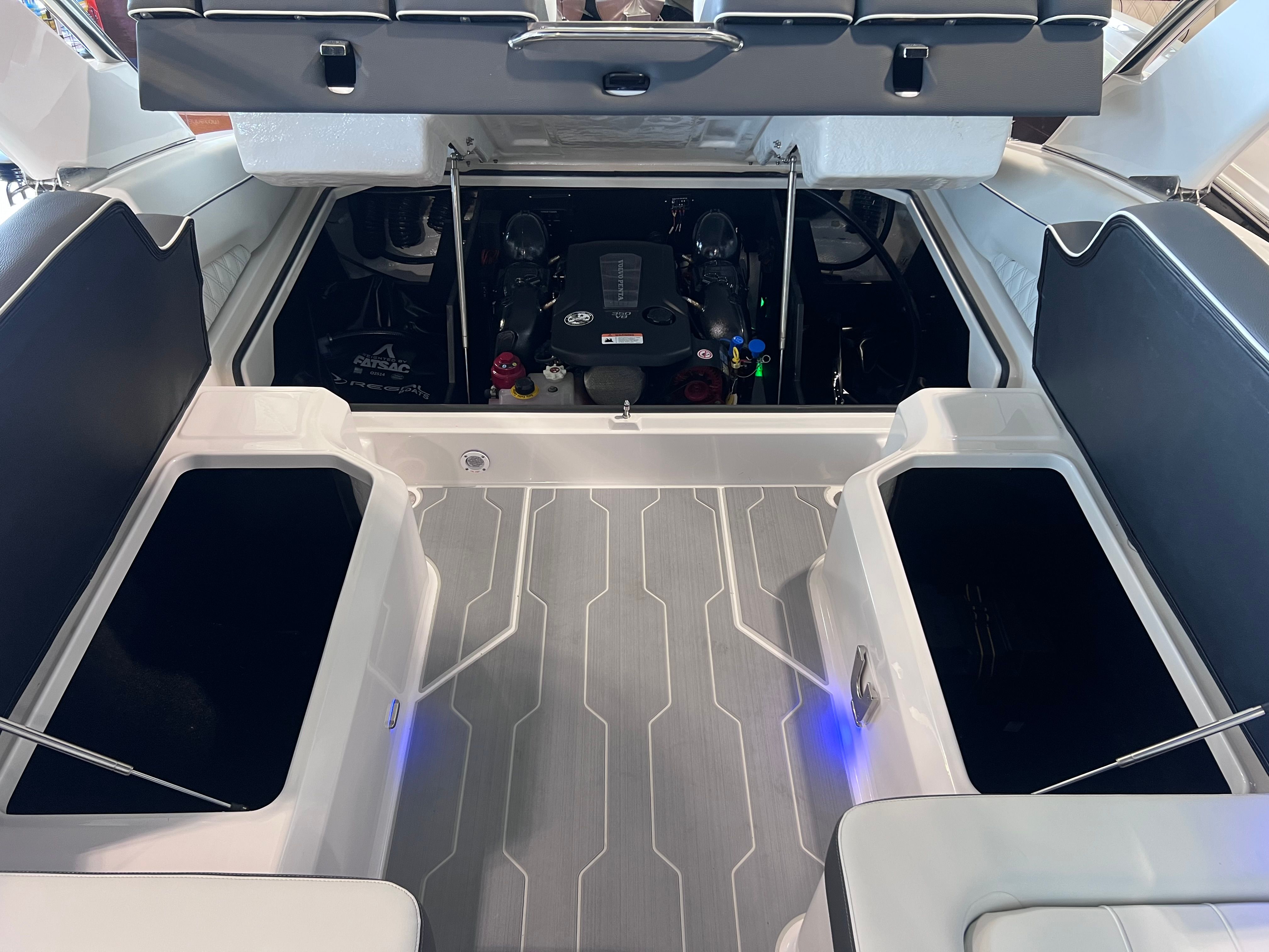 Powering the Regal LS4 Surf is a robust Volvo V8 350 FWD EVC2 DP CAT engine, delivering an impressive 350 horsepower. This single-engine setup is engineered for responsive handling and exhilarating acceleration, making every outing a thrill. The forward-drive system enhances maneuverability and control, allowing you to carve through waves with confidence and precision. Whether you are cruising along the shoreline or towing water sports enthusiasts, the LS4 Surf’s powertrain ensures smooth, reliable performance every time you hit the water.