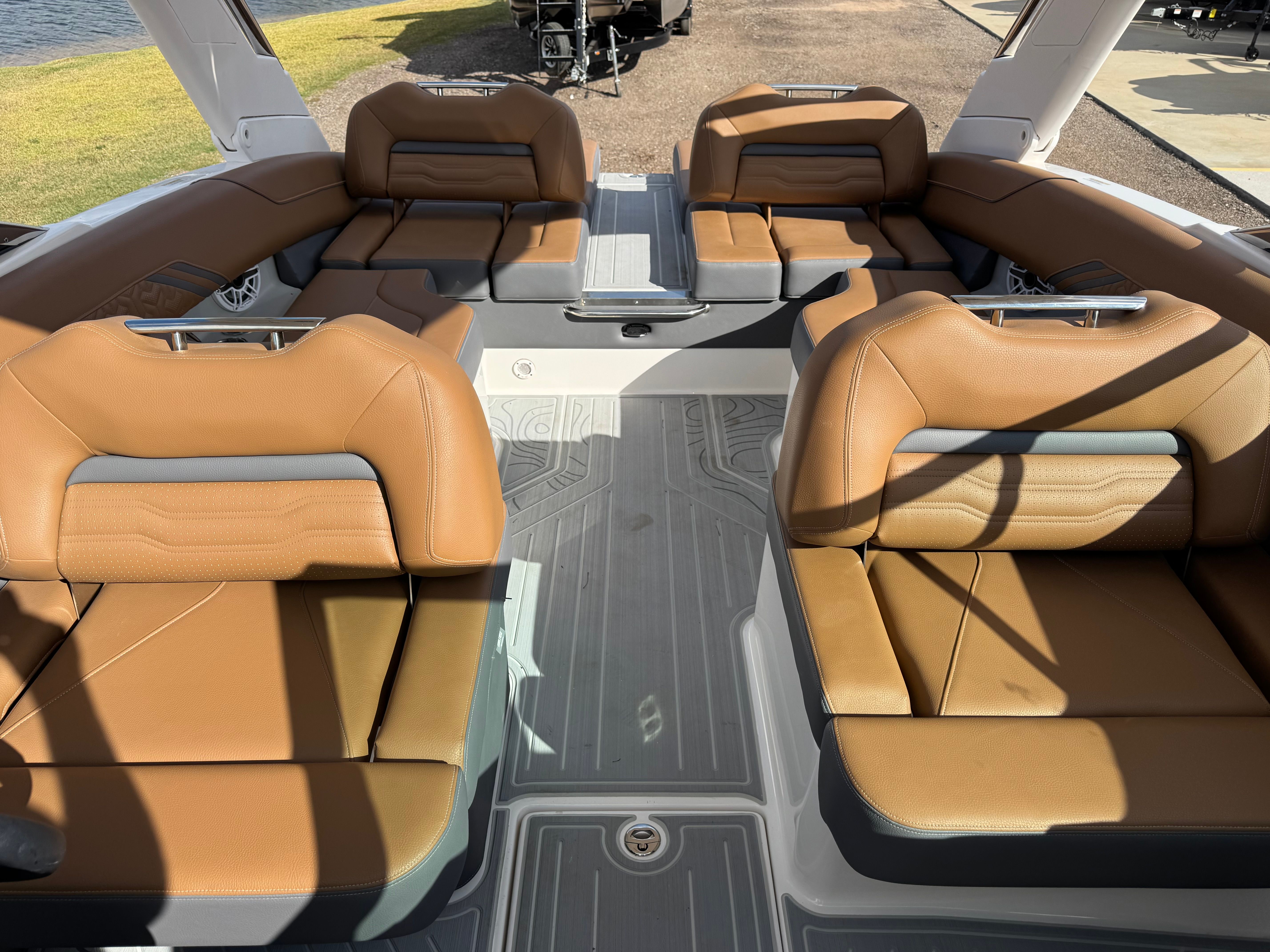The 2026 Regal LS4 Surf is loaded with special features that enhance both its functionality and style. The striking Graphite hull and boot stripe, paired with the Tahiti Beach White bottom, create a sophisticated and modern look that is sure to impress. Inside, the upgraded interior colors provide a luxurious and inviting atmosphere for you and your guests.For those who love spending time in and around the water, the Swim Platform Cove and SeaDek Cockpit Sole offer comfort and safety, making it easy to transition from swimming to relaxing onboard. The SeaDek Swim Platform adds an extra layer of convenience and style, ensuring every moment spent on the water is enjoyable.The LS4 Surf is also equipped with Digital Switching, allowing you to control various onboard systems with ease and precision. Intelligent Battery Management ensures that your boat’s power systems are always operating efficiently, giving you peace of mind during long days on the water. The included Travel Storage Cover helps protect your investment, keeping your boat looking pristine season after season.