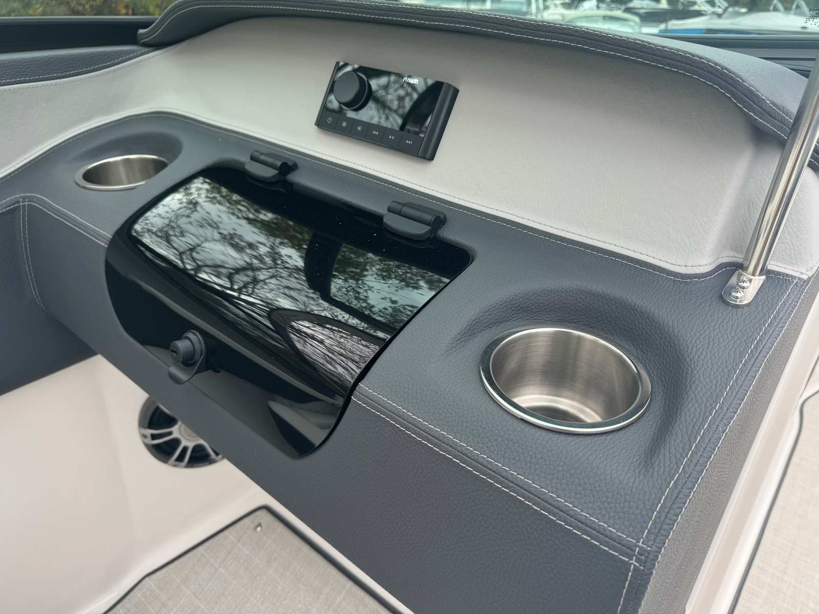 Practicality meets luxury in the Regal LS4. The dual battery switch system ensures you always have reliable power, making it easy to run your electronics and entertainment systems without worry. The travel storage cover protects your investment from the elements, while the durable black canvas adds an extra layer of security and style.Docking and maneuvering are simplified thanks to the boat’s responsive handling and advanced propulsion system. The seagrass mat in the cockpit not only adds comfort but also makes cleaning up after a day on the water quick and easy. With ample storage throughout the boat, you’ll have plenty of space for gear, snacks, and water toys, keeping the deck clutter-free and ready for fun.Fuel efficiency is another highlight, allowing you to spend more time enjoying the water and less time at the pump. The LS4’s smart design ensures that every outing is as convenient as it is enjoyable, making it a practical choice for both new and experienced boaters.