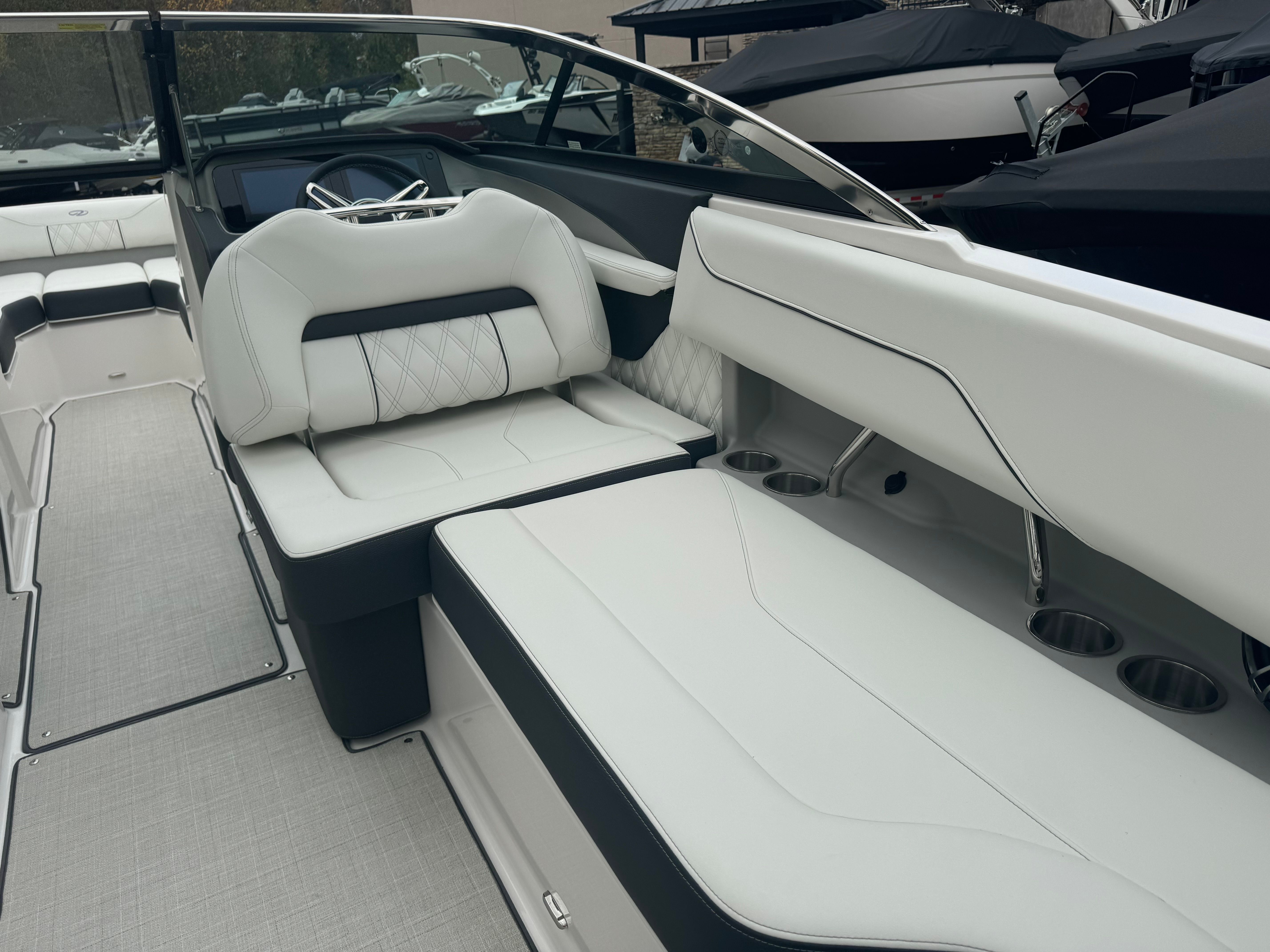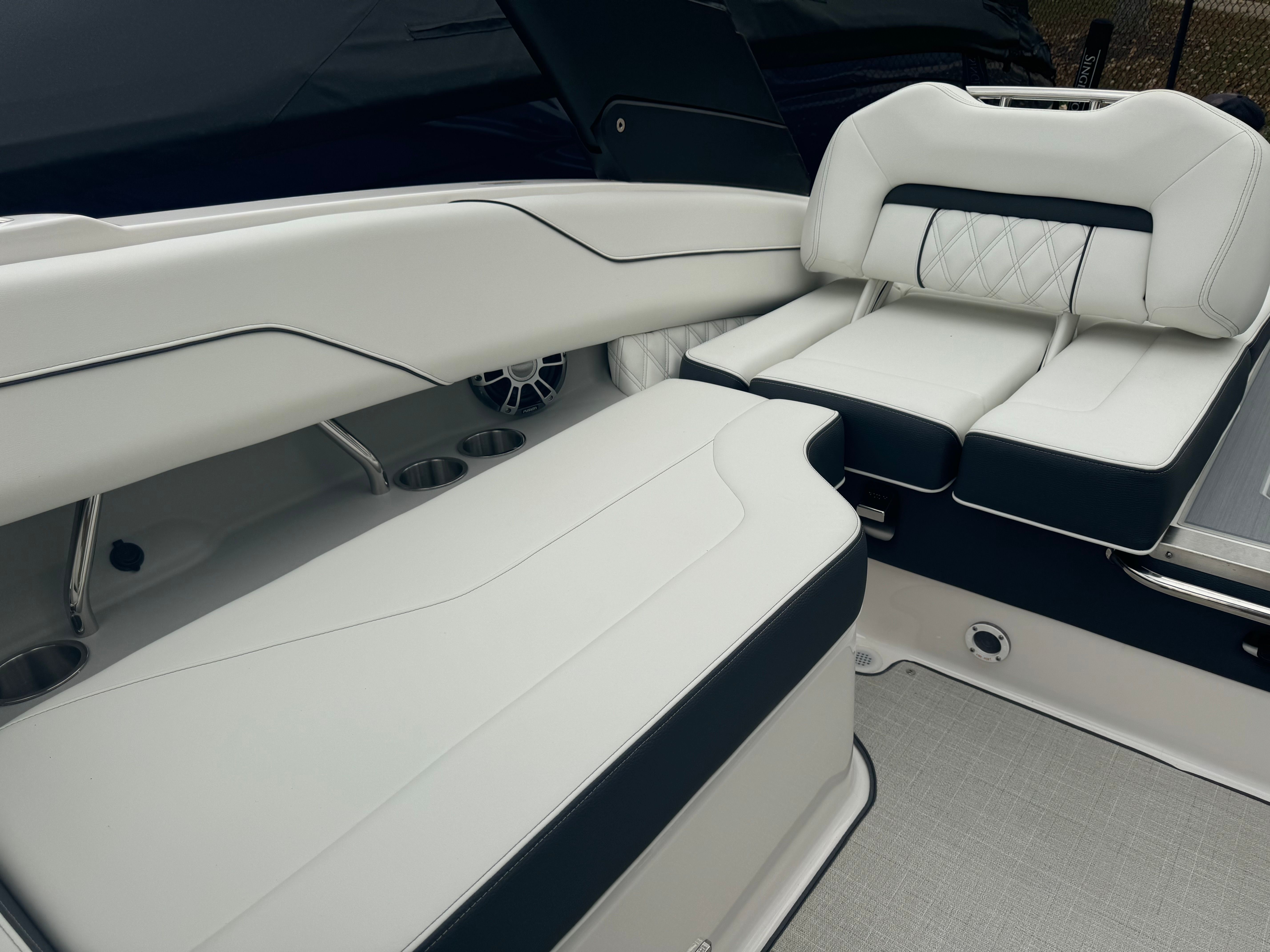 The 2025 Regal LS4 is loaded with features designed to enhance your time on the water. The hull is finished in a striking Tahiti Beach White, complemented by a matching bootstripe and a bold black bottom color, creating a sophisticated and modern look. The Titanium accents add an extra touch of elegance, ensuring your boat stands out wherever you go.For protection and convenience, the LS4 comes with a travel storage cover in black, as well as a black canvas that adds both style and durability. The cockpit is outfitted with a luxurious seagrass mat, providing a comfortable and slip-resistant surface for you and your guests. The dual battery switch with tray and cables ensures reliable power management, giving you peace of mind during extended outings.Music and ambiance are elevated with the Stereo Performance & Lighting Package, transforming your boat into the ultimate entertainment hub. Whether you’re hosting a sunset cruise or a lively day on the water, the premium sound system and customizable lighting set the perfect mood.