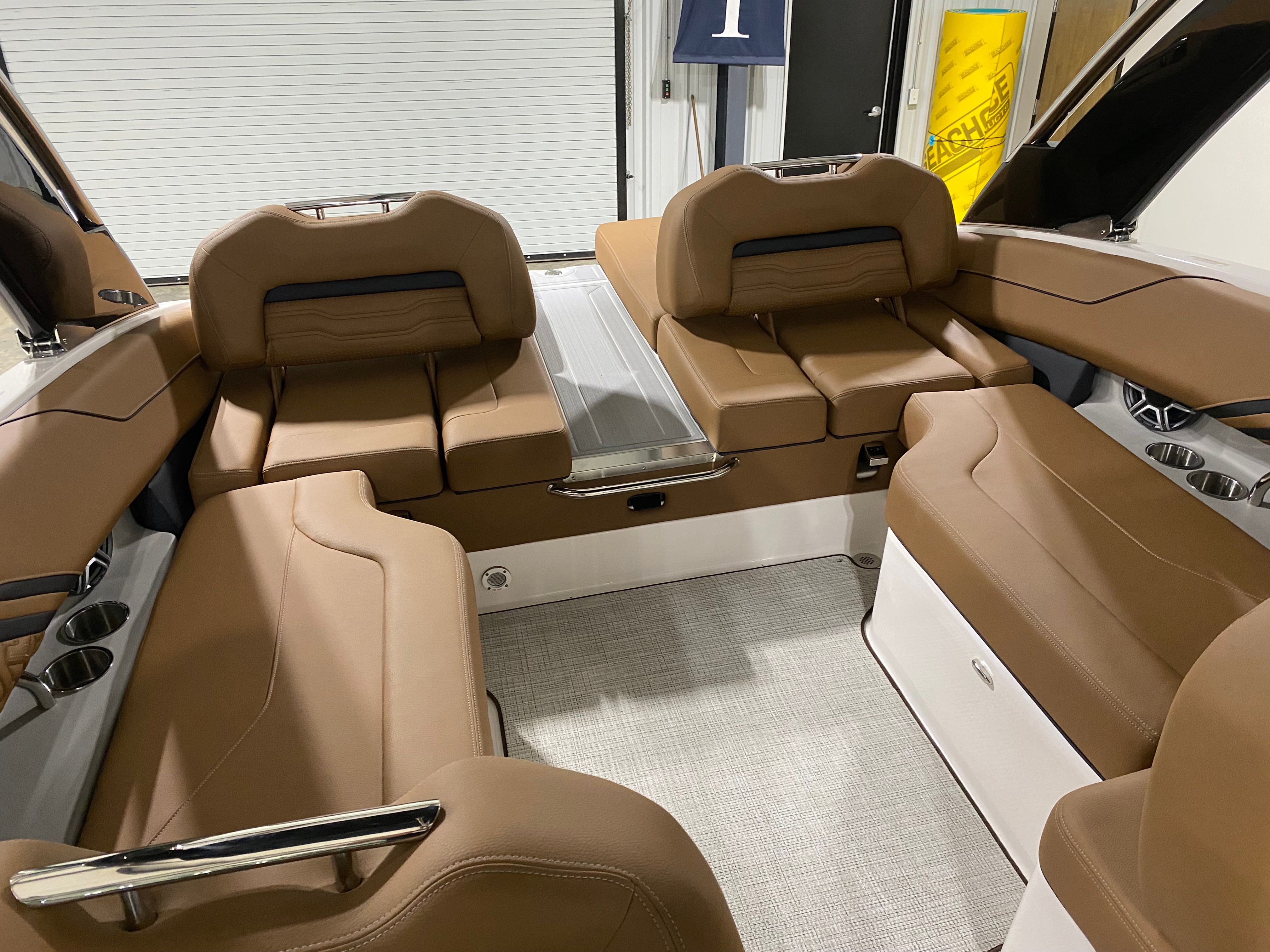 Step aboard the 2026 Regal LS4 and discover a world of thoughtful design and luxurious amenities. The boat’s exterior is a showcase of modern elegance, featuring a Graphite hull color, Black bootstripe, and Graphite bottom color that exude sophistication and style. The white swim platform offers a convenient and inviting space for swimming, sunbathing, or launching water toys.Inside, the LS4 boasts a meticulously crafted interior with premium Saddle Brown - Chil upholstery in Zones 1, 2, and 3, providing plush comfort and a warm, inviting atmosphere. Zones 4 and 5 feature sleek Black - Chil accents, while Zone 6 is finished in classic Black, creating a harmonious blend of colors and textures that elevate the onboard experience. Every detail has been carefully considered to ensure maximum comfort and style for you and your guests.