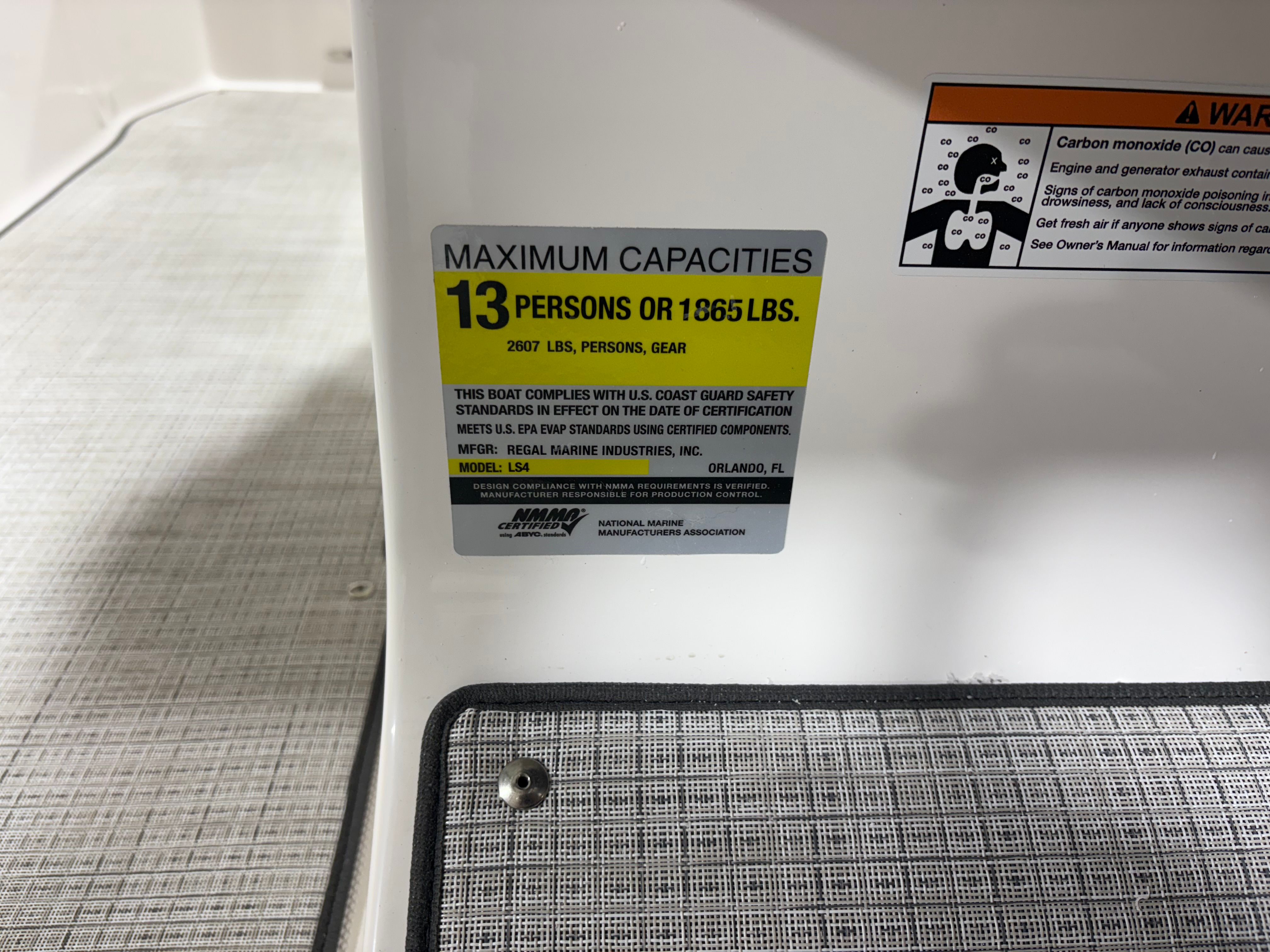 The Regal LS4 is designed with practicality in mind, making ownership as enjoyable as your time on the water. The travel storage cover protects your boat from the elements, preserving its beauty and value. The dual battery switch system provides reliable power management, so you can confidently run your electronics and accessories without worry. Docking is made easier and safer with integrated docking lights, allowing for smooth arrivals even after sunset.The thoughtful layout offers ample storage for your gear, ensuring everything you need for a day on the water is within easy reach. The efficient single-engine setup not only delivers impressive performance but also helps optimize fuel consumption, making your adventures more economical and environmentally friendly.