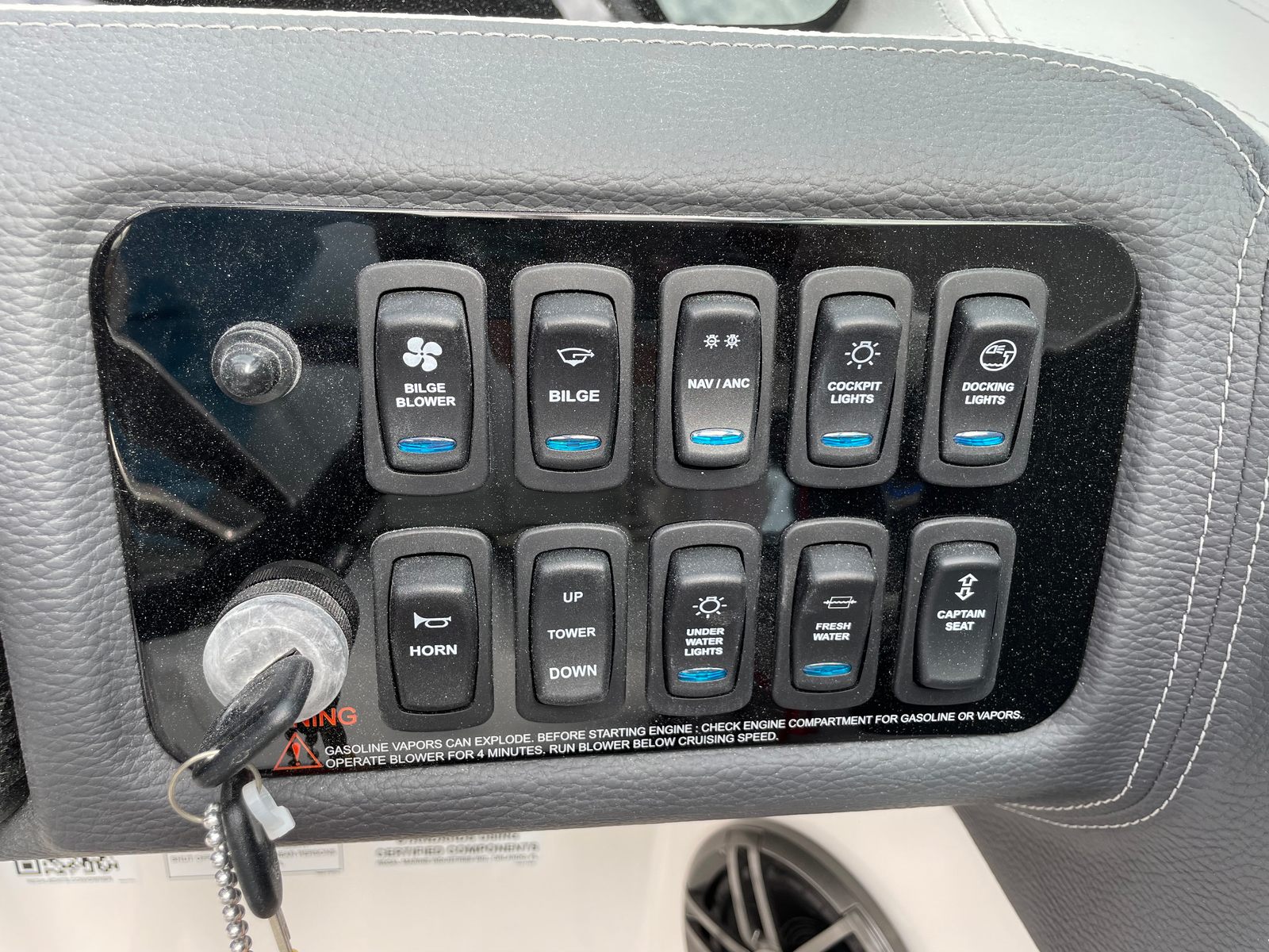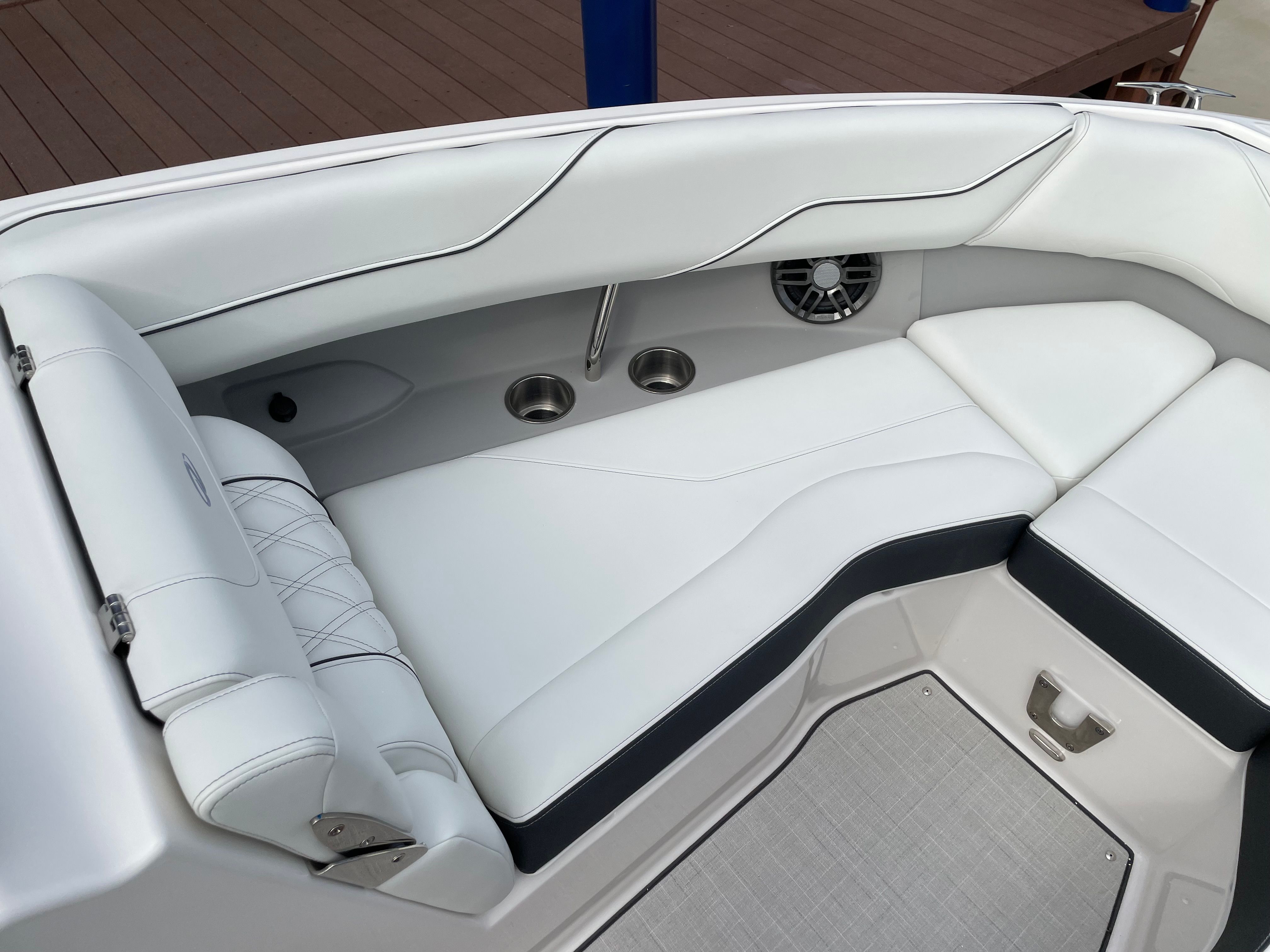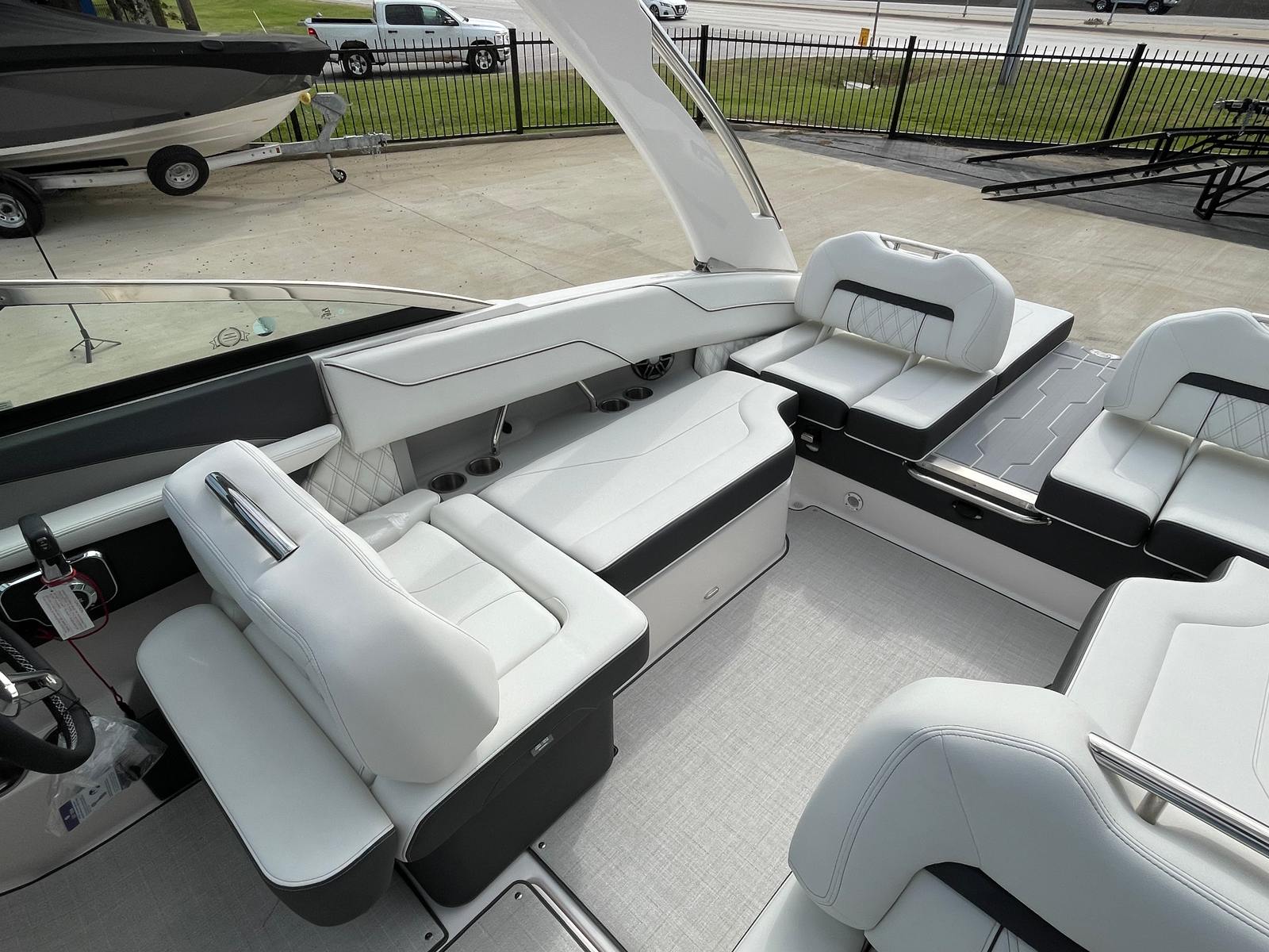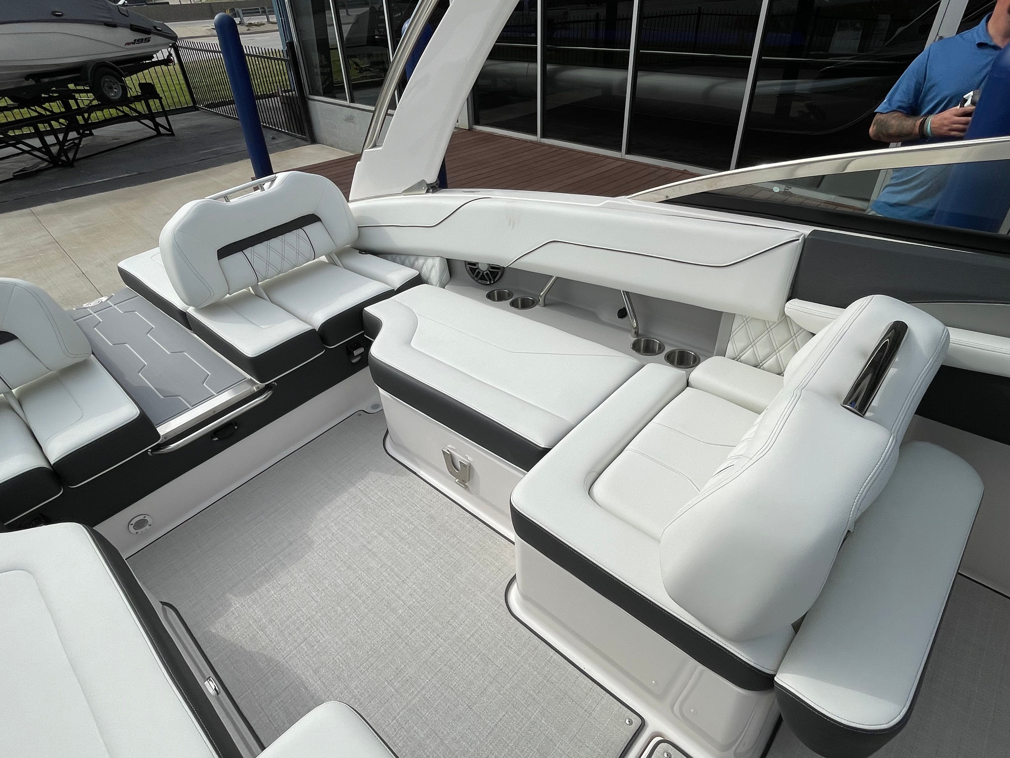 Under the hood, the Regal LS4 is powered by a robust single engine delivering an impressive 350 horsepower. This powerful setup ensures exhilarating acceleration, smooth cruising, and responsive handling, whether you’re slicing through waves or enjoying a leisurely ride. The advanced engineering behind the LS4’s propulsion system guarantees a thrilling yet controlled boating experience, making it ideal for water sports, day trips, or simply soaking up the sun. The dual battery switch with tray and cables, along with a battery charger, ensures you have reliable power for all your adventures, giving you peace of mind on every outing.