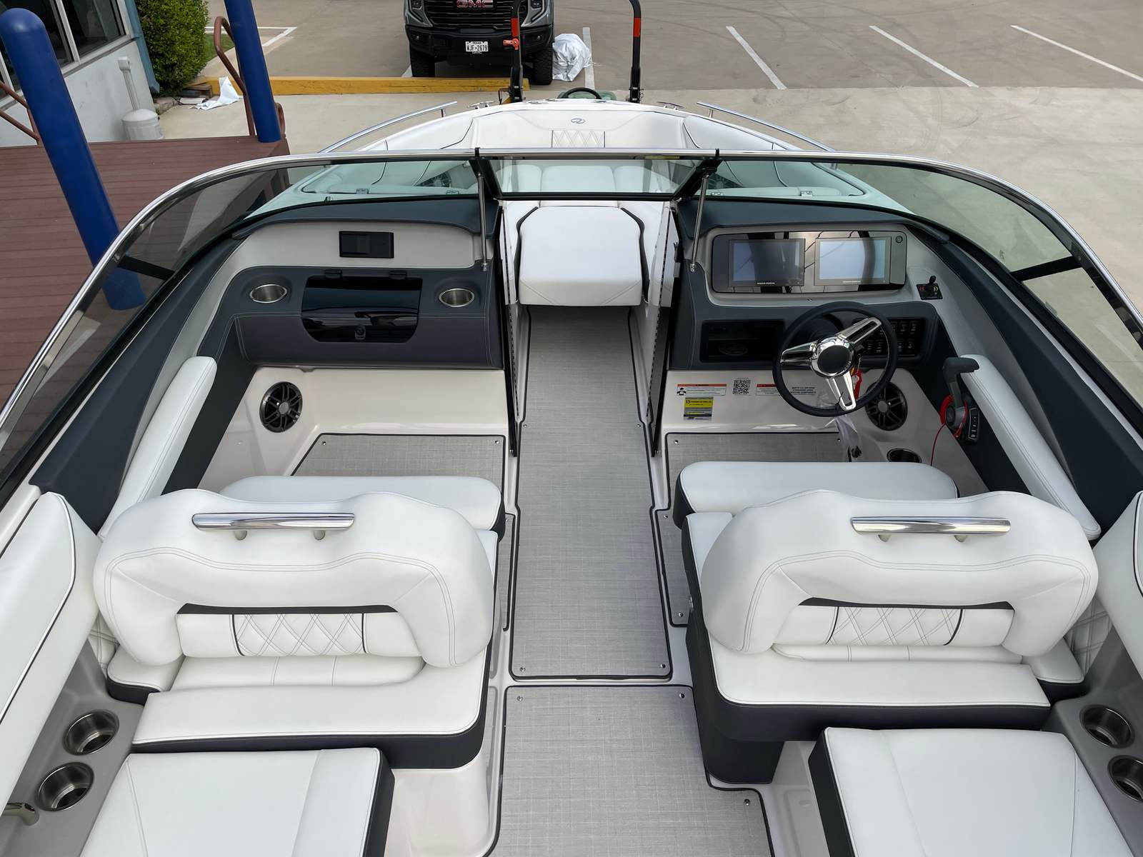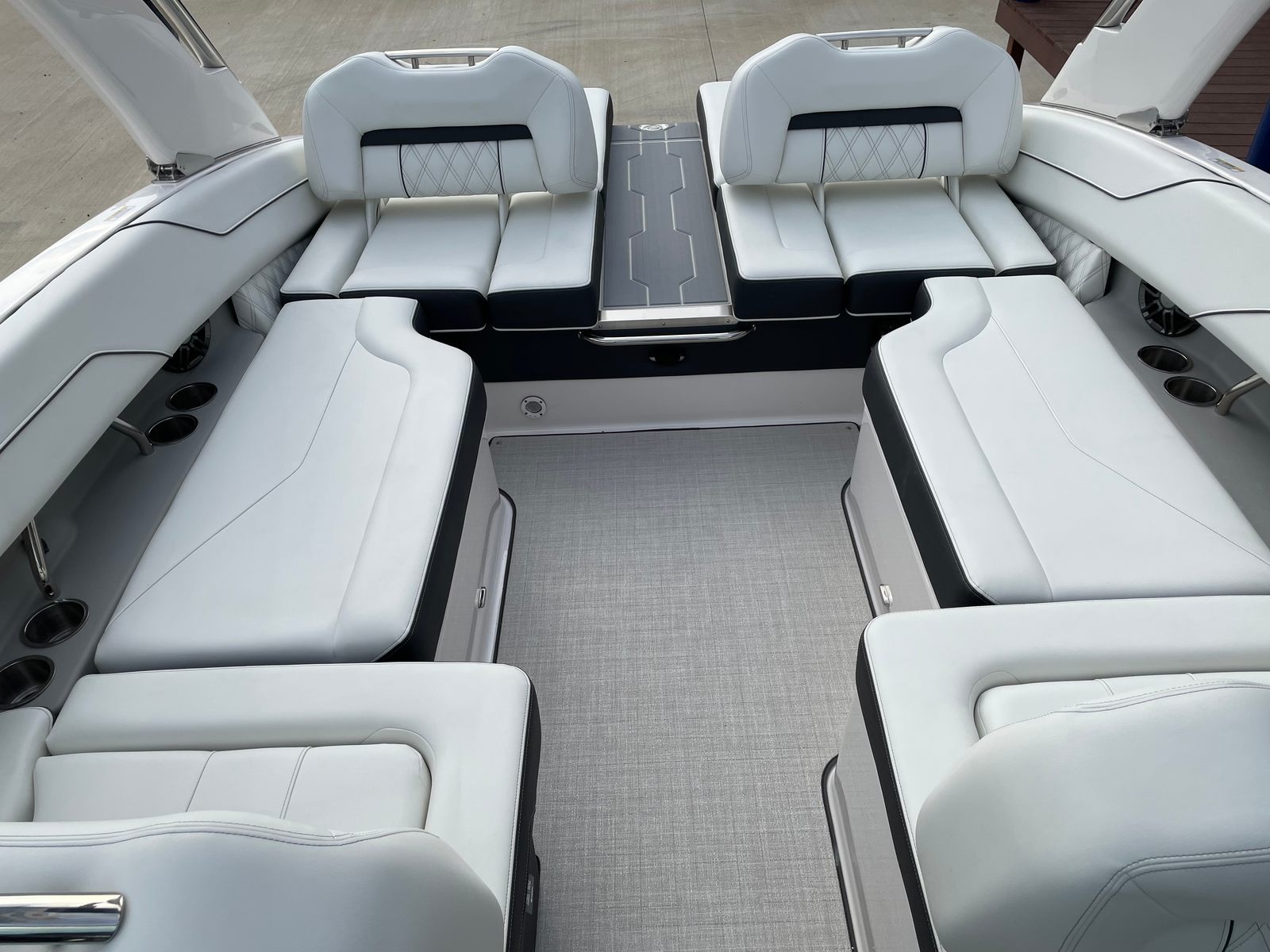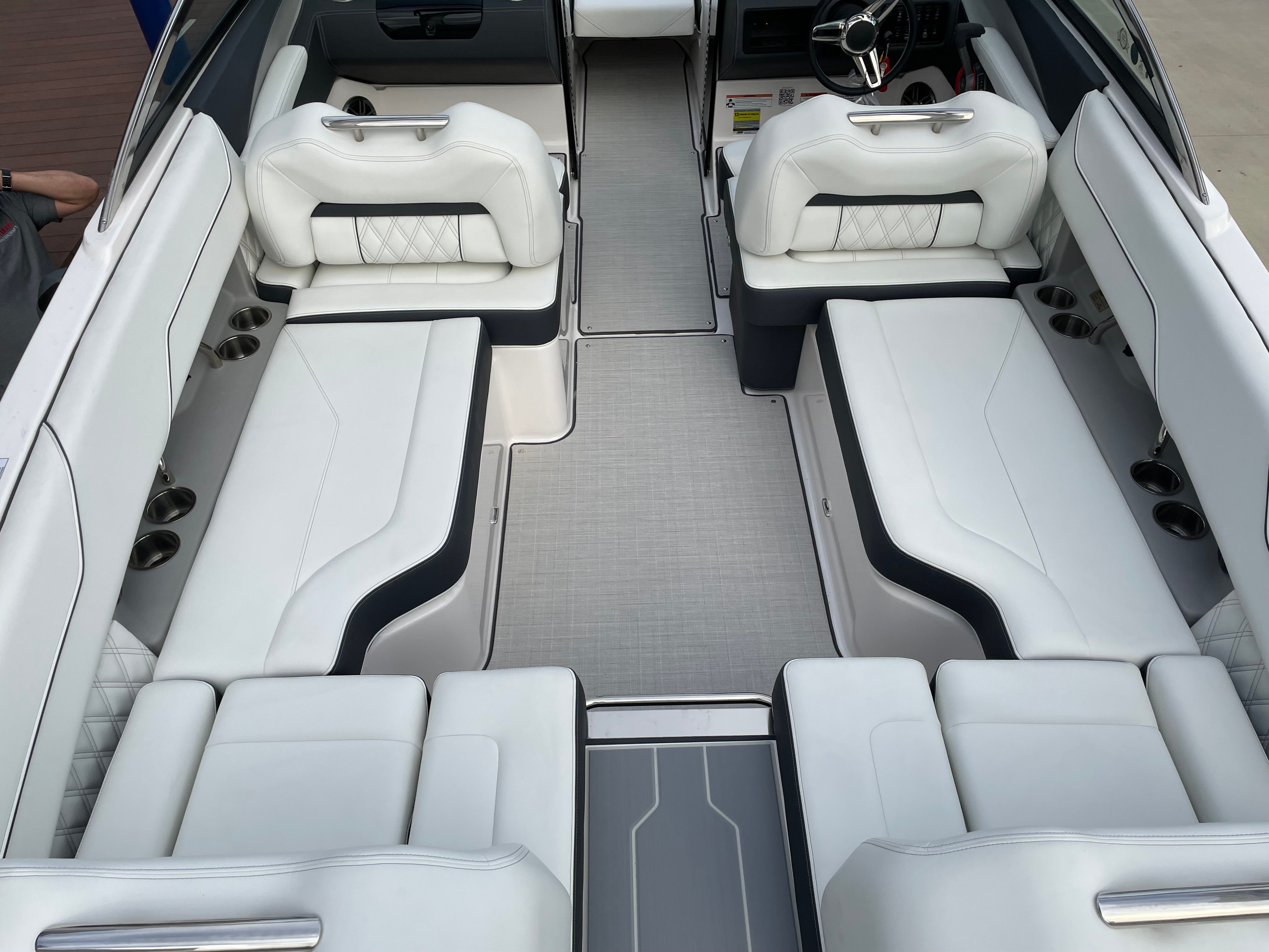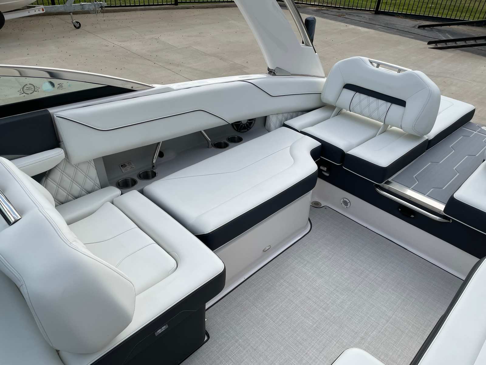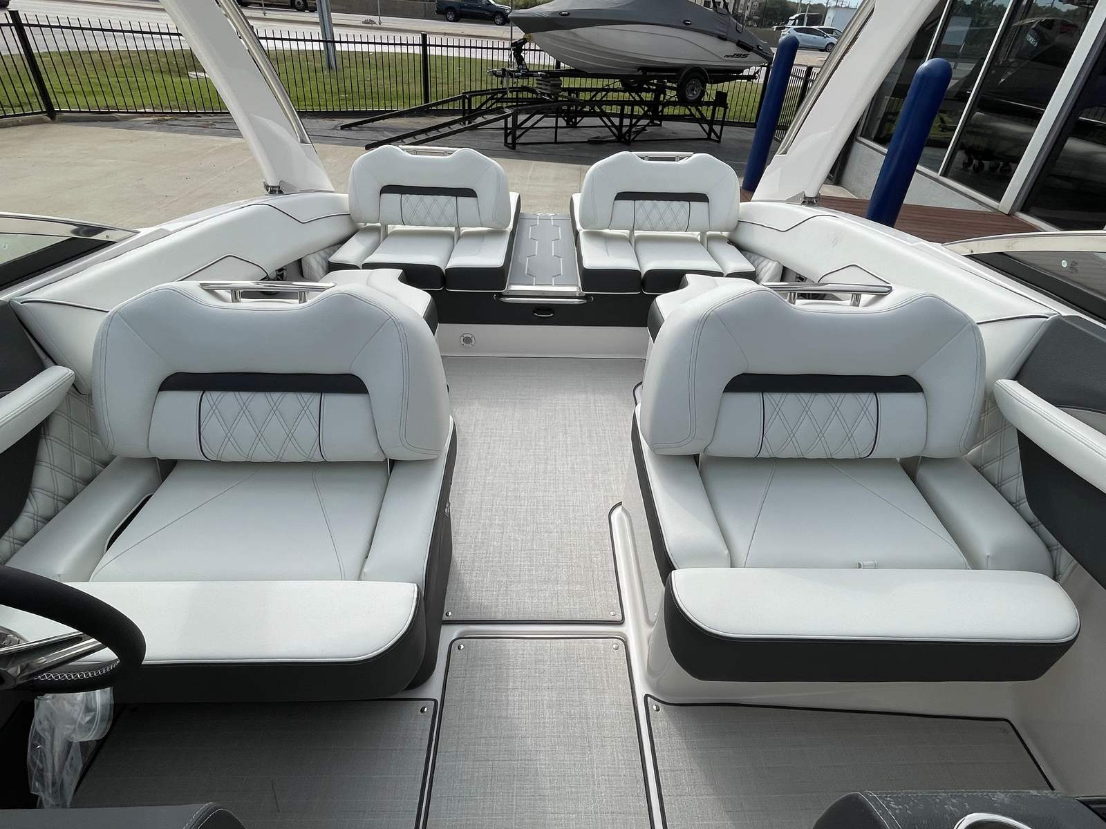 The 2026 Regal LS4 is loaded with features designed to enhance your time on the water. The hull’s Steel Gray color, paired with the Mediterranean Blue bootstripe and Tahiti Beach White bottom, creates a visually stunning profile that stands out in any marina. The Titanium interior offers a plush, inviting space, while the Mediterranean Blue canvas adds a touch of nautical flair and protection from the elements.For added convenience and protection, the LS4 comes equipped with a black travel storage cover, ensuring your boat stays in top condition when not in use. The cockpit seagrass mat provides a soft, comfortable surface underfoot, perfect for barefoot relaxation or entertaining guests. The SeaDek swim platform offers a safe, non-slip area for swimming, boarding, or lounging by the water’s edge. With the dual battery switch and battery charger, you can confidently power all your onboard electronics and accessories, making every trip seamless and enjoyable.