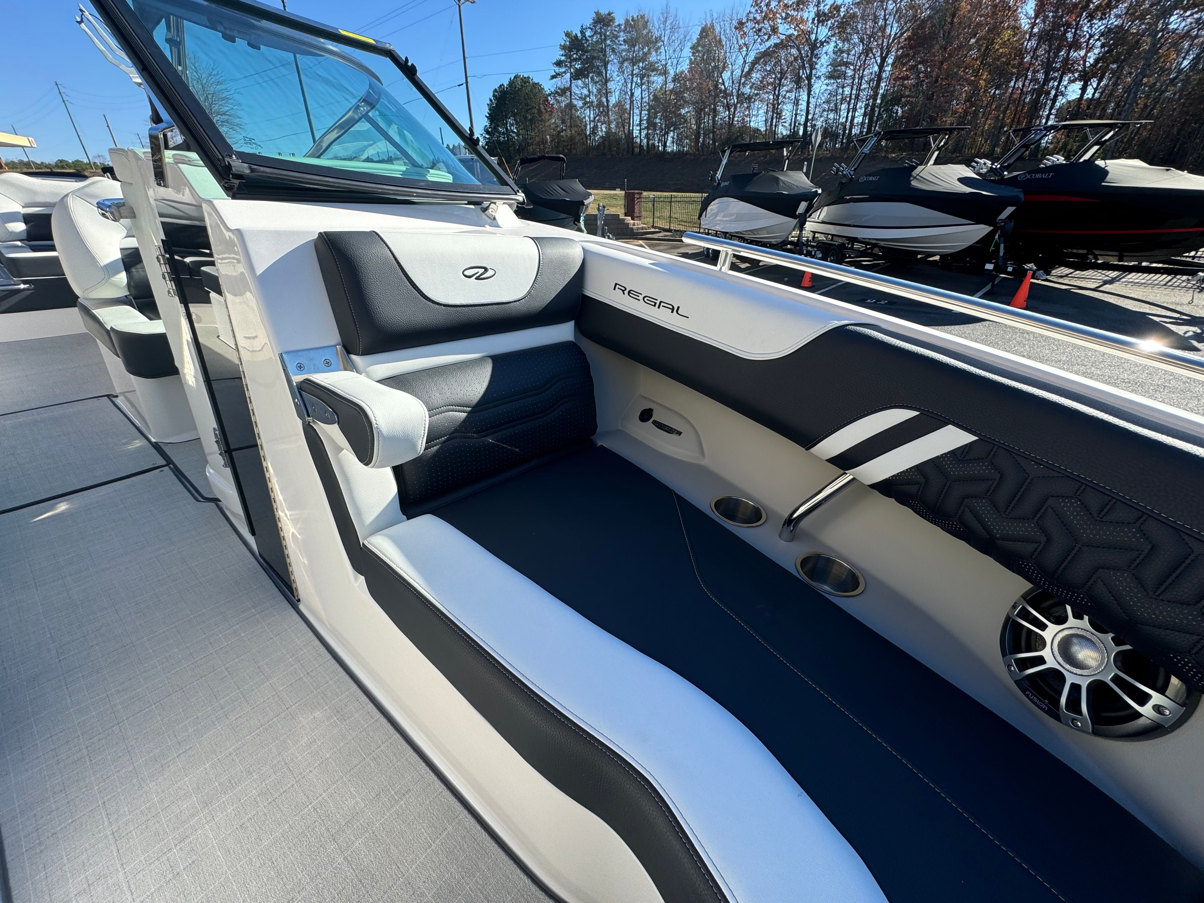 The 2025 Regal LS6 Surf stands out as a premier Bowrider, boasting a generous length of 26.33 feet. Its striking black hull and bottom color, complemented by the Zone 4- Pure White accent, create a bold and sophisticated presence on the water. Regal’s renowned craftsmanship is evident in every detail, from the sculpted lines to the spacious layout. This new Bowrider boat for sale is built to impress, offering ample room for relaxation, entertainment, and water sports. Whether you’re cruising with friends or hosting a family outing, the LS6 Surf delivers the perfect blend of style and substance.