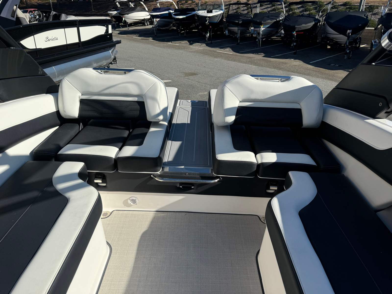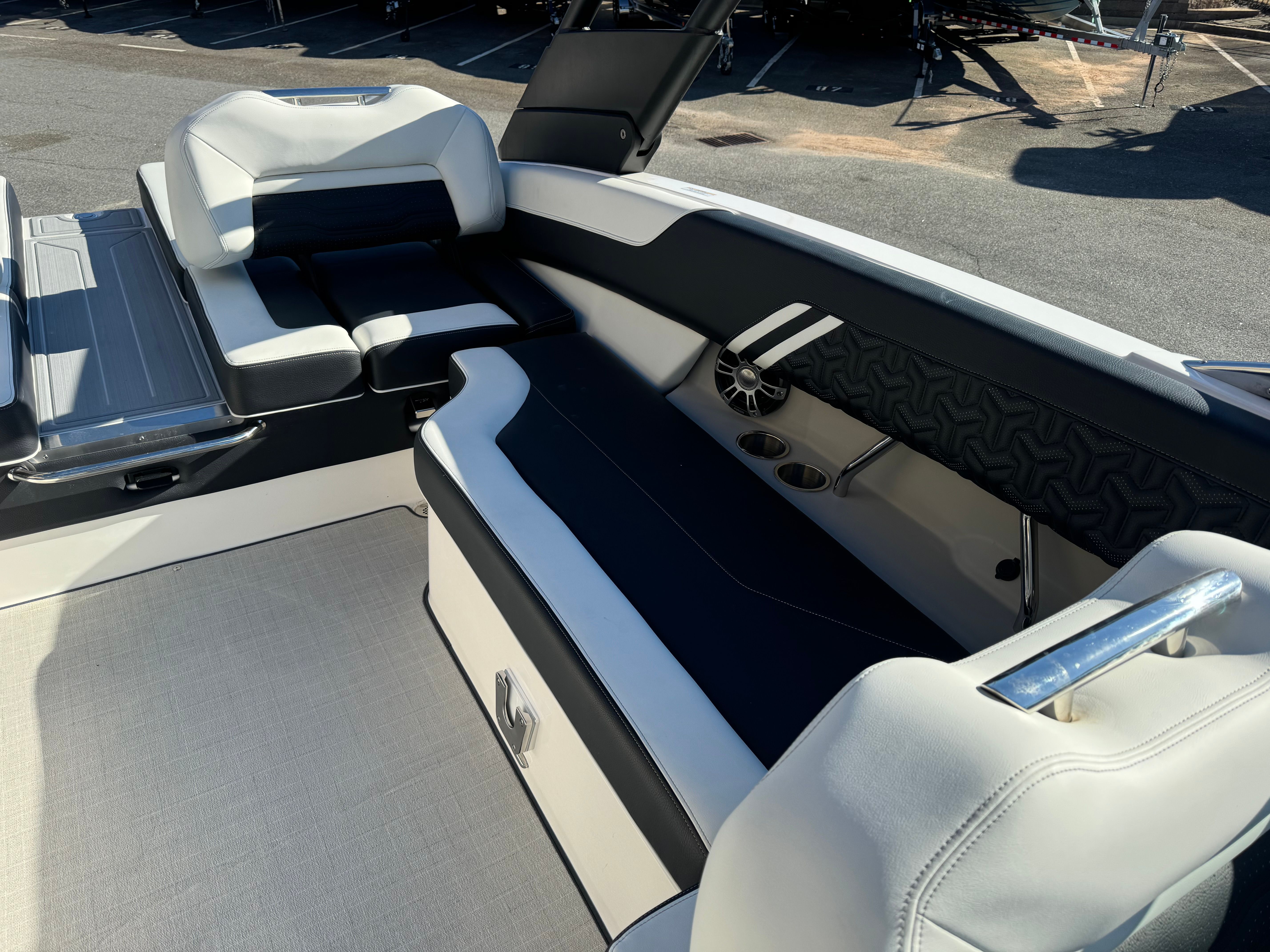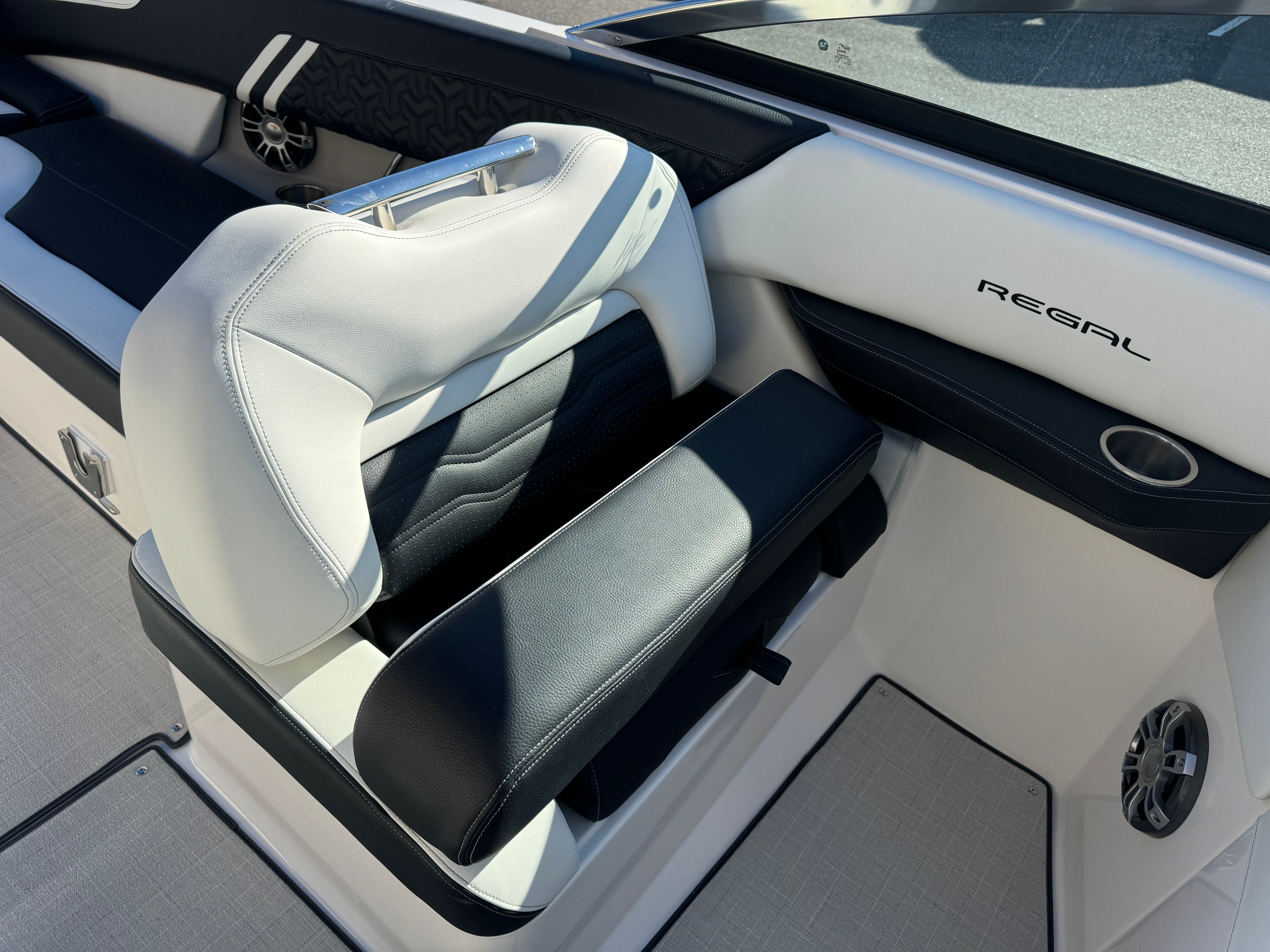 The Regal LS6 Surf is engineered for convenience as well as fun. Fender Clips simplify the docking process, allowing you to secure your boat quickly and confidently. Docking Lights enhance safety during low-light conditions, making evening outings worry-free. The Bow Walk-Thru Doors offer easy access for loading gear or welcoming guests, while the cockpit table provides a versatile space for dining, games, or relaxation. The forward-drive engine technology contributes to fuel efficiency and smooth handling, making every trip enjoyable and cost-effective. Whether you’re storing water sports equipment, preparing for a day on the lake, or docking at your favorite marina, the LS6 Surf’s thoughtful features make ownership a pleasure.
