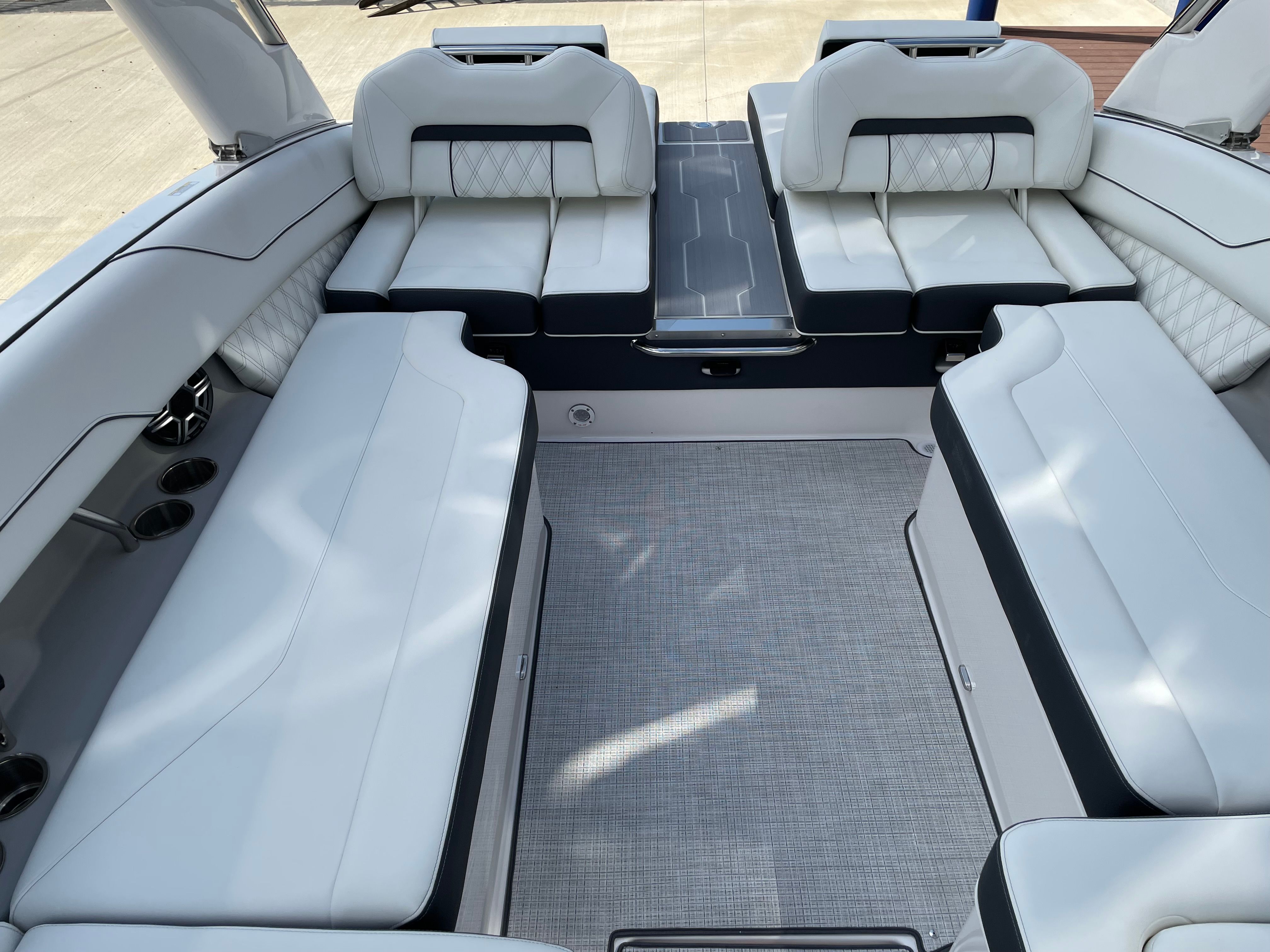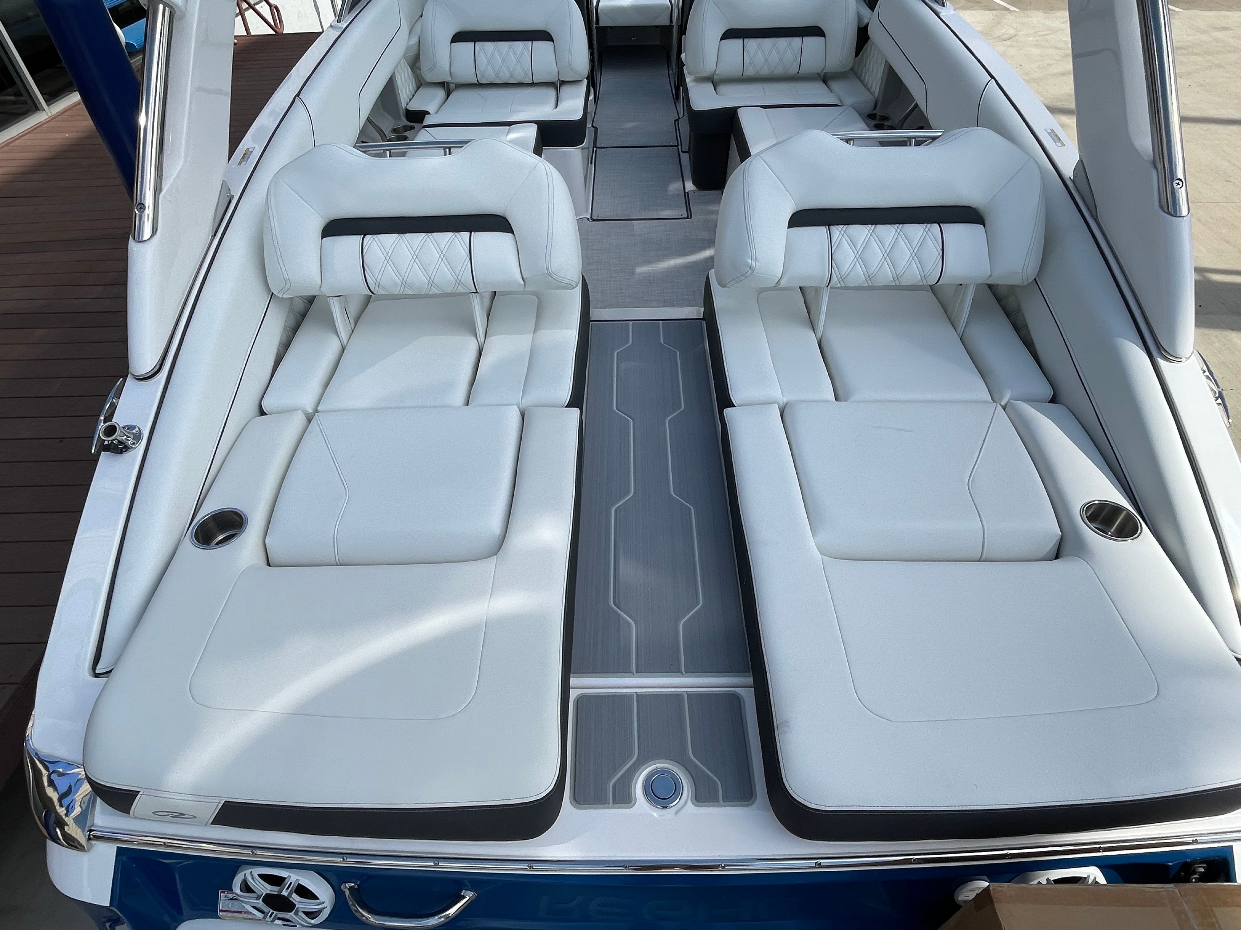 Owning the Regal LS6 Surf means embracing a lifestyle of fun, relaxation, and connection. The spacious bowrider layout offers plenty of room for family and friends, making it easy to host gatherings, celebrate special occasions, or simply enjoy a day on the water. The plush seating and thoughtful design details create an inviting atmosphere, while the advanced engine and hull design promise excitement for watersports lovers. The SeaDek swim platform and cockpit seagrass mat enhance comfort and safety, allowing everyone to move freely and enjoy every moment. With its eye-catching color scheme and premium finishes, the LS6 Surf is as stylish as it is functional, ensuring you make a statement wherever you go.