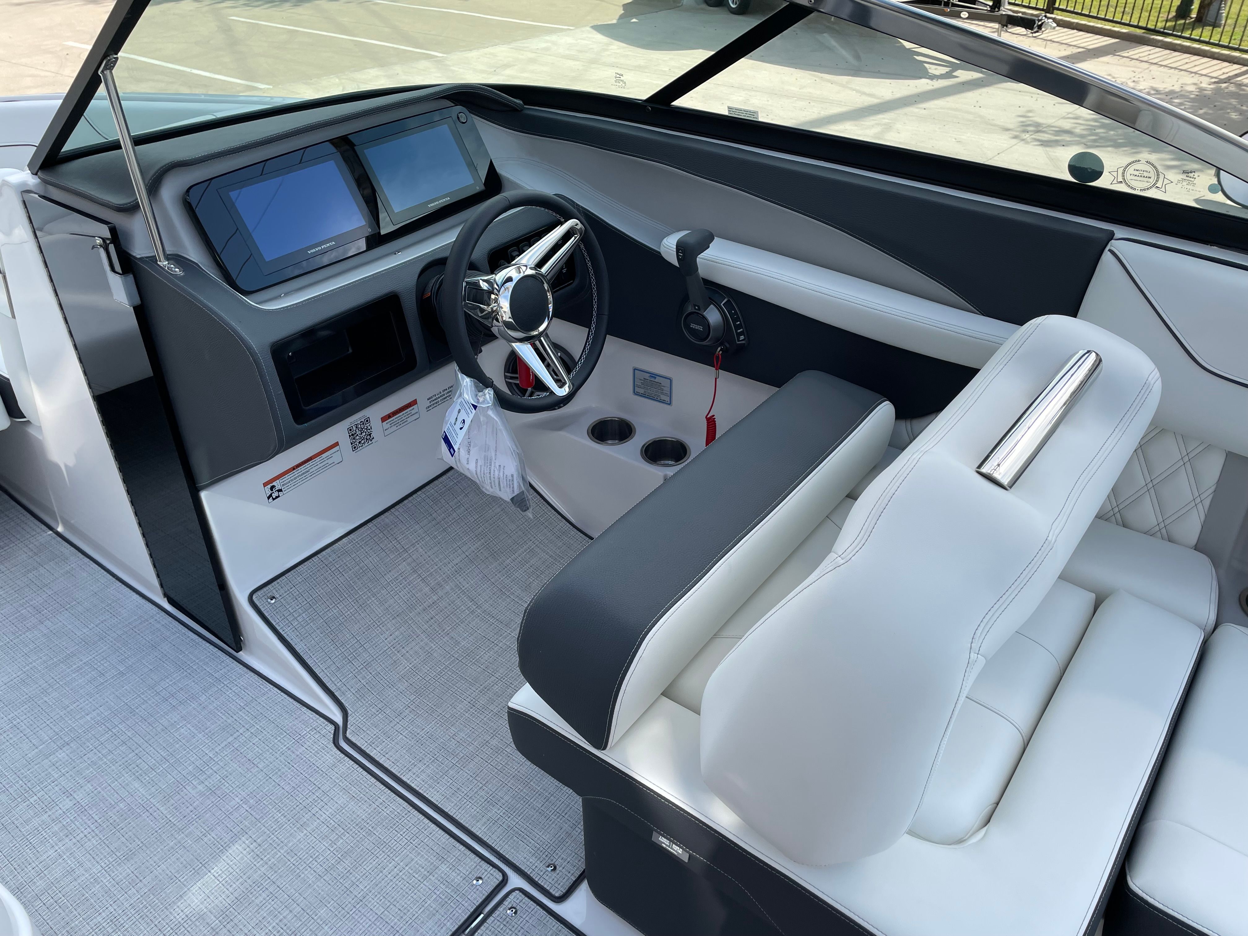 The 2026 Regal LS6 Surf is loaded with features designed to enhance your boating experience. The hull’s Tahiti Beach White color, paired with the Newport Blue bootstripe and Graphite bottom, ensures you will turn heads at every marina. The Titanium interior offers a luxurious and durable seating area, perfect for lounging or entertaining. A travel storage cover keeps your boat protected when not in use, while the cockpit seagrass mat adds a touch of comfort and style underfoot. The SeaDek swim platform provides a safe and comfortable area for swimmers and surfers to enter and exit the water with ease. For added convenience and peace of mind, the dual battery switch with tray and cables, along with a battery charger, ensures reliable power for all your adventures.