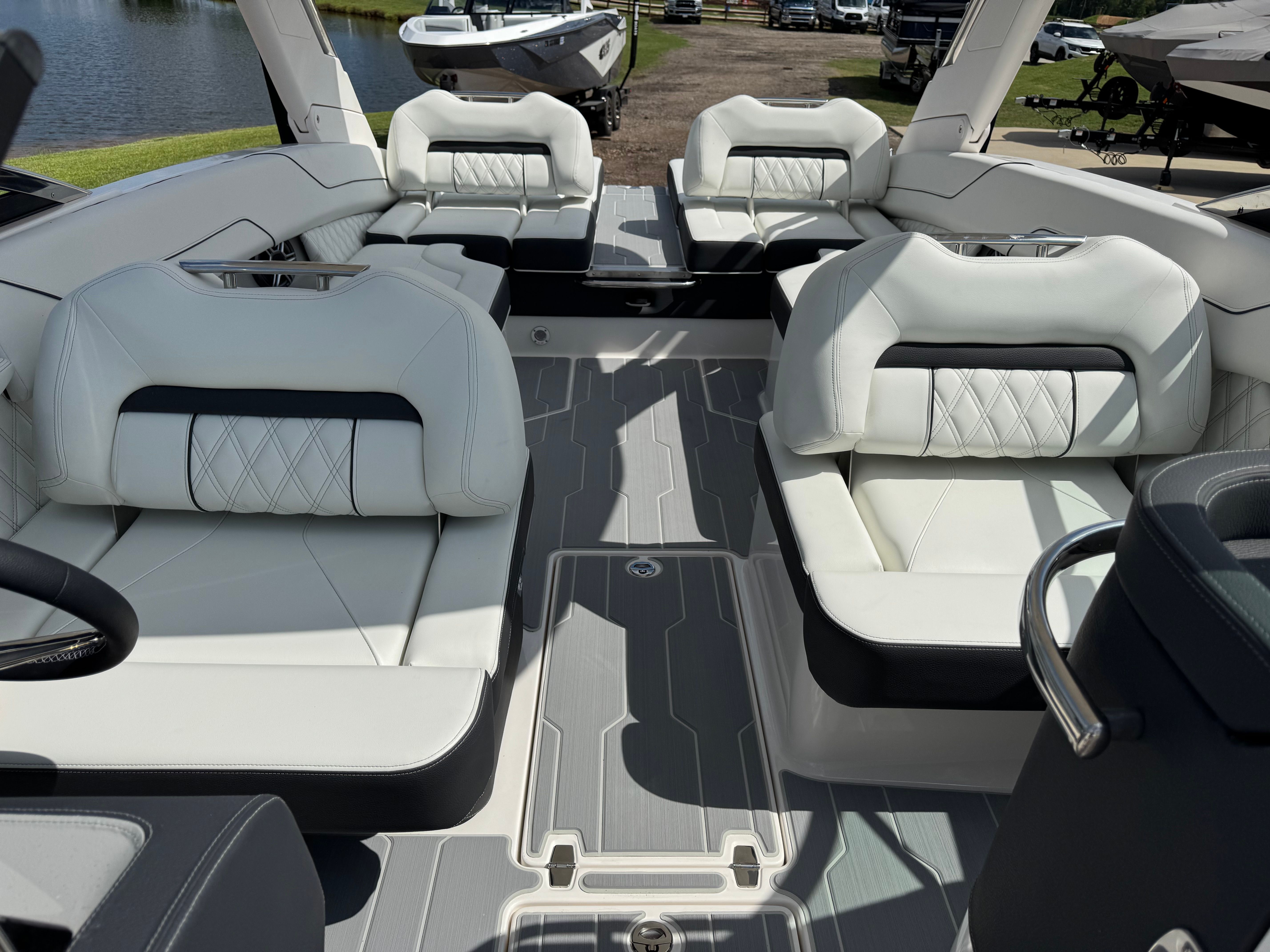 The 2026 Regal LS6 is designed with both aesthetics and functionality in mind. Its striking hull color in Tahiti Beach White is beautifully complemented by a Mediterranean Blue bottom, creating a sophisticated and eye-catching profile that will turn heads at any marina. Step aboard and you are greeted by a luxurious Titanium interior, offering a modern and inviting atmosphere for you and your guests.Enjoy the comfort and safety of the SeaDek cockpit sole and SeaDek swim platform, providing a soft, non-slip surface that enhances both style and practicality. The swim platform cover protects your boat’s rear deck, while the travel storage cover ensures your LS6 remains pristine during transport and storage. The dual battery switch with tray and cables, along with a battery charger, ensures you have reliable power for all your adventures, so you can focus on fun without worry.