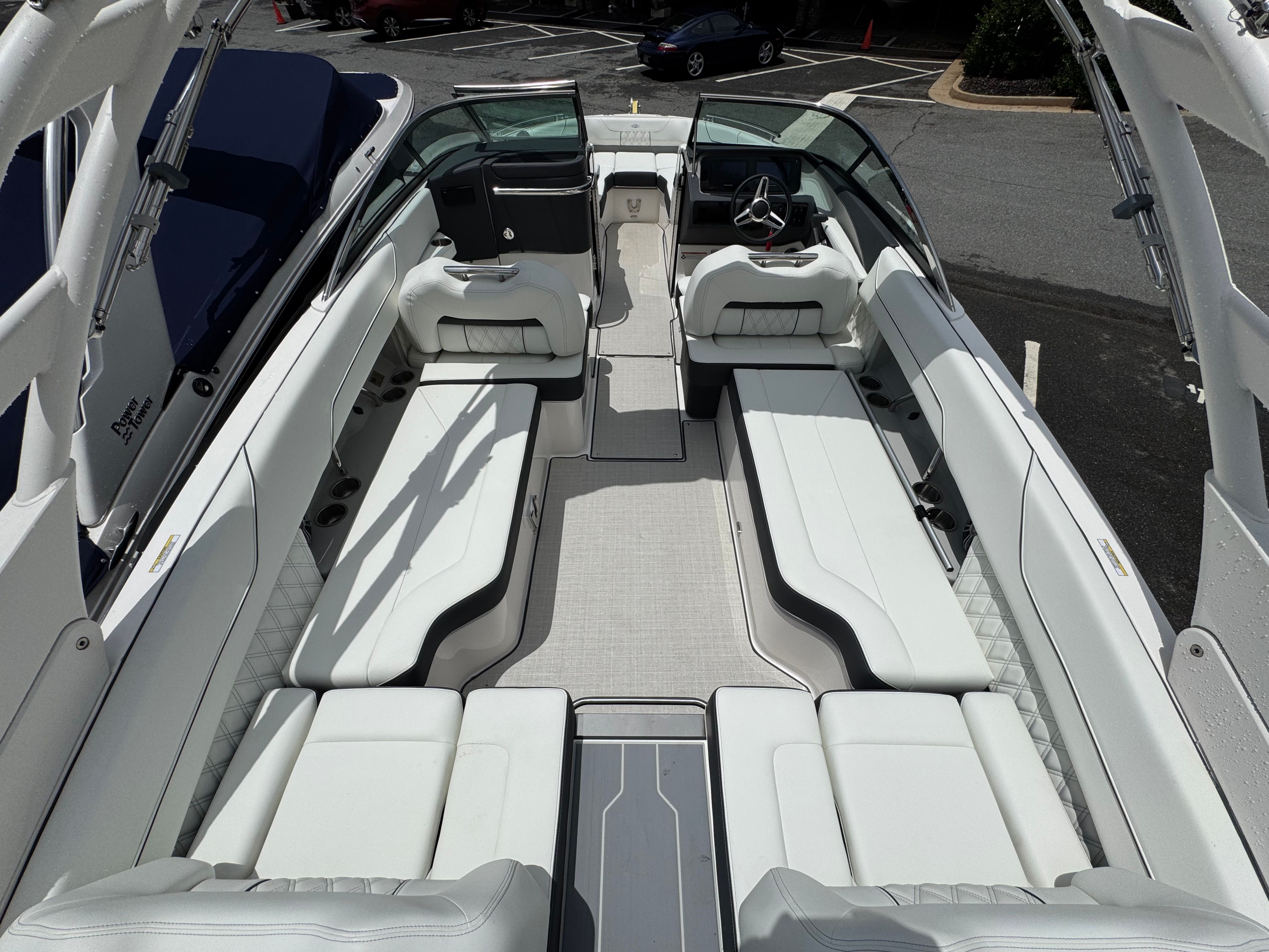 The Regal LS6 Bowrider is designed with real-world convenience in mind. The Fender Clips make docking quick and stress-free, allowing you to tie up with confidence at any marina or dock. The dual battery system ensures you have reliable power for all your electronics and accessories, even during extended outings. The pump-out toilet fittings add a layer of comfort for longer trips, making the LS6 ideal for all-day adventures.Storage solutions are integrated throughout the boat, so you can keep your space organized and clutter-free. The efficient hull design not only enhances performance but also contributes to fuel efficiency, helping you make the most of every outing. Whether you are an experienced boater or new to the water, the LS6’s intuitive controls and responsive handling make it easy to operate and enjoy.