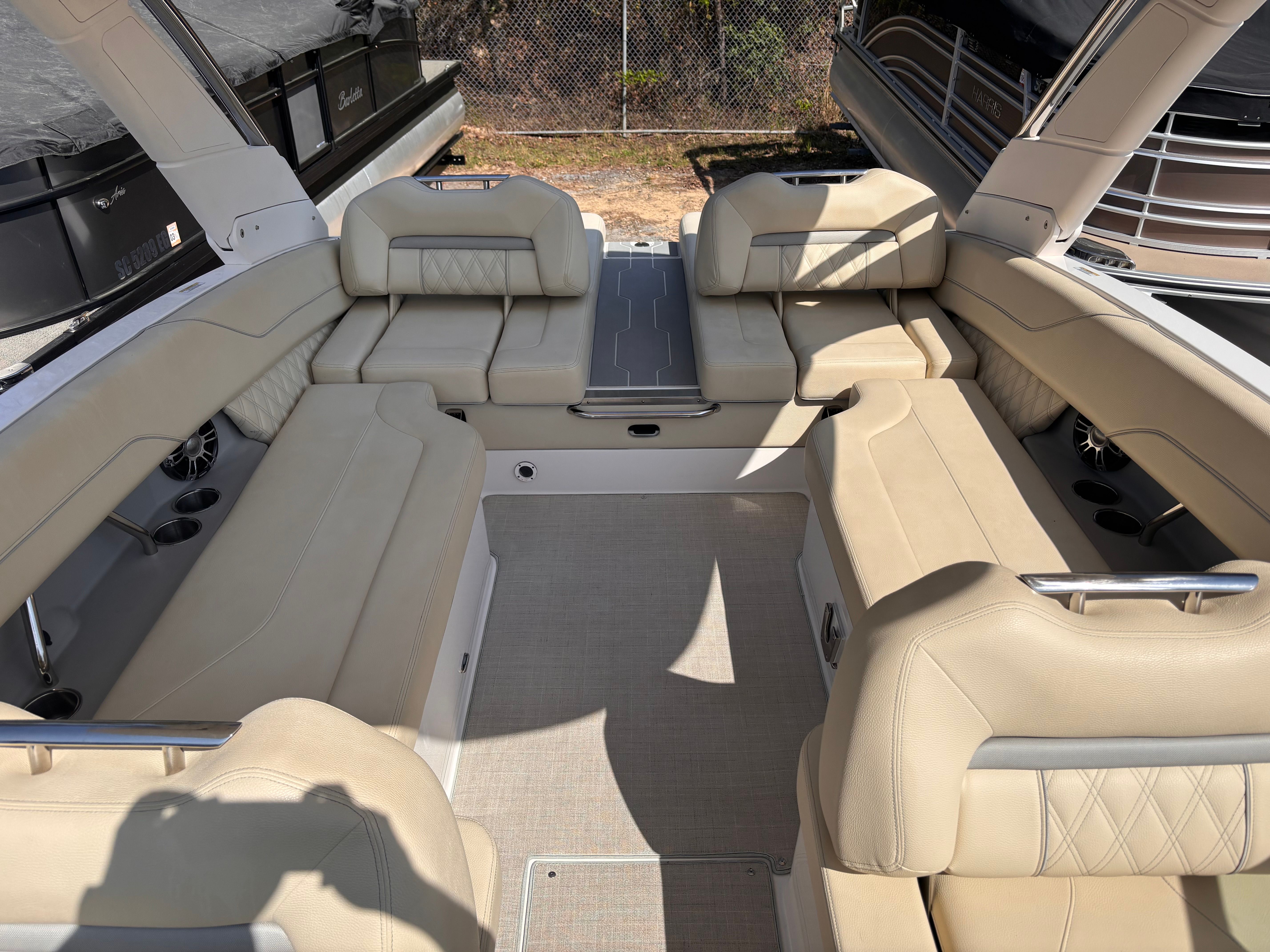 The 2021 Regal LS6 is a 26.33-foot bowrider that stands out in the world of luxury sport boats. With its sleek lines, modern design, and attention to detail, this Regal boat for sale is a testament to the brand’s commitment to quality and innovation. The LS6’s spacious layout and thoughtful features make it an ideal choice for those seeking a versatile and stylish vessel for a variety of on-water activities. As a used bowrider boat, this model has been well-maintained and has only 150 engine hours, ensuring plenty of adventures still await its next owner.