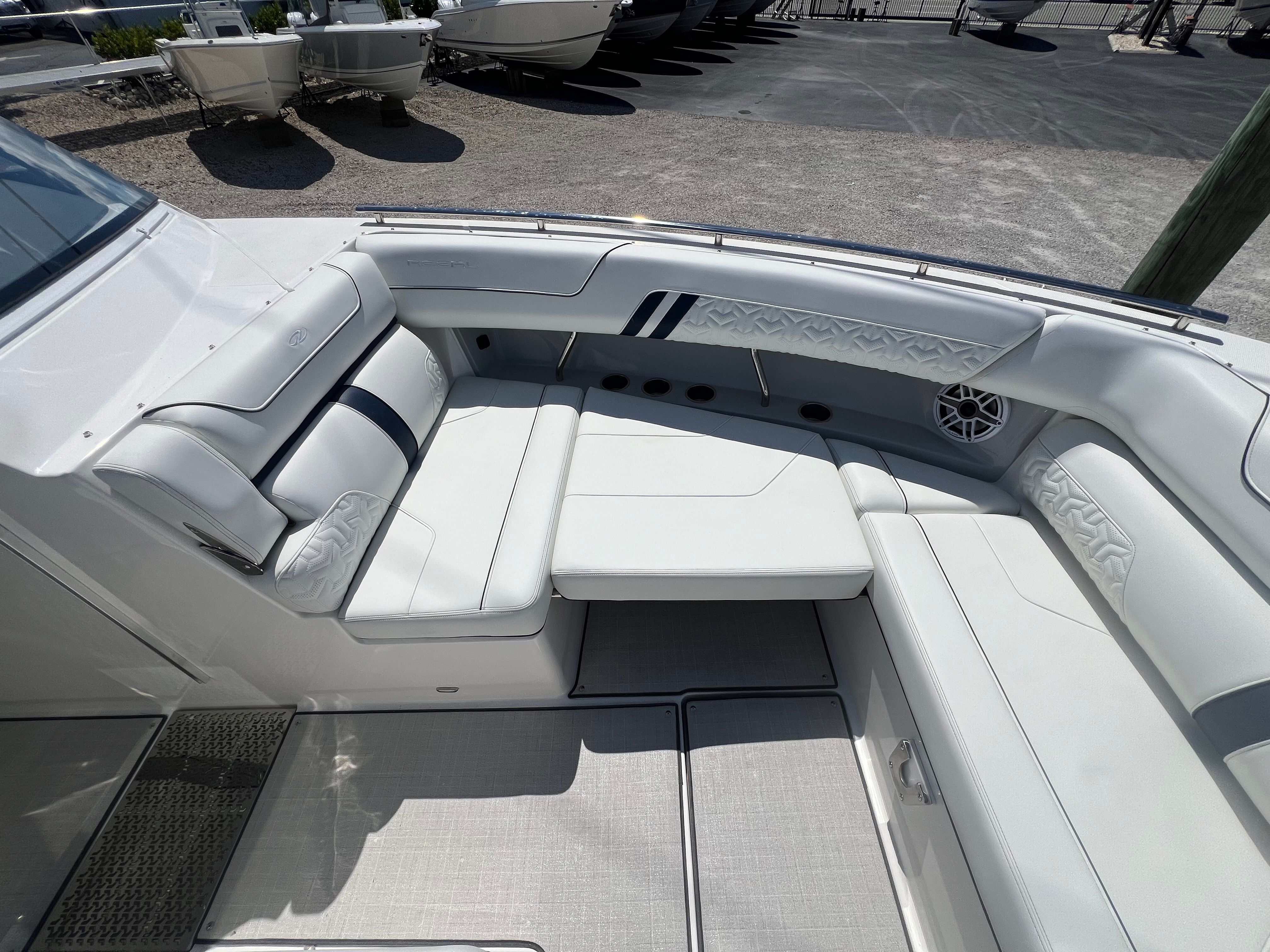 In summary, the 2025 Regal LX36 is a remarkable bowrider boat for sale that combines cutting-edge performance, luxurious comfort, and innovative features. With its powerful twin engines, stunning design, and a host of special amenities—including the Z2PWS Pure White finish, Palm Beach Enclosure, cockpit television, Seakeeper 2 Stabilization System, wireless windlass remote, Strato Wind countertops, fender clips, teak cockpit table, Mediterranean Blue accent, and Companion Garmin 8616—this Regal boat for sale is truly in a class of its own. If you are ready to elevate your boating experience and enjoy the ultimate in style, performance, and versatility, the Regal LX36 is the perfect choice. Contact your local dealer today to learn more about this extraordinary bowrider and start your next adventure on the water.