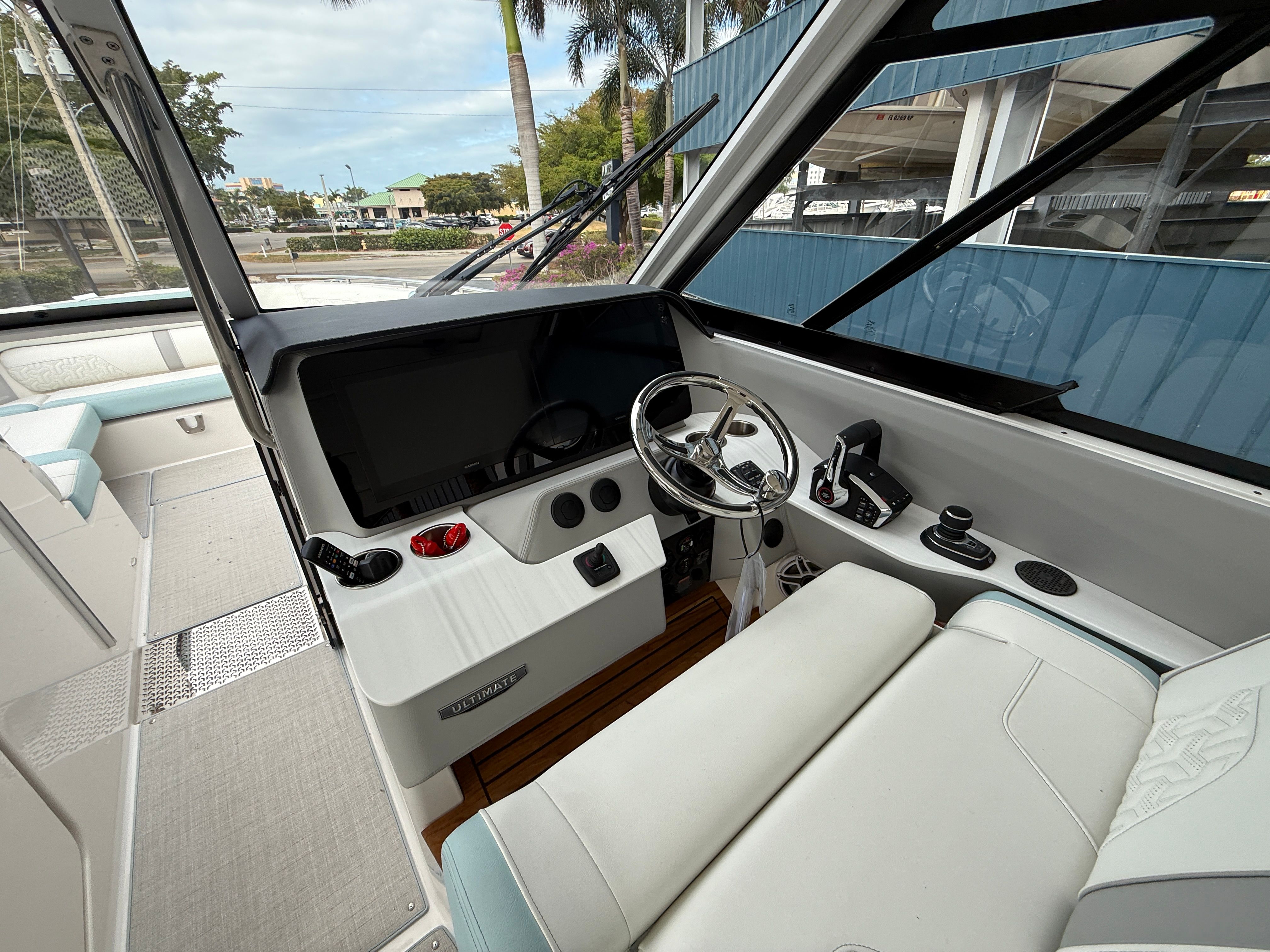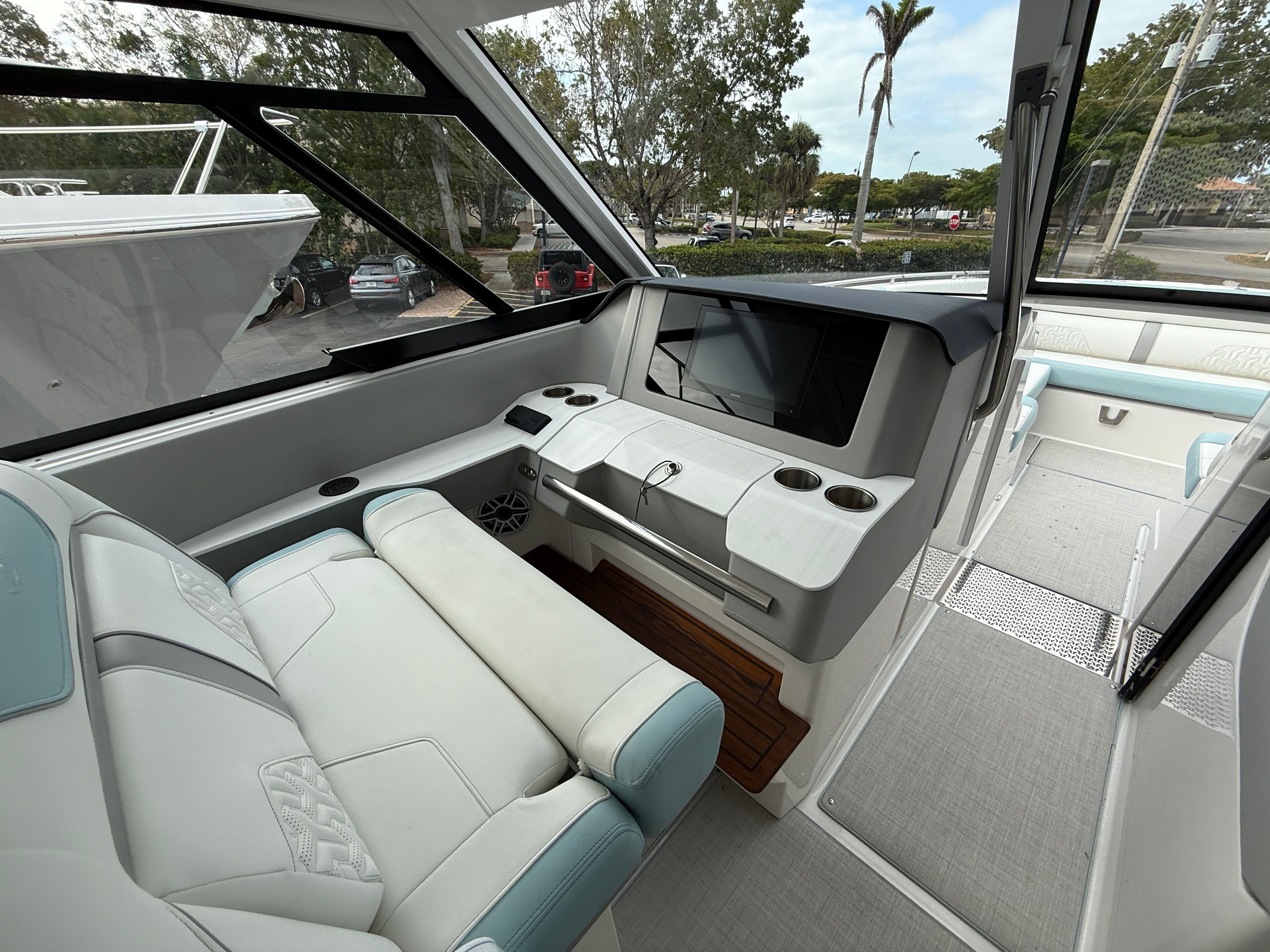 The 2025 Regal LX36 is packed with innovative features designed to enhance your boating experience. The quarter berth utility room offers versatile space for storage or relaxation, providing added convenience for longer trips or overnight stays. Navigation is a breeze with the companion Garmin 8616 and dual Garmin GPS8616XSV units, complemented by a B60 transducer for precise depth and fish-finding capabilities. The digital switching system streamlines onboard controls, allowing you to manage lighting, systems, and more with the touch of a button.For those who appreciate comfort and protection from the elements, the aft cockpit canvas with a Palm Beach enclosure and white canvas provide shade and shelter, ensuring you can enjoy your time on the water regardless of the weather. The cockpit drawer system adds practical storage solutions, keeping your gear organized and easily accessible. The Z1PWS Pure White standard finish and PowerShade system further elevate the LX36’s appeal, offering both style and functionality.