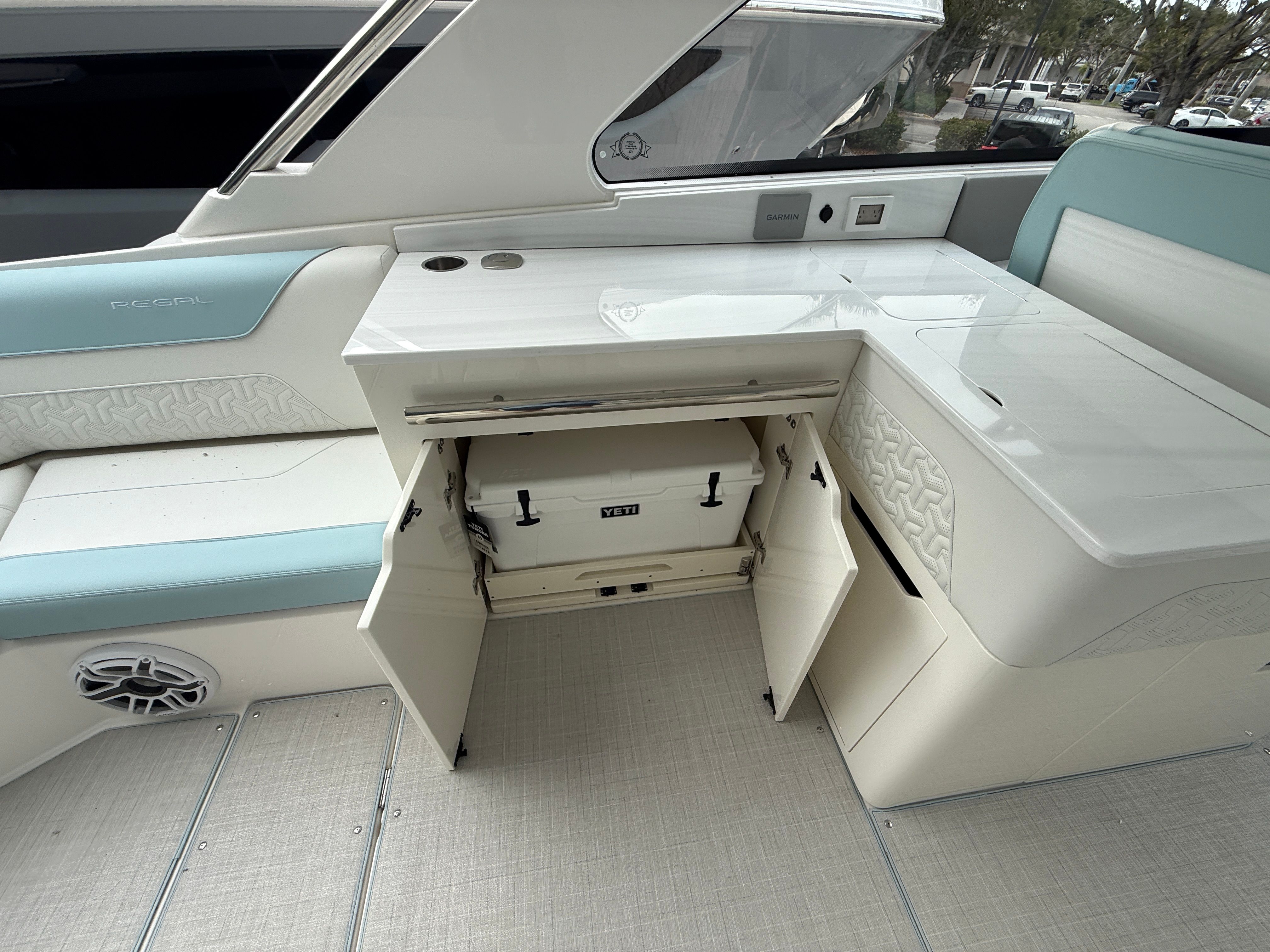The Regal LX36 is designed with practicality in mind, making ownership as enjoyable as it is rewarding. The quarter berth utility room provides flexible space for storing equipment, changing clothes, or taking a quick rest during longer journeys. The cockpit drawer system keeps essentials organized and within reach, reducing clutter and maximizing usable space.Docking and maneuvering are simplified thanks to the advanced digital switching and navigation systems, allowing you to focus on enjoying your time on the water. The PowerShade system offers instant relief from the sun, making it easy to create a comfortable environment for all passengers. With its efficient design and thoughtful features, the LX36 is as easy to maintain as it is to enjoy, giving you more time to focus on what matters most—making memories on the water.