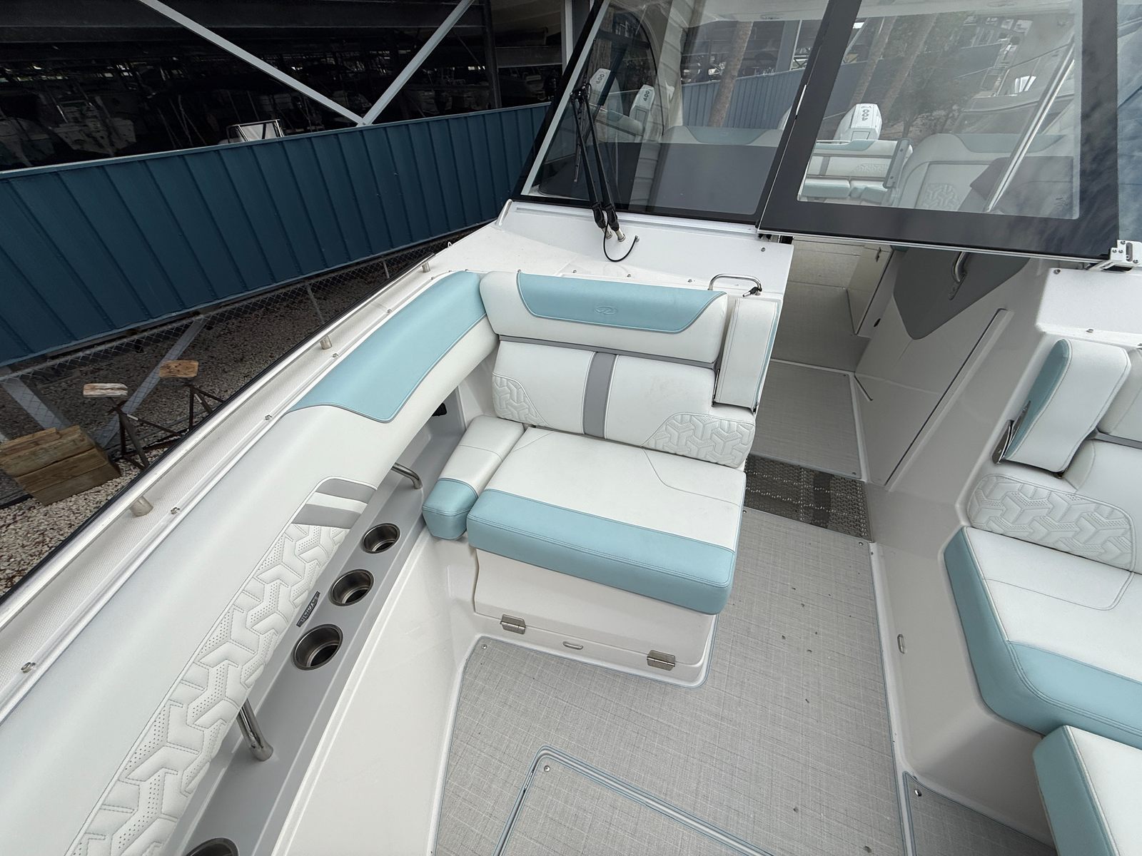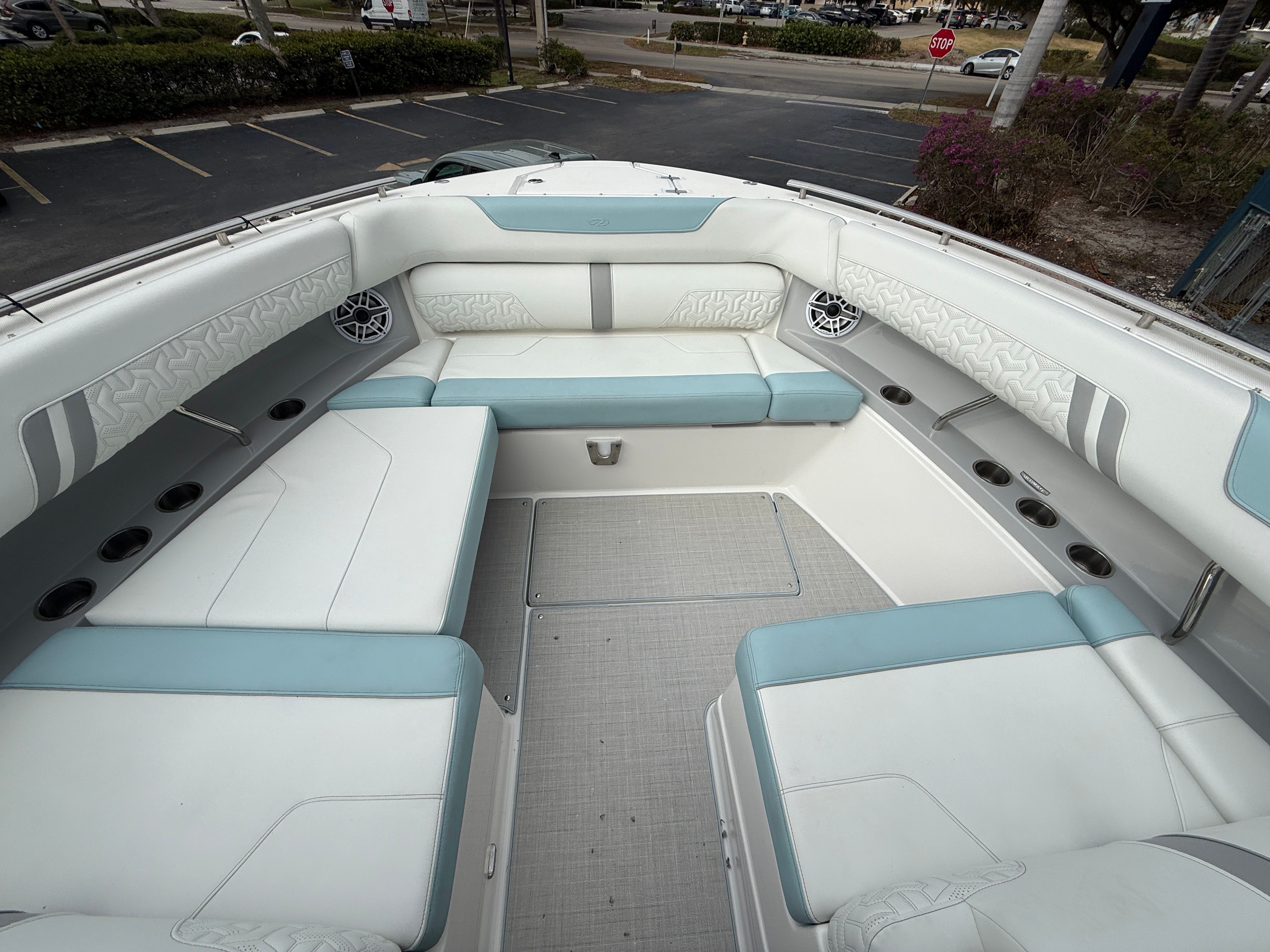 Power and precision are at the heart of the Regal LX36. Equipped with twin engines that deliver a combined 800 horsepower, this bowrider offers exhilarating acceleration and smooth handling. The dual-engine setup ensures optimal performance, whether you are cruising at high speeds or navigating tight turns. The advanced engineering behind the LX36 provides a responsive and agile ride, making it easy to handle for both seasoned captains and those new to boating. With this level of horsepower, you can confidently explore new waters, tow water sports enthusiasts, or simply enjoy the thrill of open-water cruising.