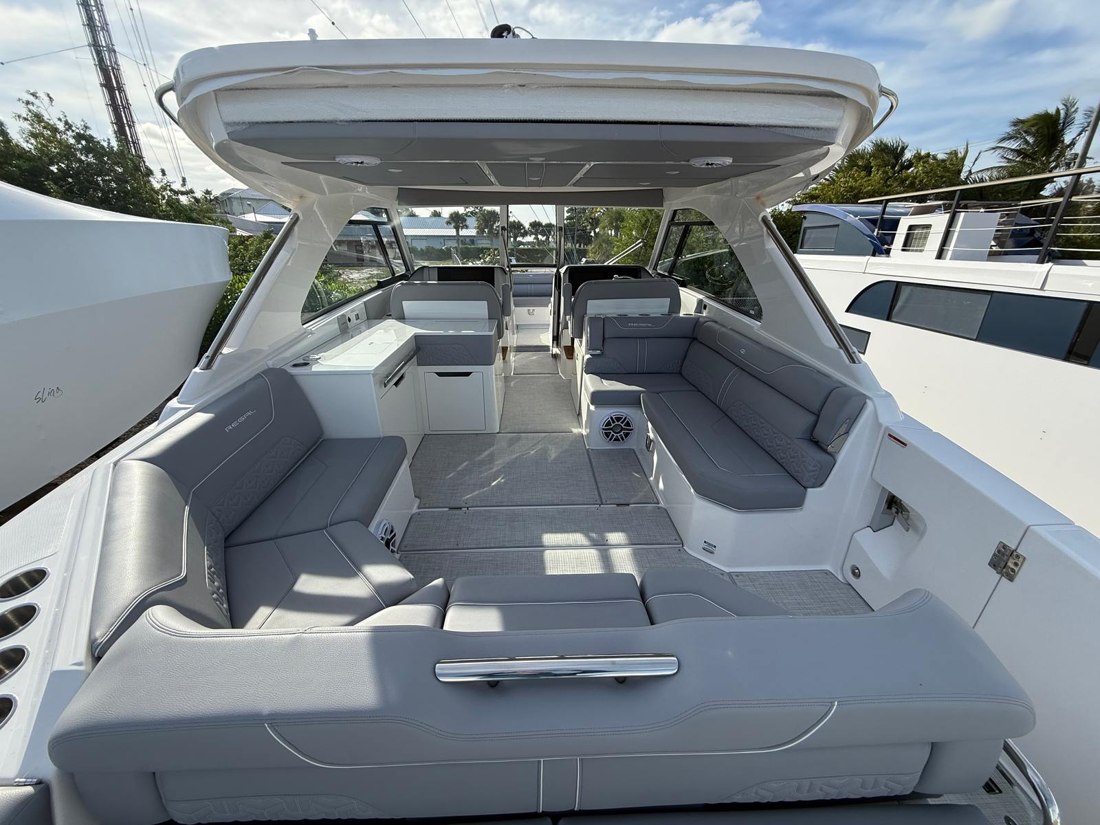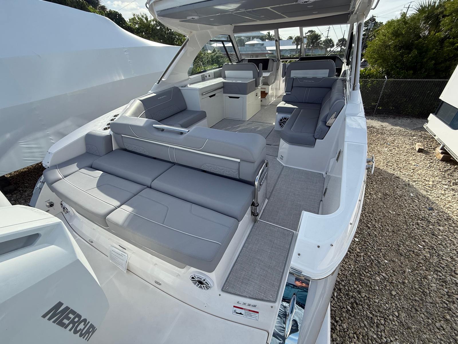 Beyond its luxurious amenities, the Regal LX36 is designed with practicality in mind. The spacious cockpit and smart storage solutions make it easy to stow gear, water toys, and personal items, keeping the deck clutter-free and organized. The wireless remote for the windlass streamlines the anchoring process, allowing you to secure your boat quickly and safely. The efficient engine setup not only delivers impressive performance but also helps optimize fuel usage, making longer trips more economical.Docking is a breeze thanks to the LX36’s responsive handling and dual engines, giving you confidence in any marina or docking situation. The durable materials and high-quality construction ensure that your investment remains in top condition for years to come, while the easy-to-clean surfaces and thoughtful layout simplify maintenance and upkeep.
