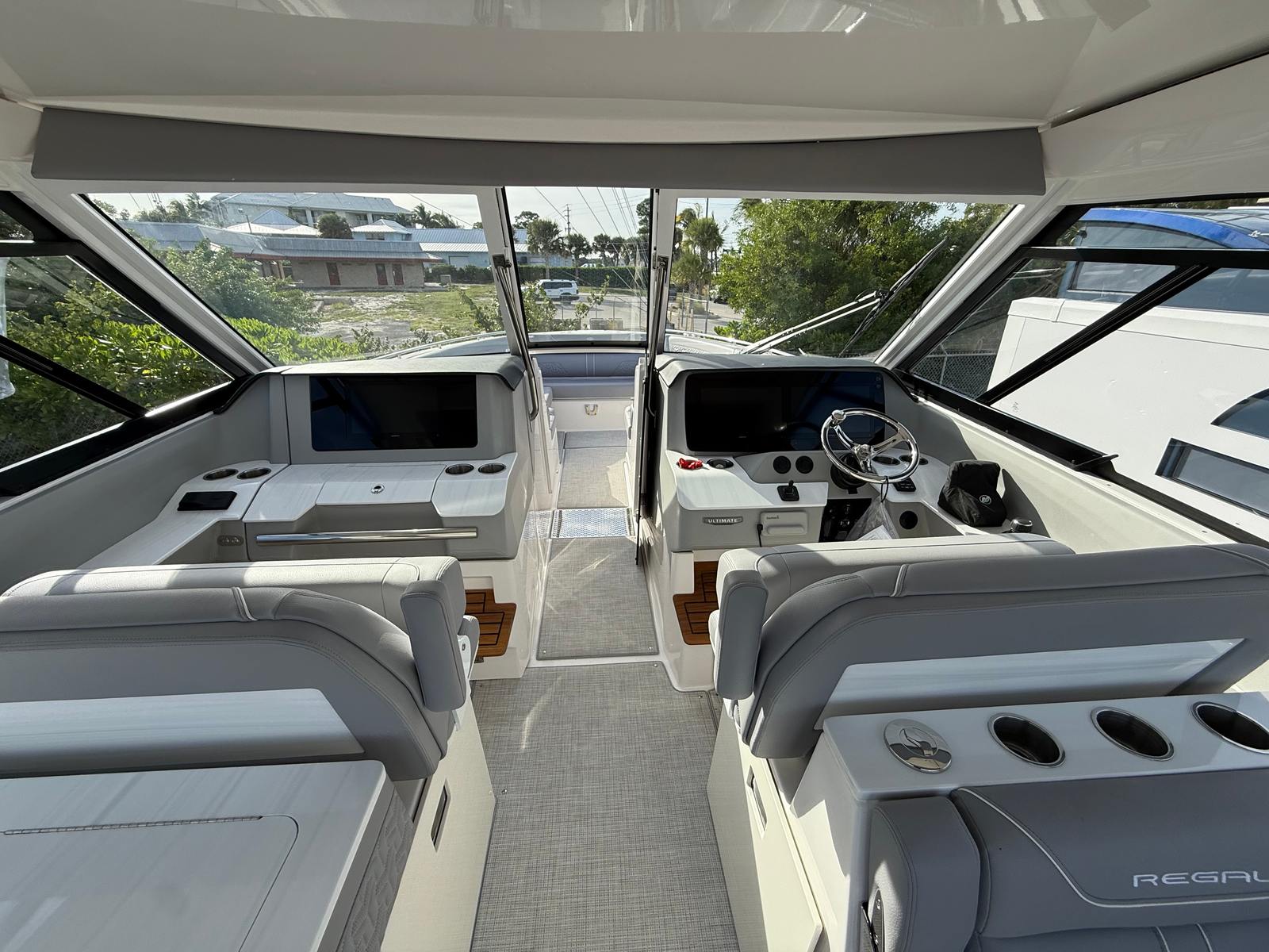 The Regal LX36 is packed with special features designed to maximize comfort, convenience, and entertainment. The PowerShade provides customizable protection from the sun, allowing you to relax in the shade or soak up the rays as you please. The cockpit upholstery features a stylish combination of Base Three - Lunar Grey - Chil and Accent Two & Piping - Pure White - Standard, creating a sophisticated and inviting atmosphere. The Cockpit Seagrass Mat adds a touch of luxury underfoot, while the Ultimate Audio Package - JL Audio delivers crystal-clear sound for your favorite music and entertainment.For those who love to entertain, the cockpit television offers a unique way to enjoy movies or sporting events while on the water. The cockpit refrigerator keeps your refreshments chilled and easily accessible, ensuring you’re always ready to host a gathering. The wireless remote for the windlass simplifies anchoring, adding a layer of convenience to your boating routine. The White - Canvas provides a clean and modern look, while the RGBW lighting allows you to set the perfect mood for any occasion.