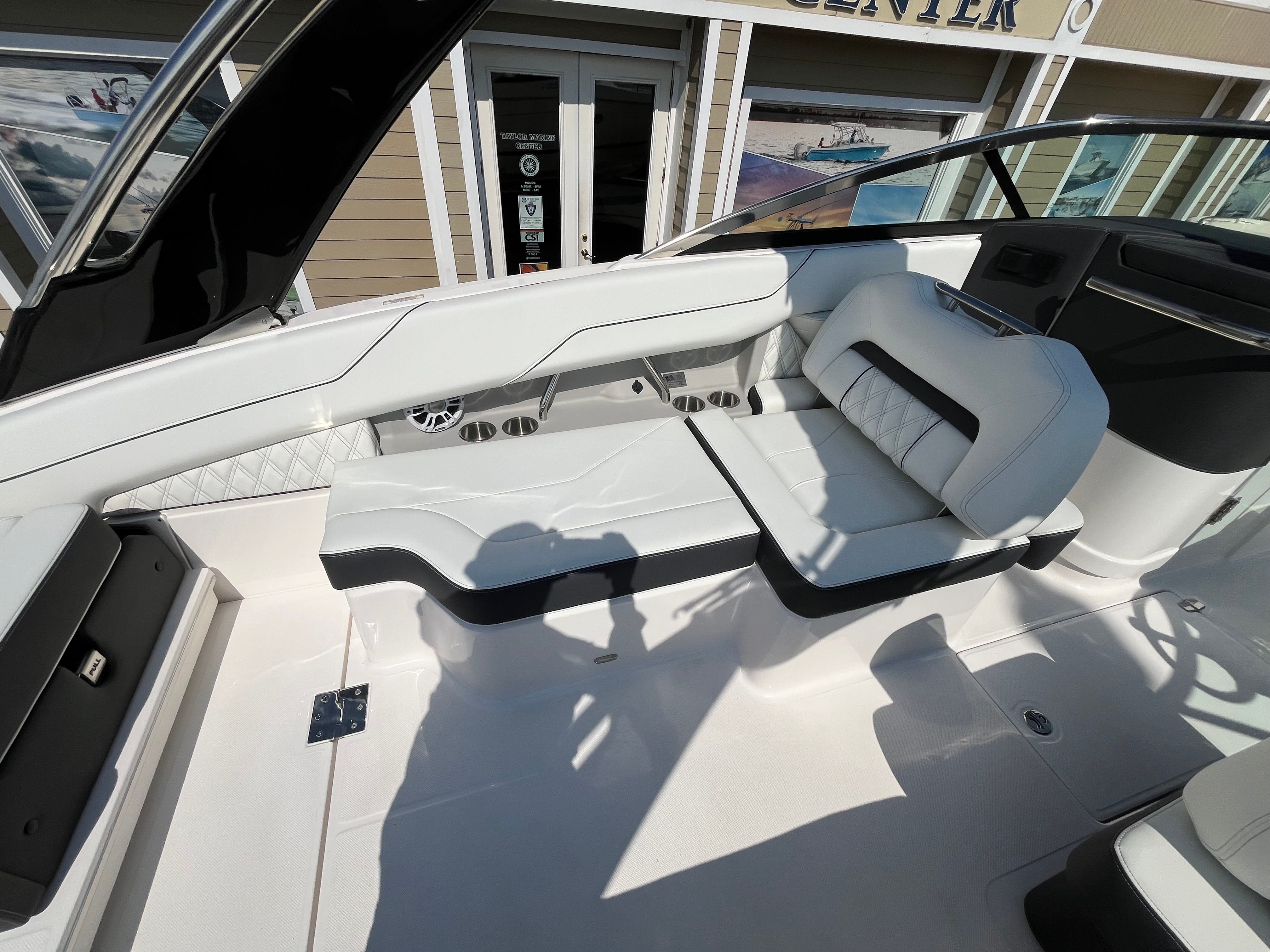 Practicality meets luxury in the 2025 Regal LX4. The dual battery system and onboard charger provide reliable power for all your electronics and accessories, so you can focus on having fun without worrying about running out of juice. The bow thruster makes docking and close-quarters maneuvering a breeze, reducing stress and making every outing more enjoyable.The bow and cockpit covers protect your investment from the elements, ensuring your boat stays clean and ready for your next adventure. The transom shower and pressure water package add convenience for swimmers and sunbathers, making it easy to rinse off and stay comfortable throughout the day.With its thoughtful design and user-friendly features, the LX4 is as practical as it is stylish, offering a seamless boating experience from start to finish.