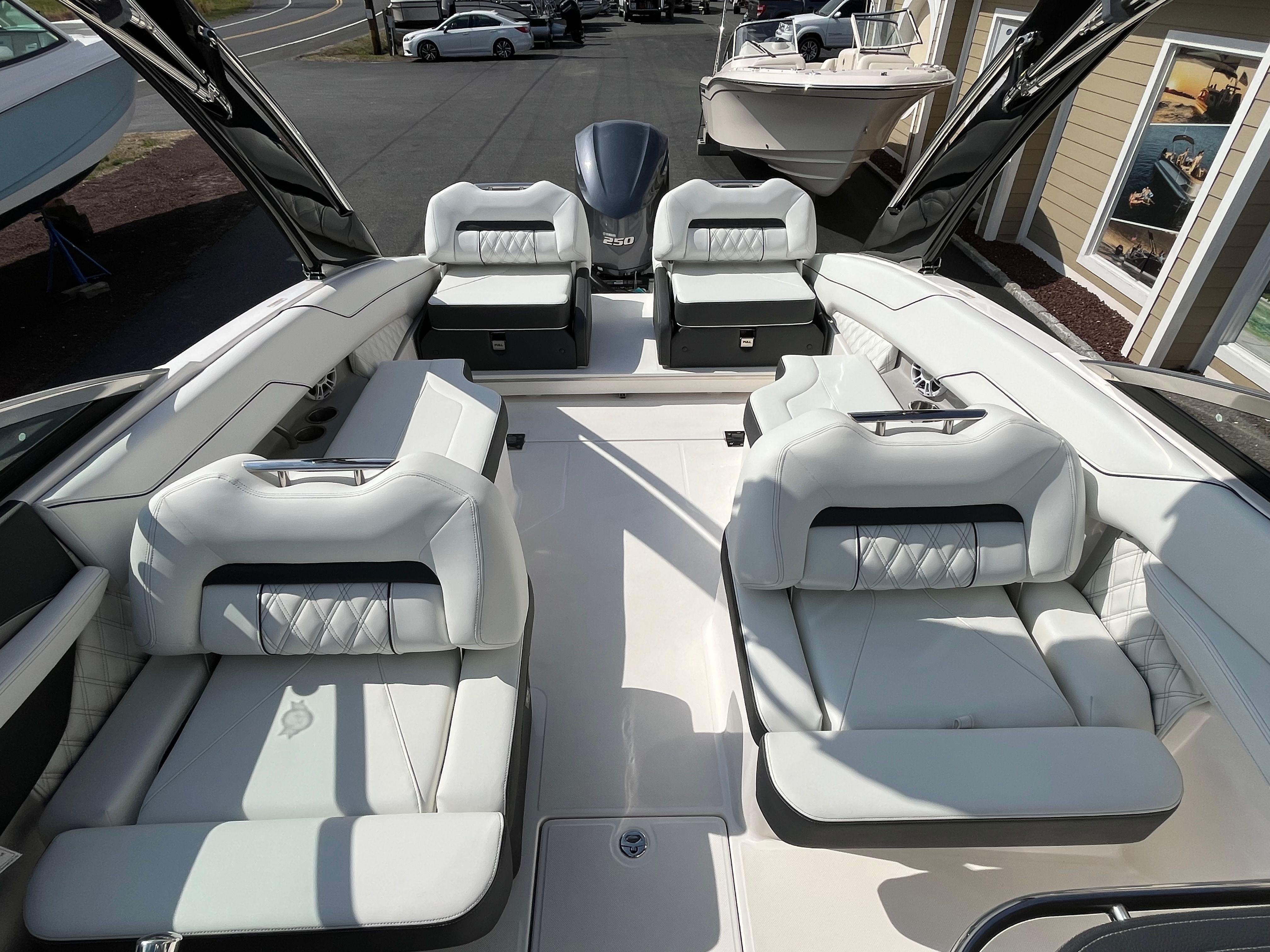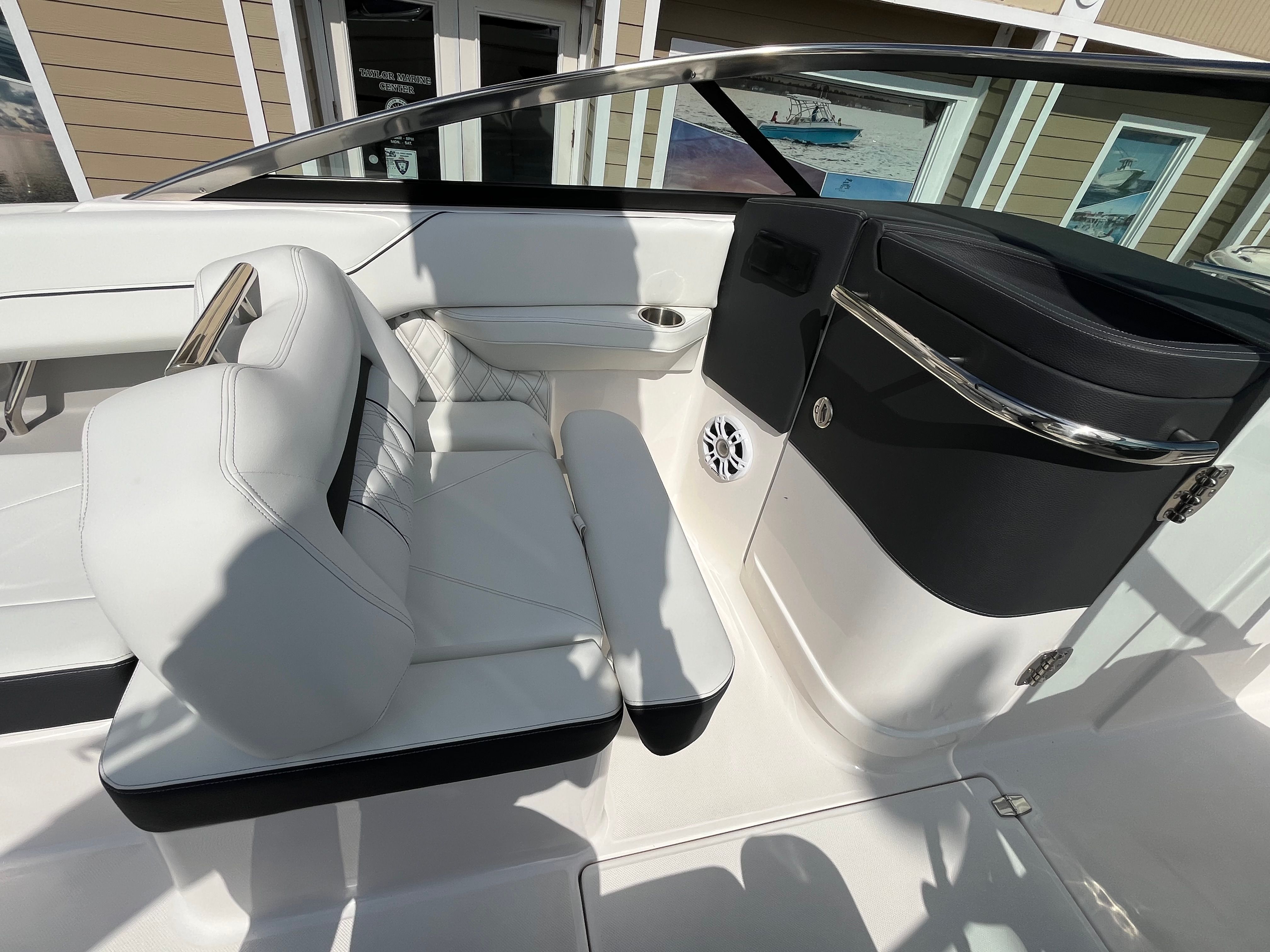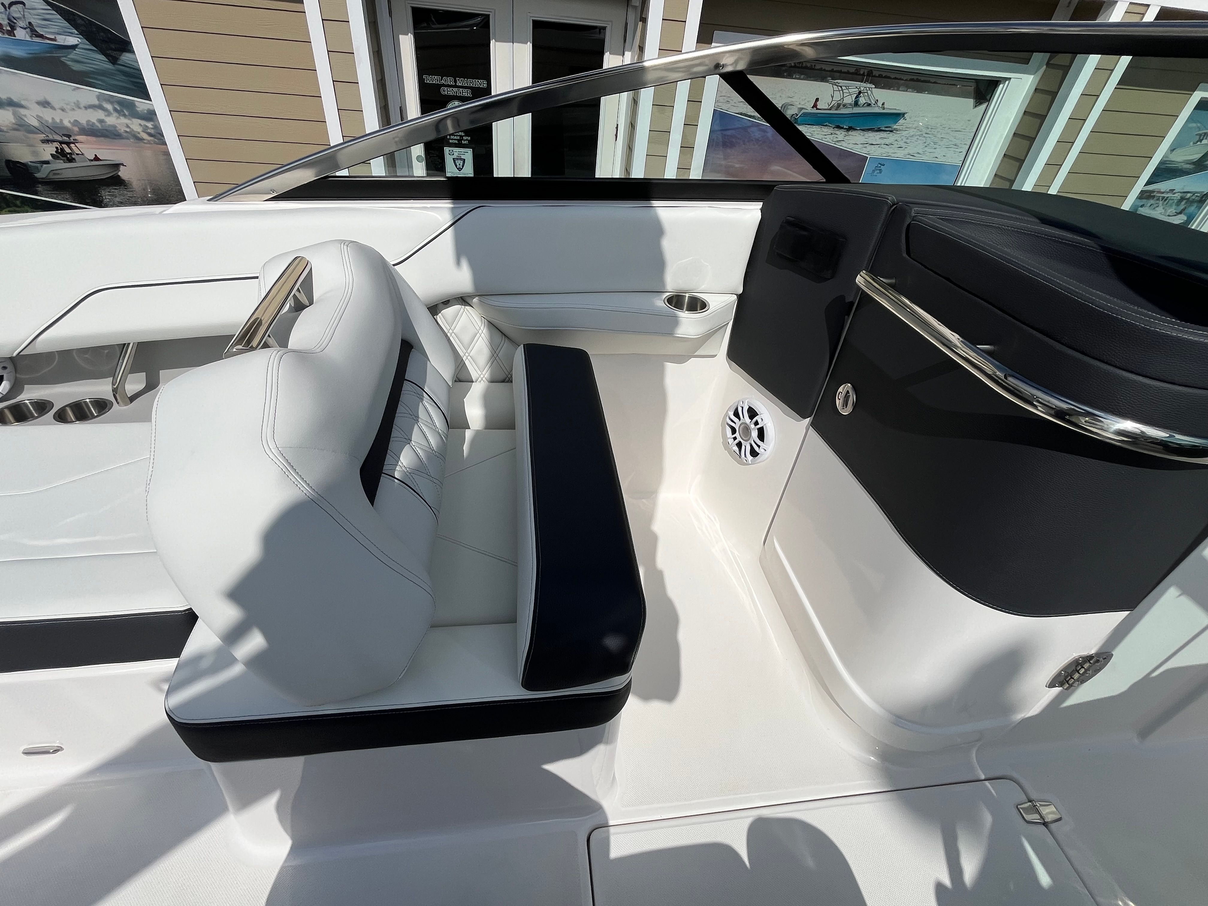 The 2025 Regal LX4 is a striking 24.33-foot bowrider that perfectly balances sleek design with practical functionality. Regal’s renowned craftsmanship is evident in every detail, from the graceful lines of the hull to the carefully selected color palette featuring Tahiti Beach White, Black, and Titanium accents. This new bowrider is built to impress, whether you are cruising along the coastline, anchoring at your favorite sandbar, or entertaining friends and family at the dock.With its spacious layout and innovative design, the LX4 offers ample room for relaxation and socializing. The open bow seating invites guests to stretch out and enjoy the sunshine, while the cockpit provides a comfortable and secure environment for everyone on board. Every inch of this Regal boat for sale is crafted to maximize your enjoyment, making it the ideal choice for boaters who demand both style and substance.