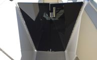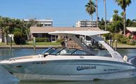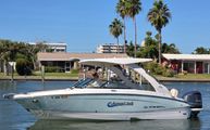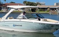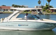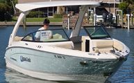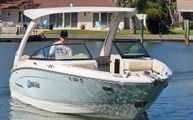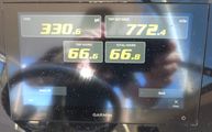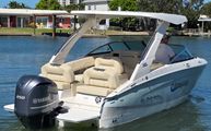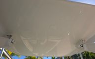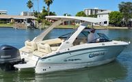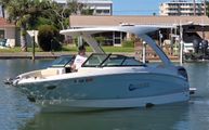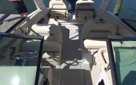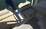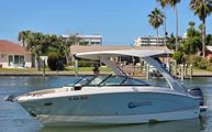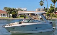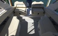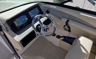 Dual Garmin 12" Displays, Aftermarket Anchor windlass, Bow walkthrough doors, Cockpit table, Cockpit and bow cover, Bow shade, Bow thruster, Trim tabs, Fusion stereo system, Full head porcelain, Stainless sink, Retractable aft seat, Power Hard Top retractable.